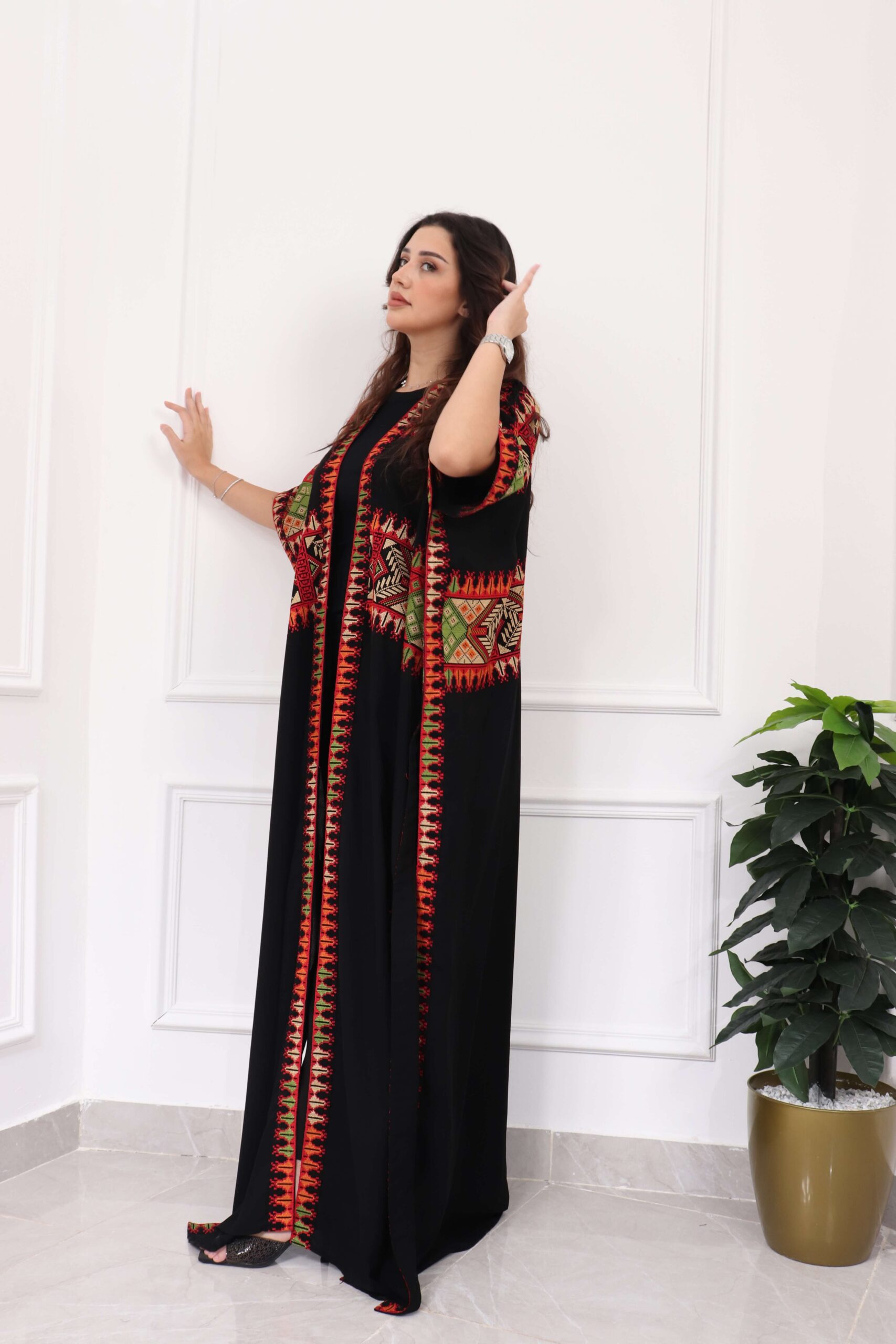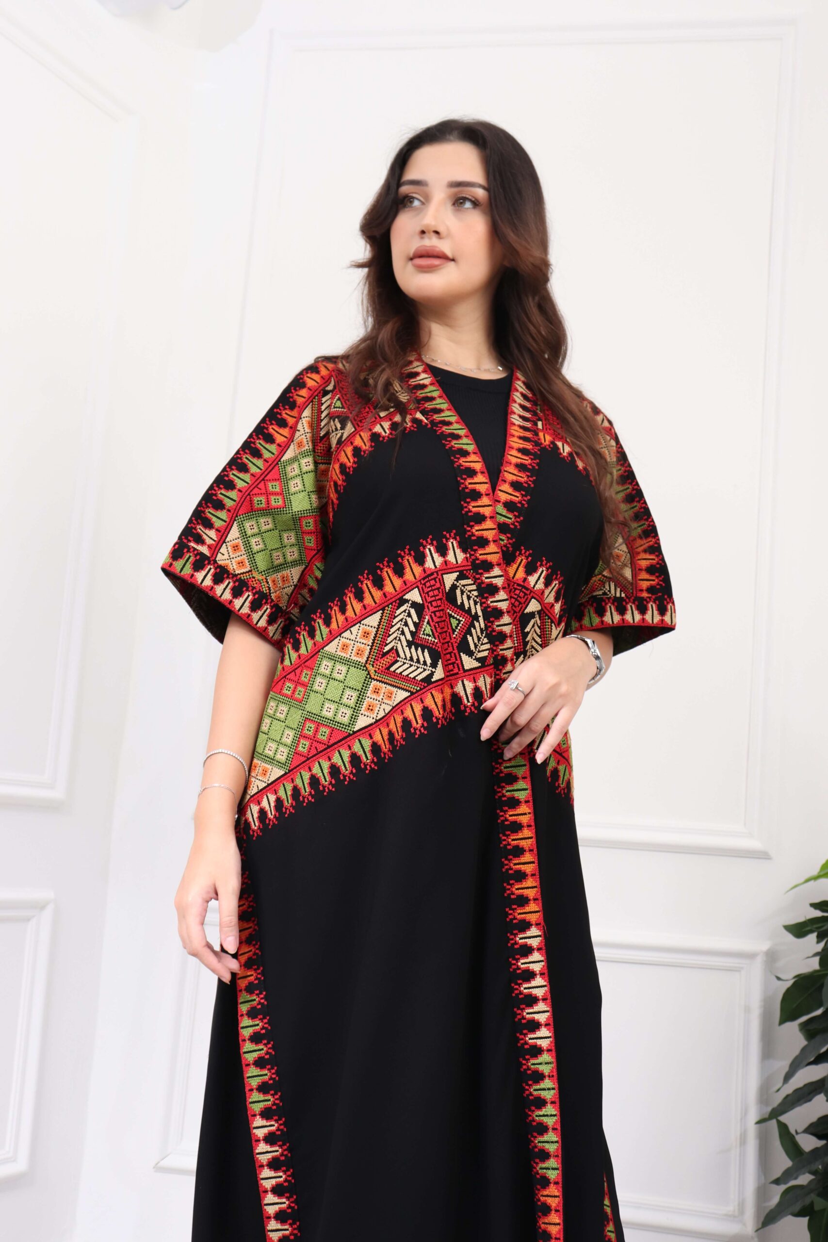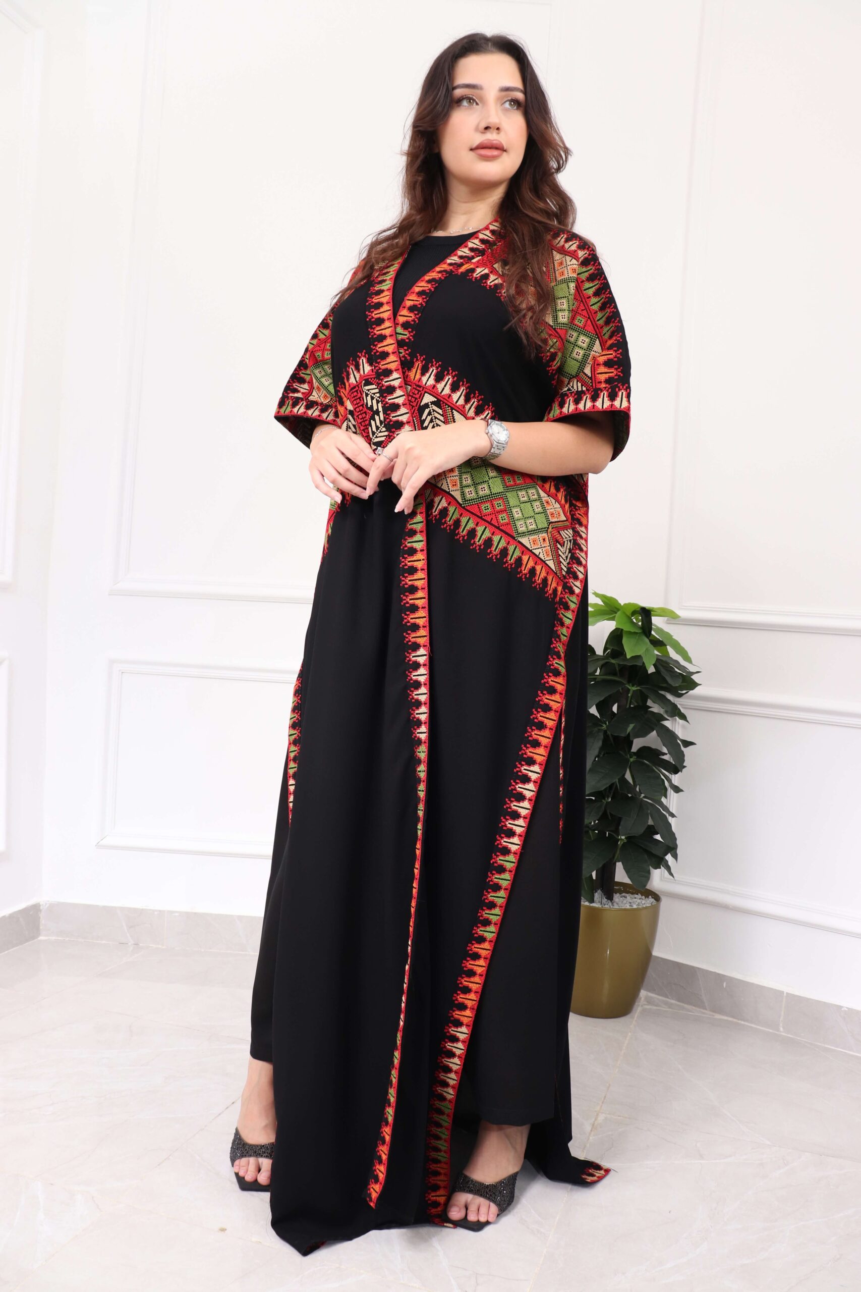 جلابيه بتطريز عربي و بكم وسيع احمر