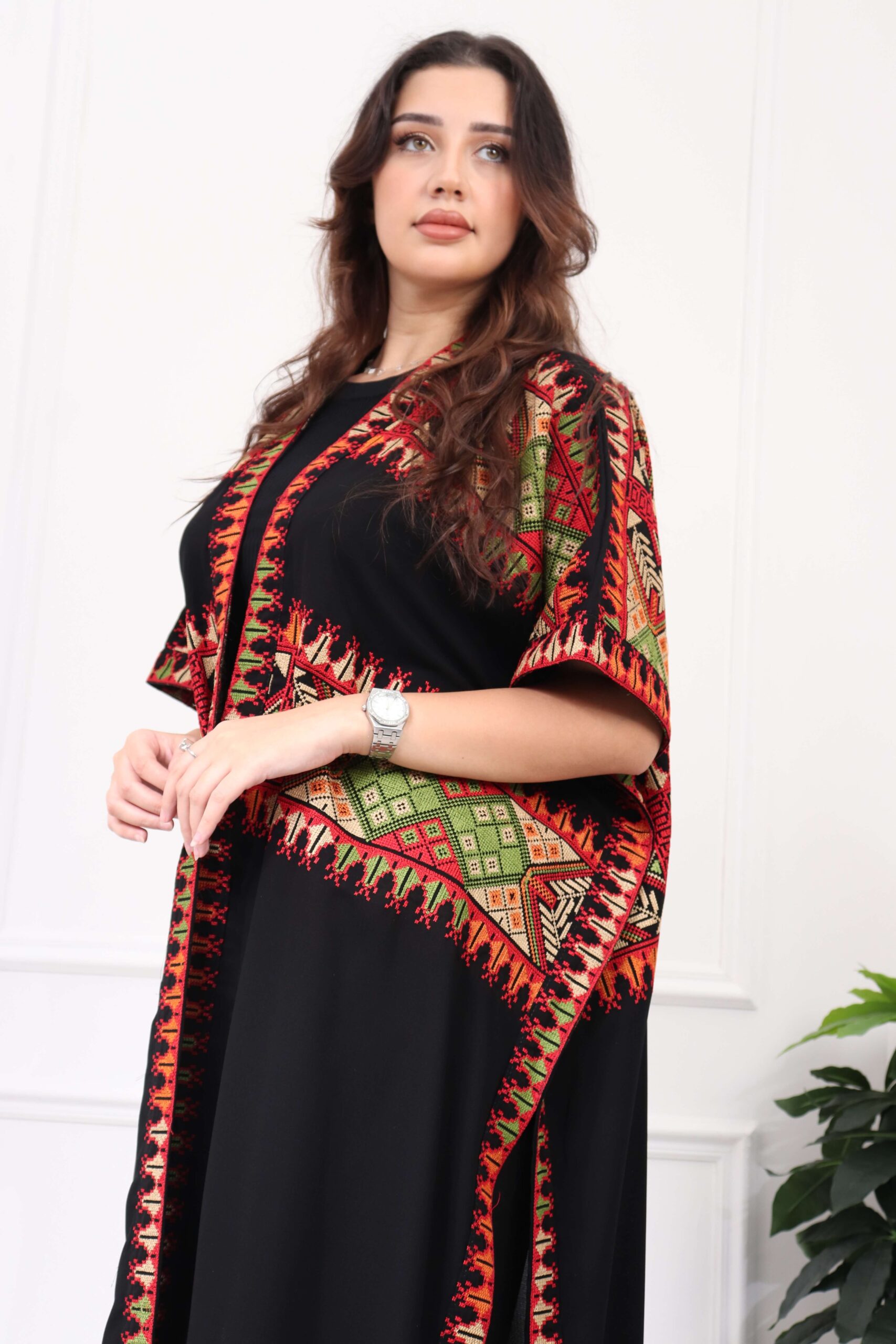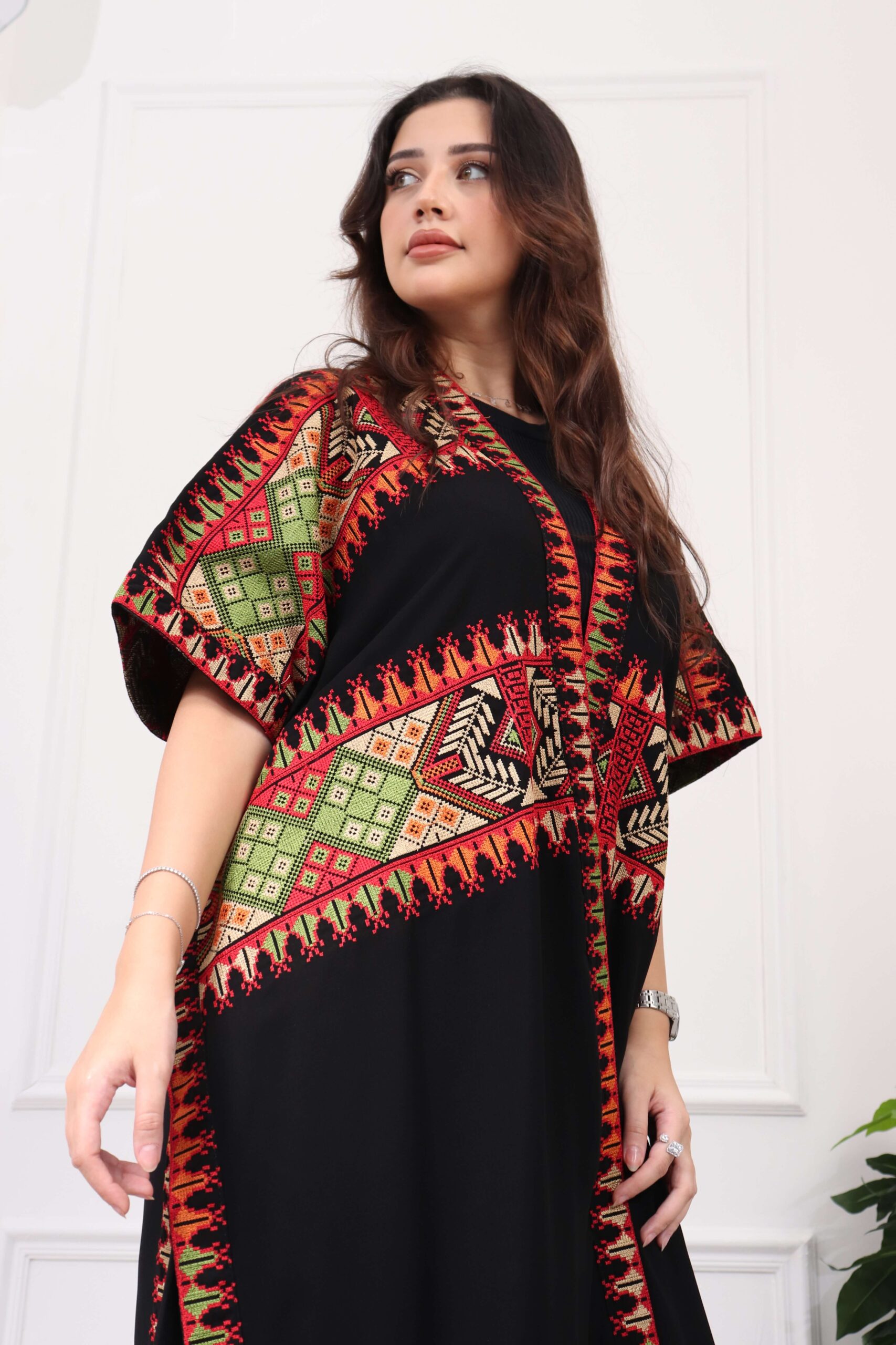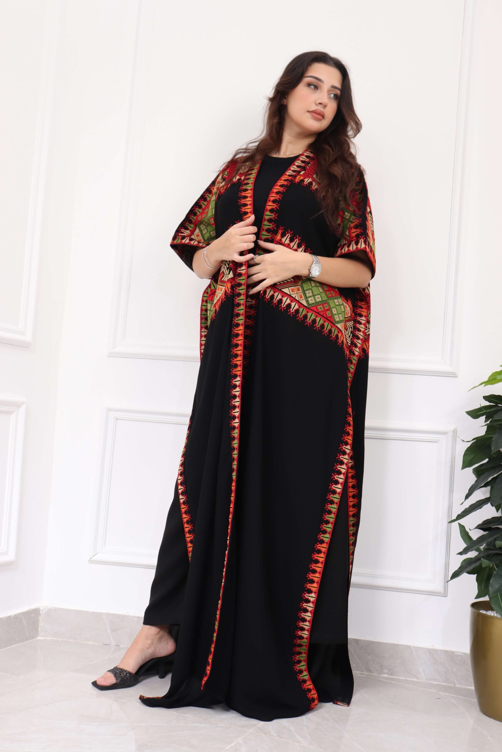 جلابيه بتطريز عربي و بكم وسيع احمر