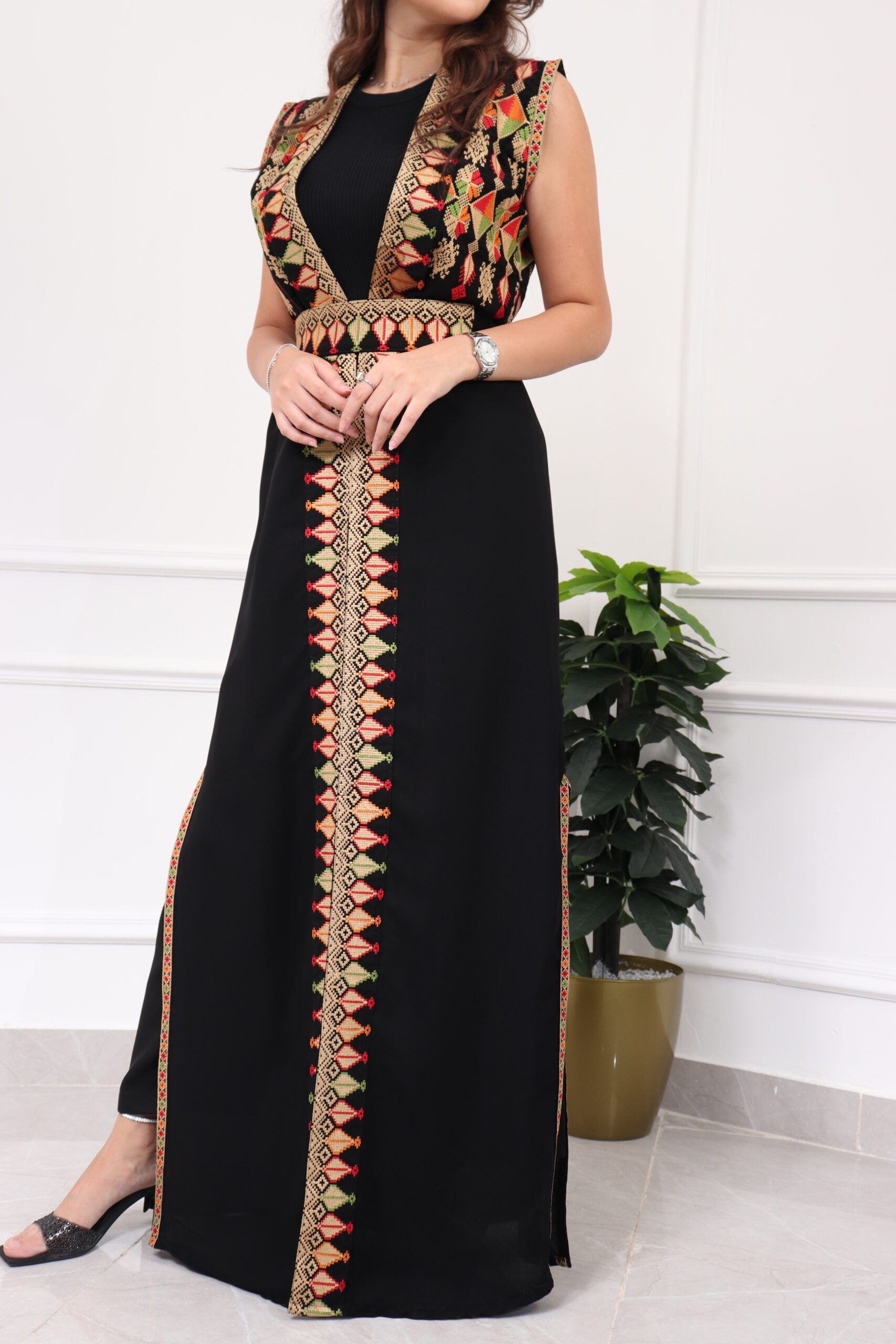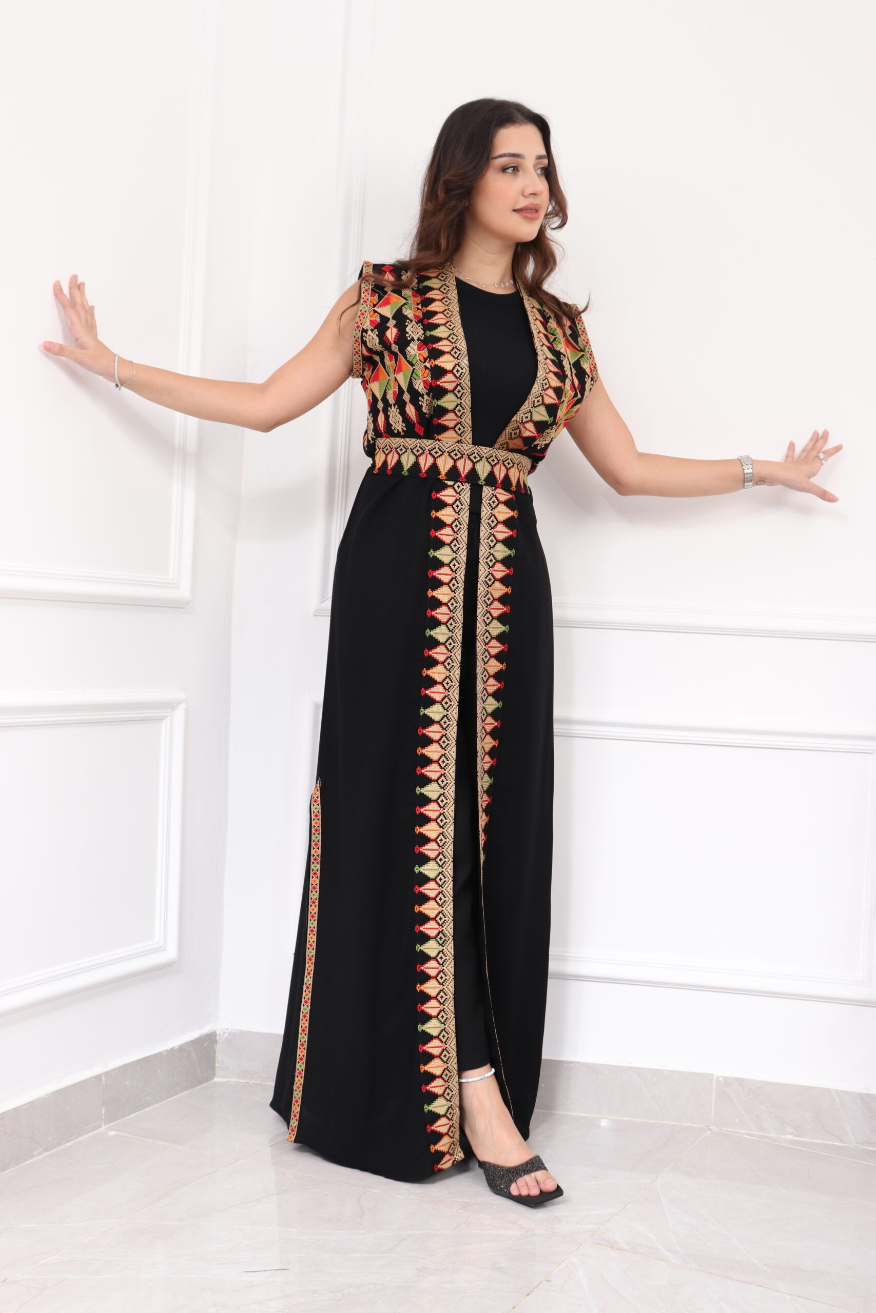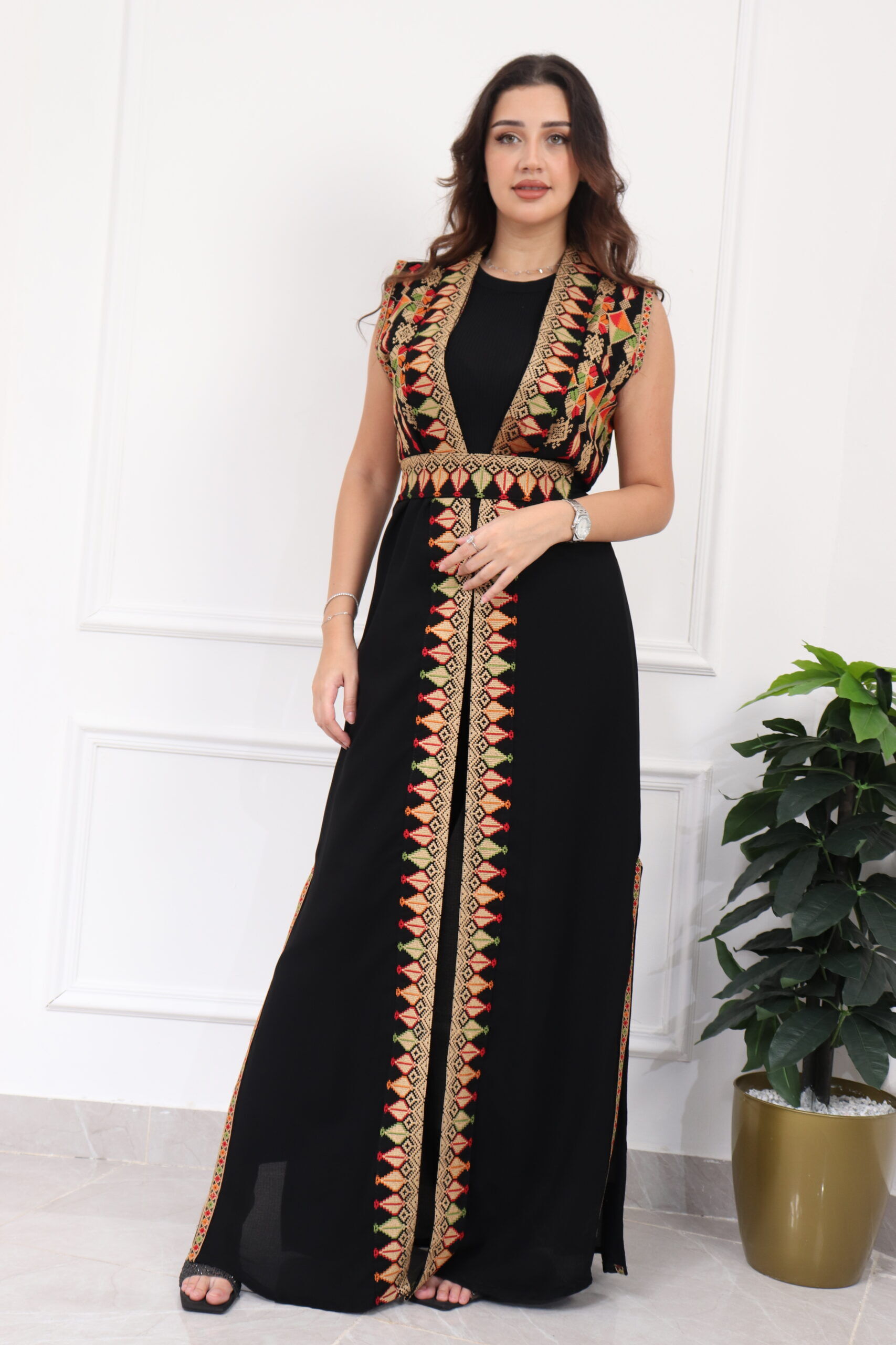 جلابيه بتطريز عربي و بكم وسيع احمر