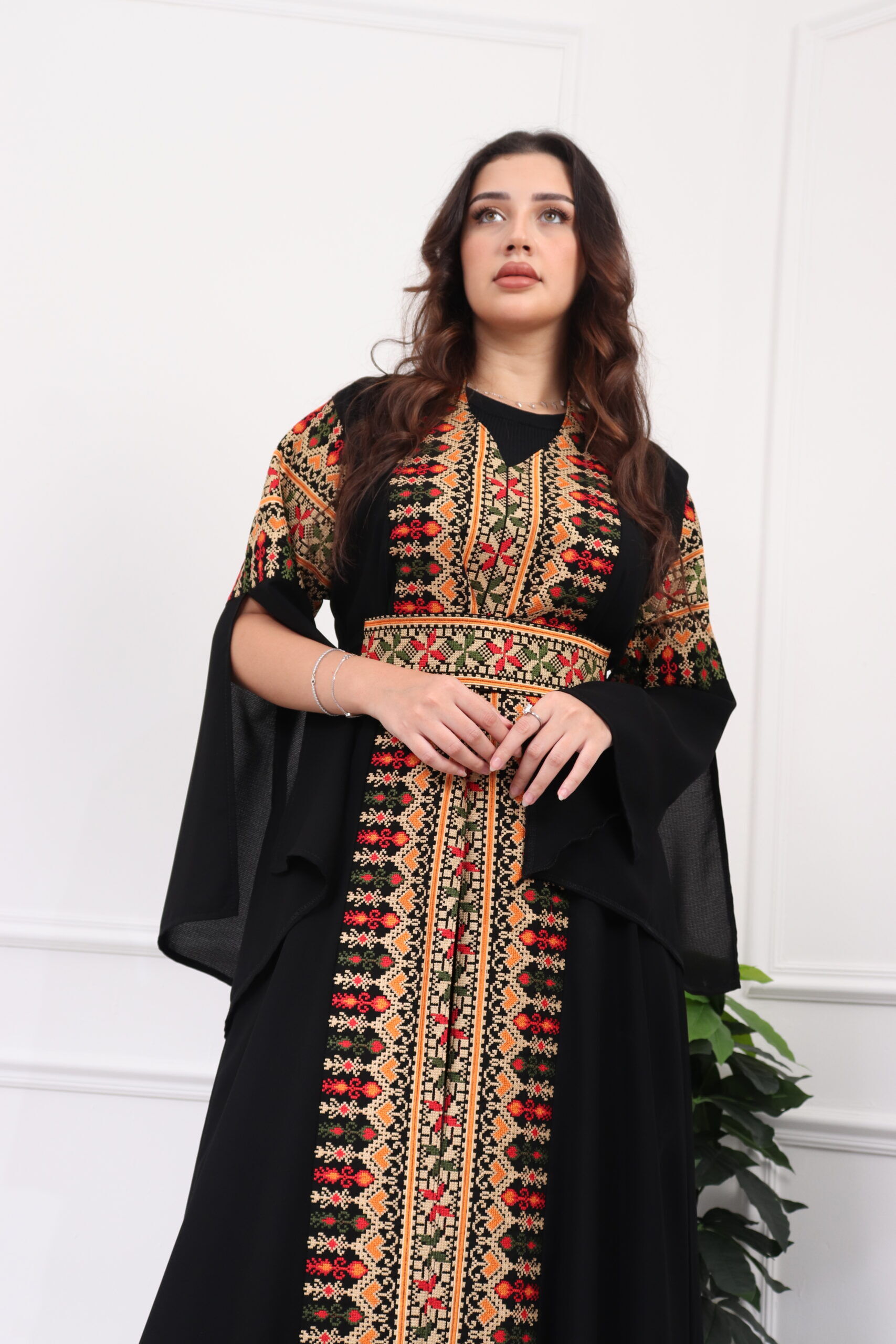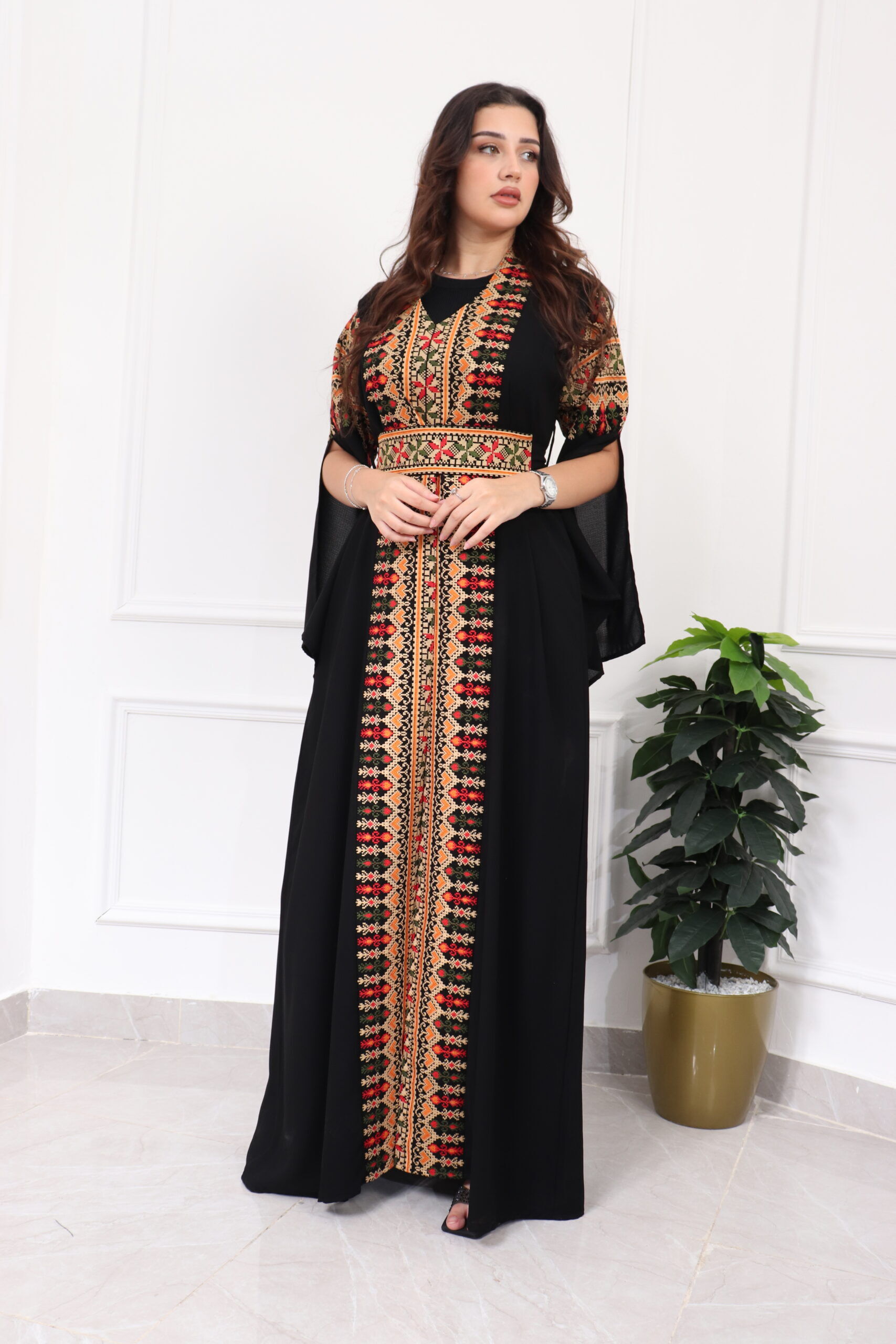 جلابيه بتطريز عربي و بكم وسيع احمر
