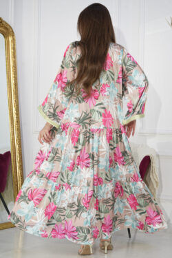 جلابيه تيفاني بقماش مشجر من نفسه بكم مطاط