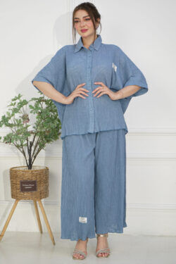 طقم قميص وبنطلون لحمي ساتر وعملي للدوام والمشاوير اليومية و مناسبات صغيره ، لا غنى عنه في خزانتك للمقابلات والطلعات الهامة.