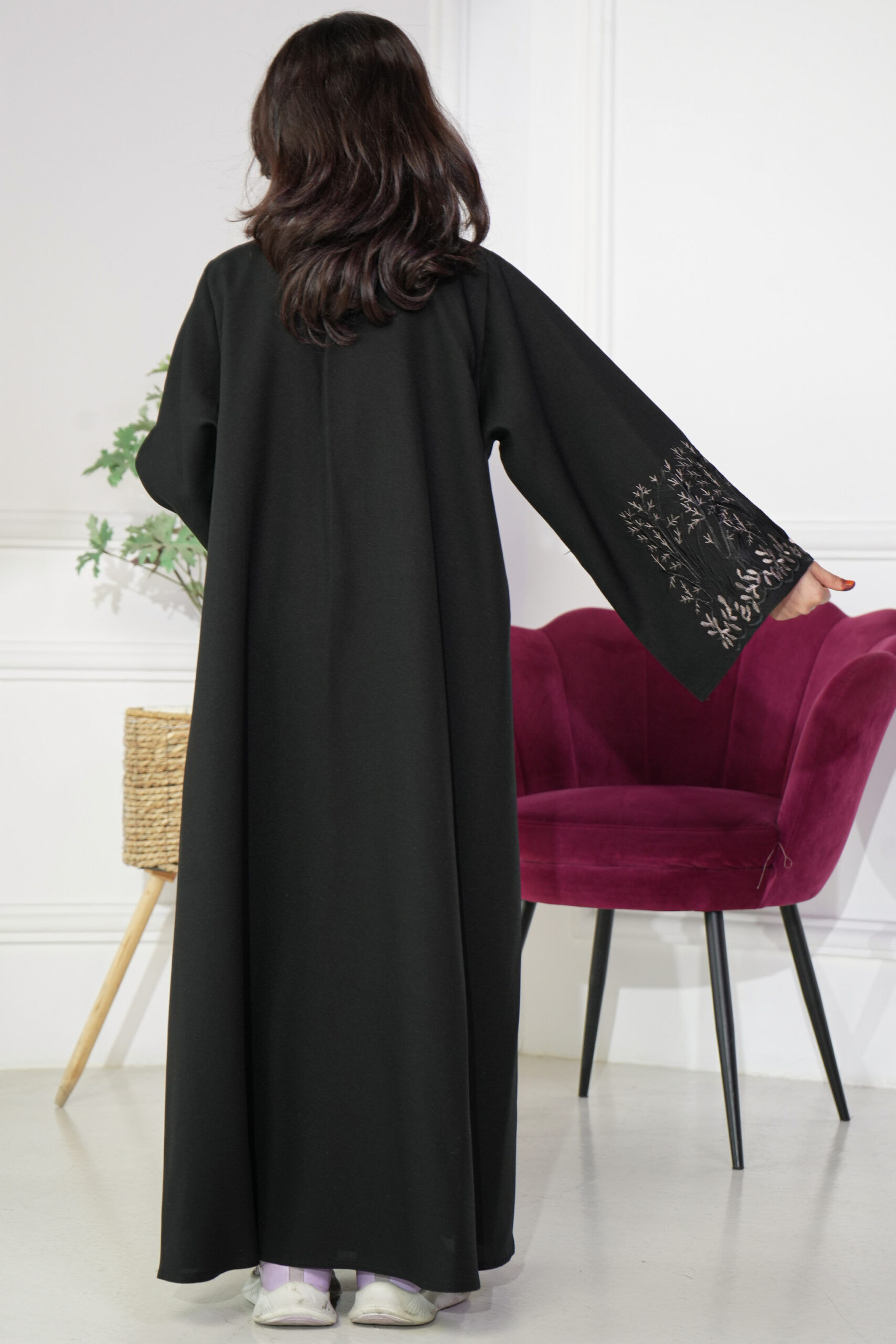 عباية بناتية مطرز بني على الاكمام