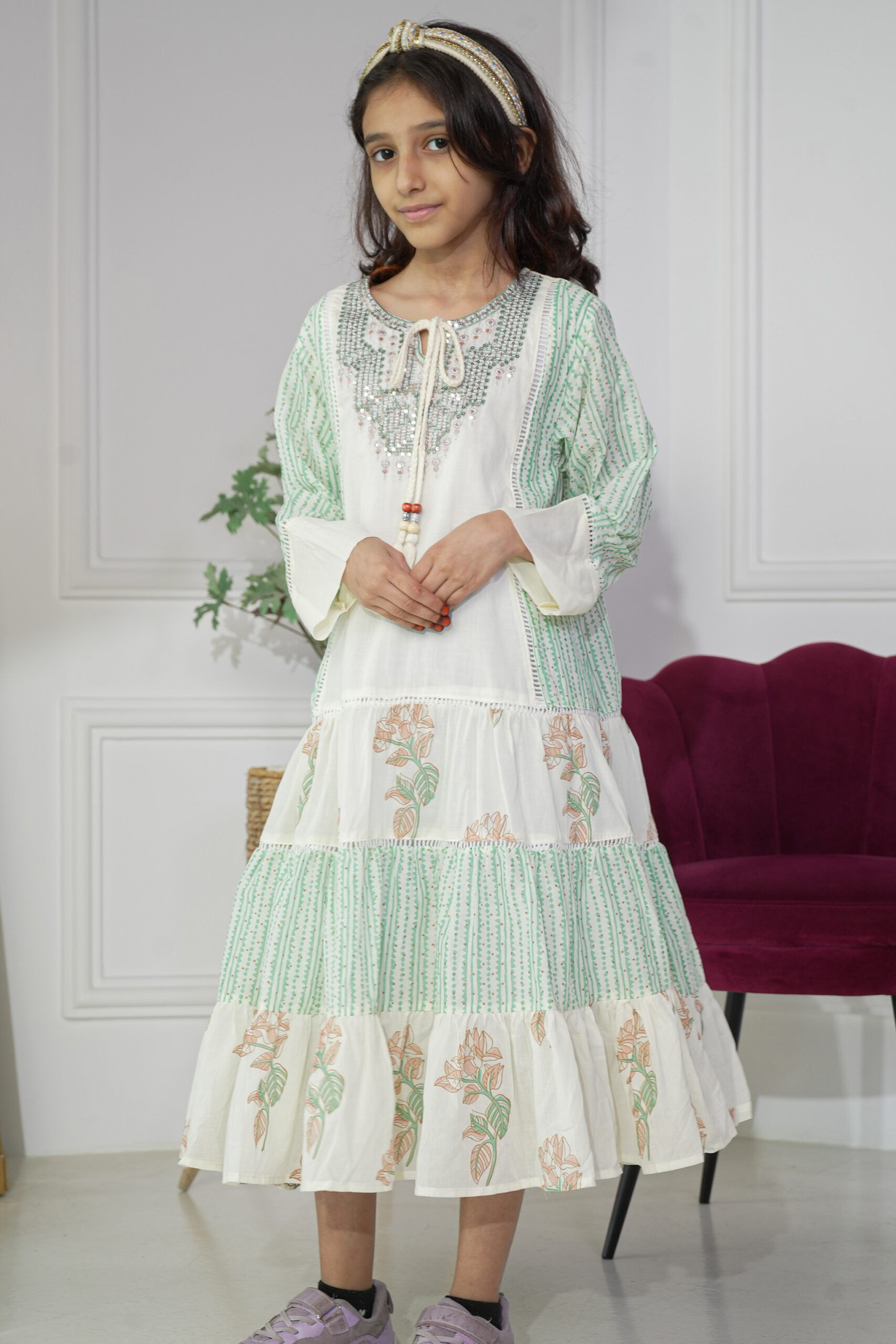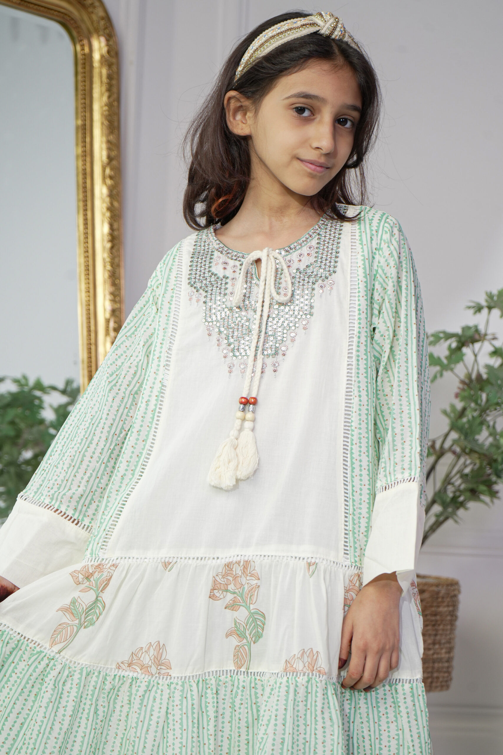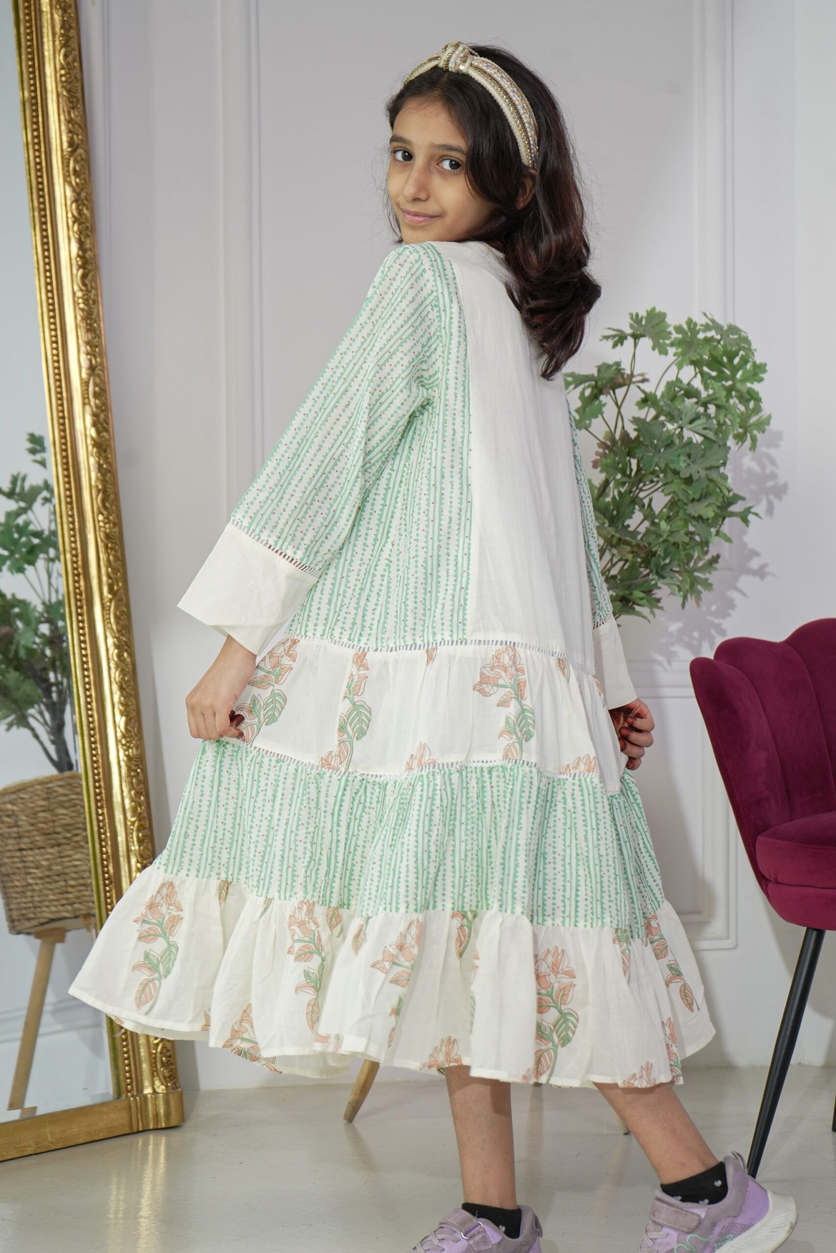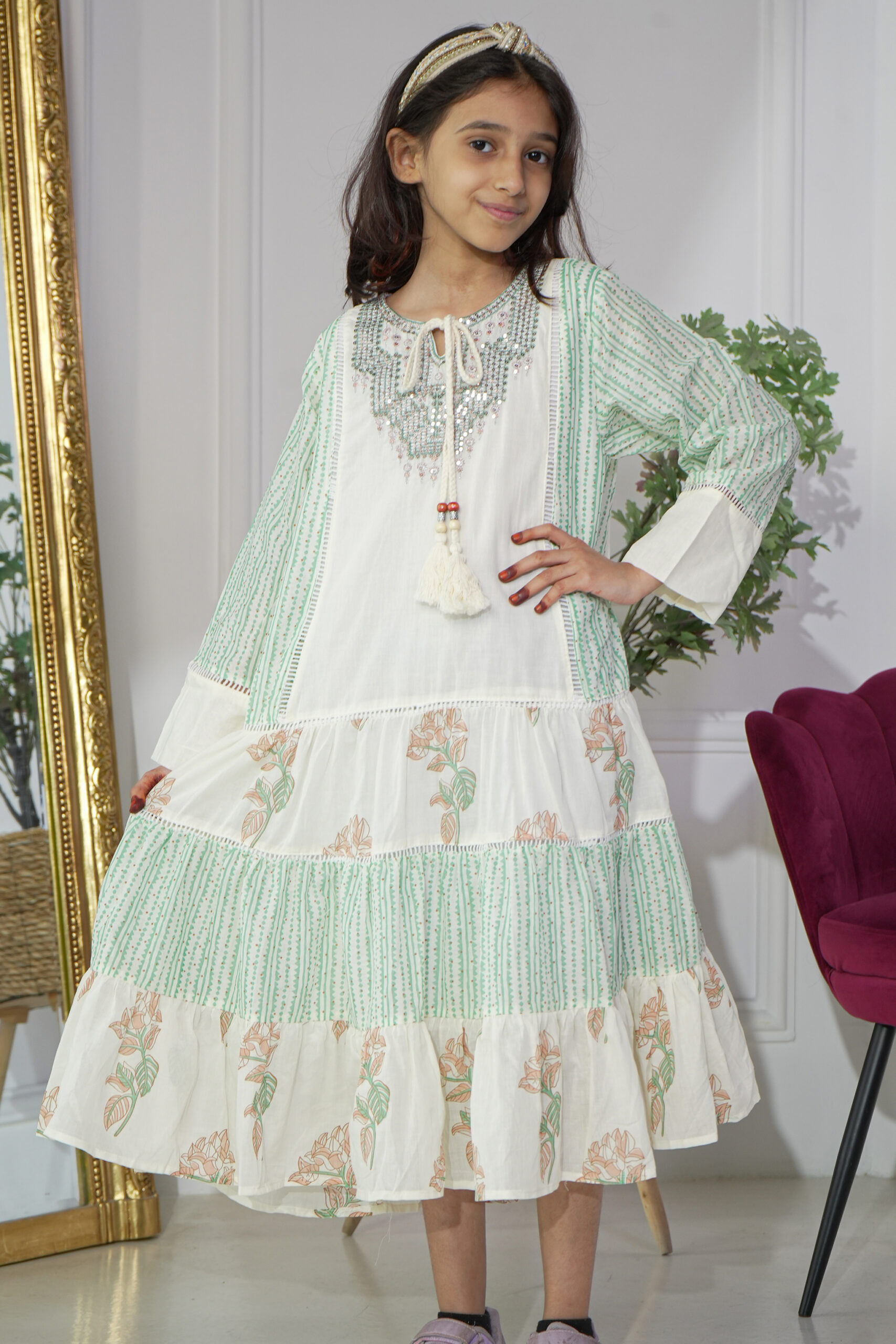 جلابية بناتي مشجره بورد اخضر