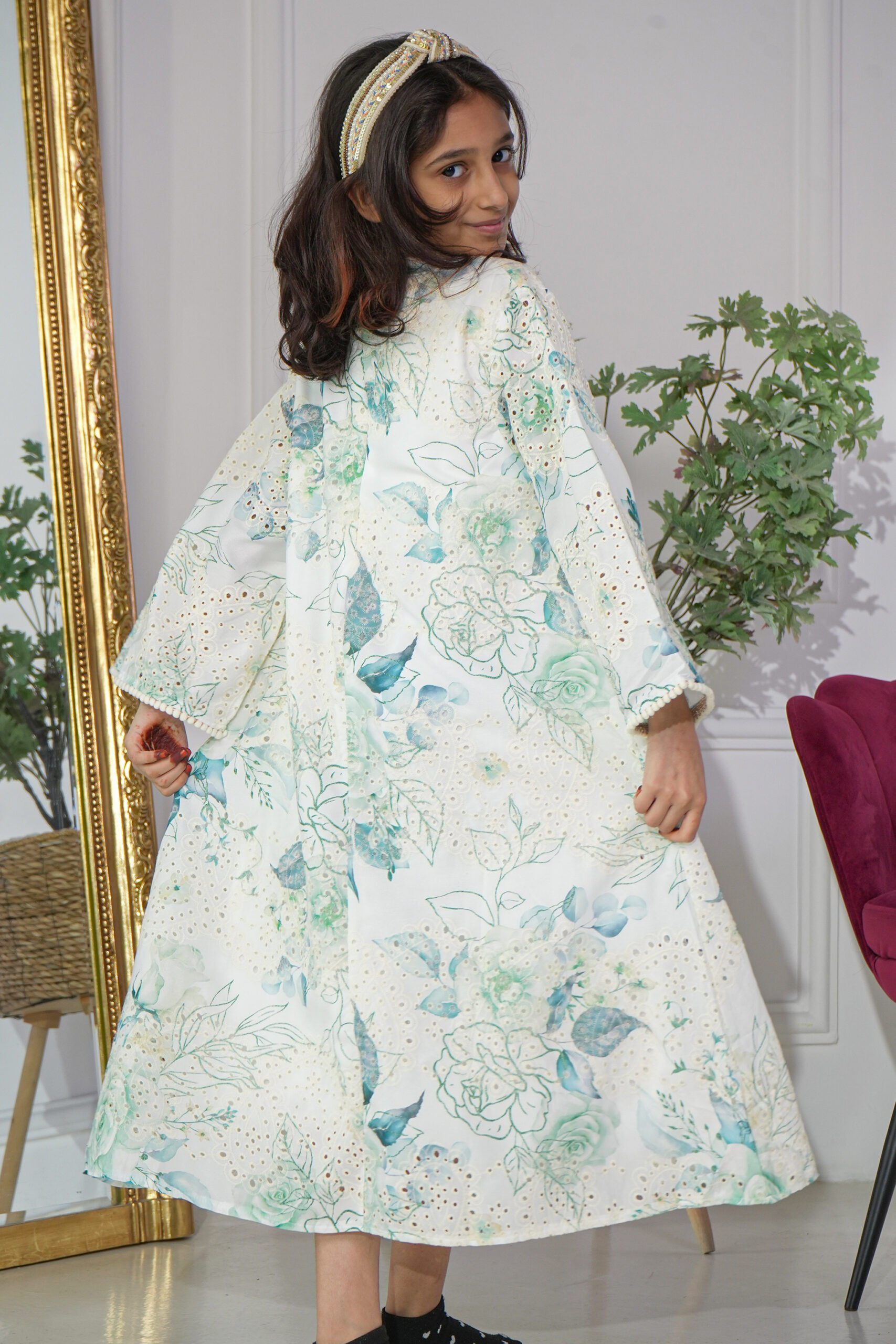جلابيه بناتي بلياقه مندمجه بتشجر البيج و تيفاني