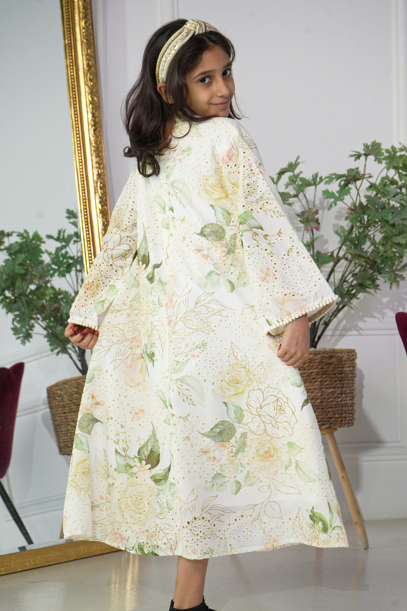جلابية بناتي مشجره بورد اخضر
