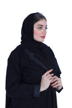 عبايه لف بياقة محدده بشريط كاروهات اسود