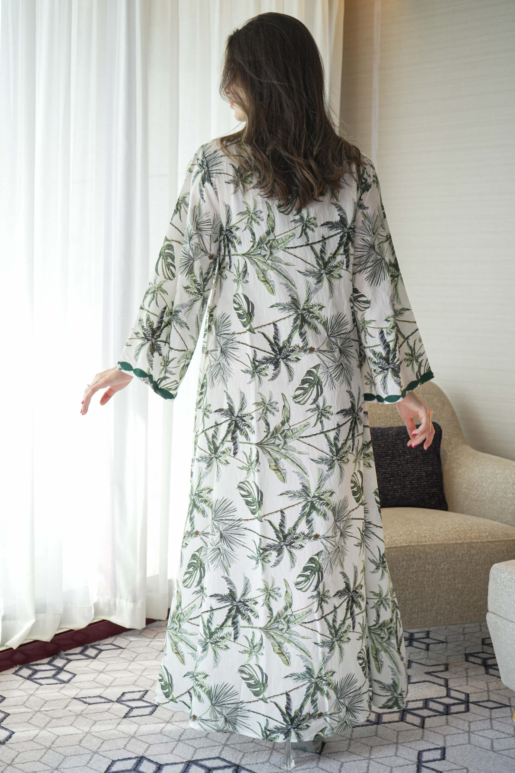 جلابيه تيفاني بقماش مشجر من نفسه بكم مطاط