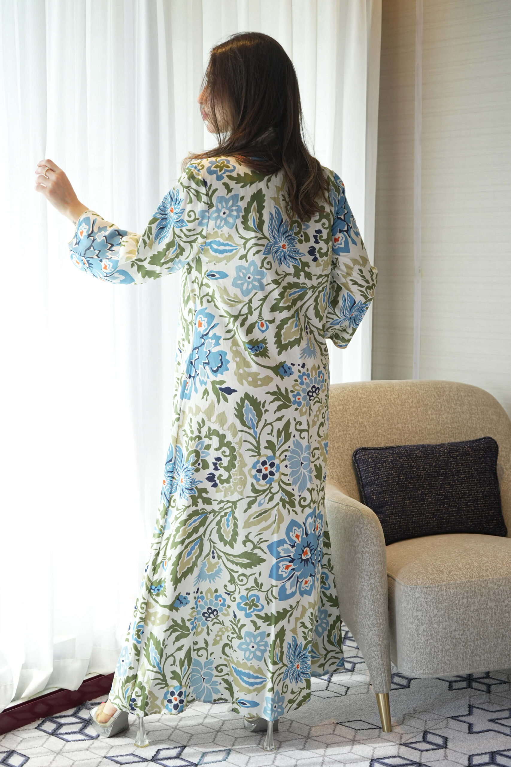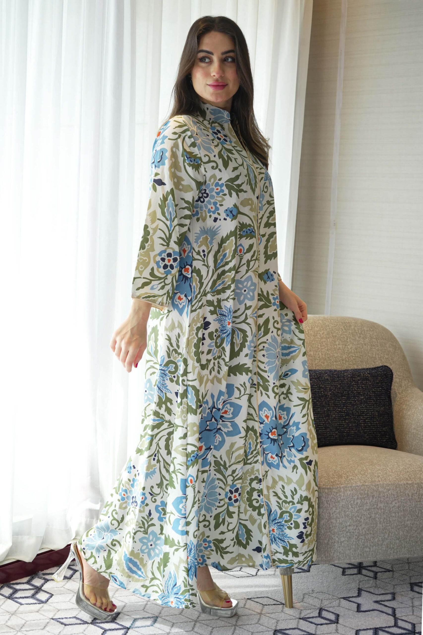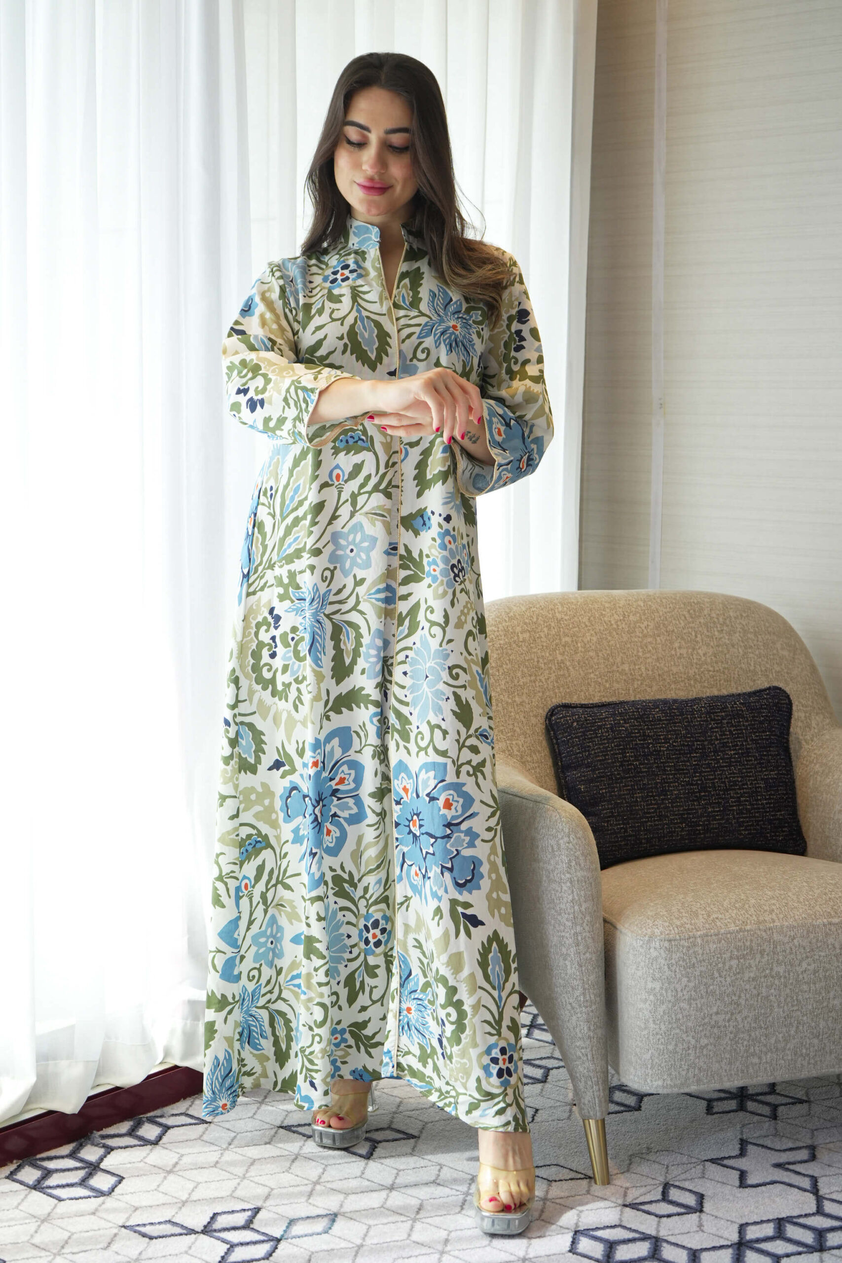 جلابيه تيفاني بقماش مشجر من نفسه بكم مطاط
