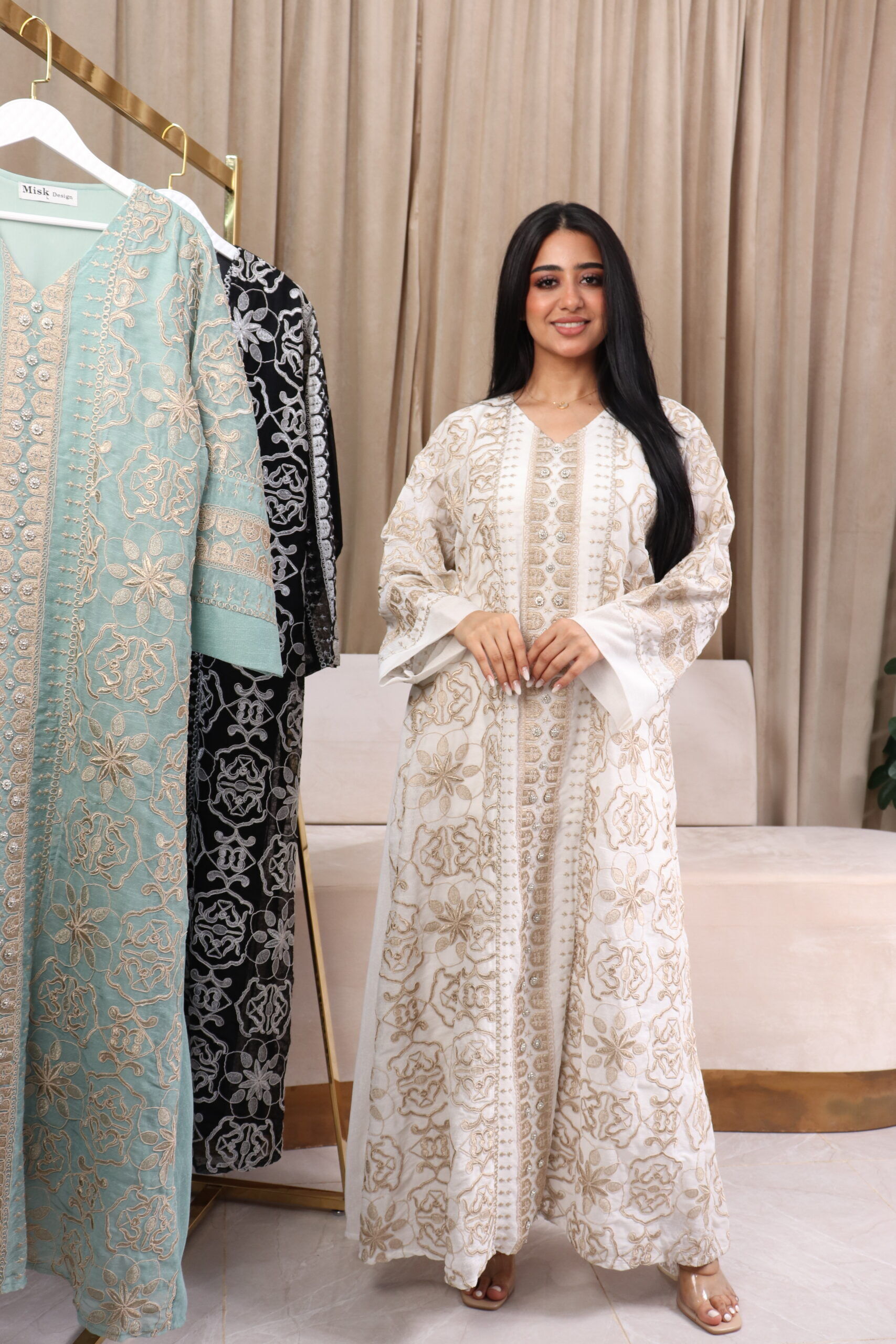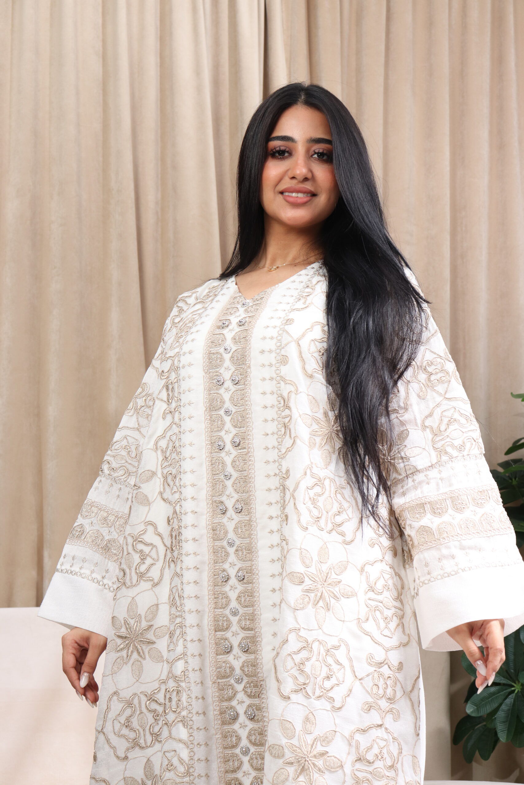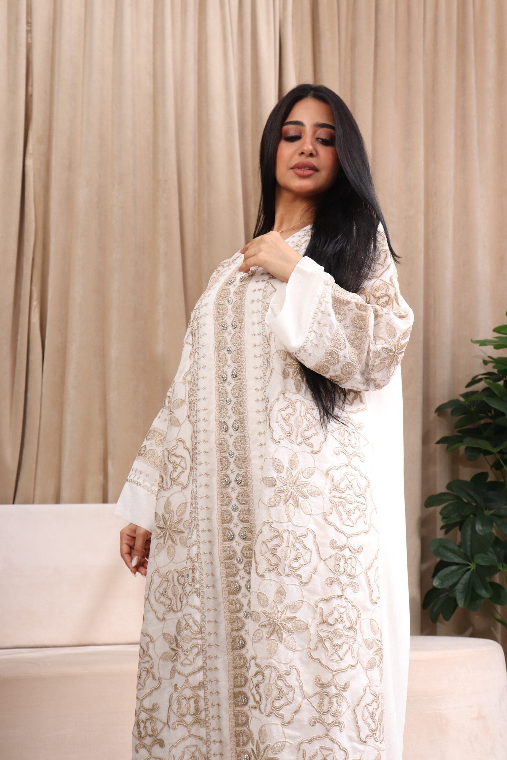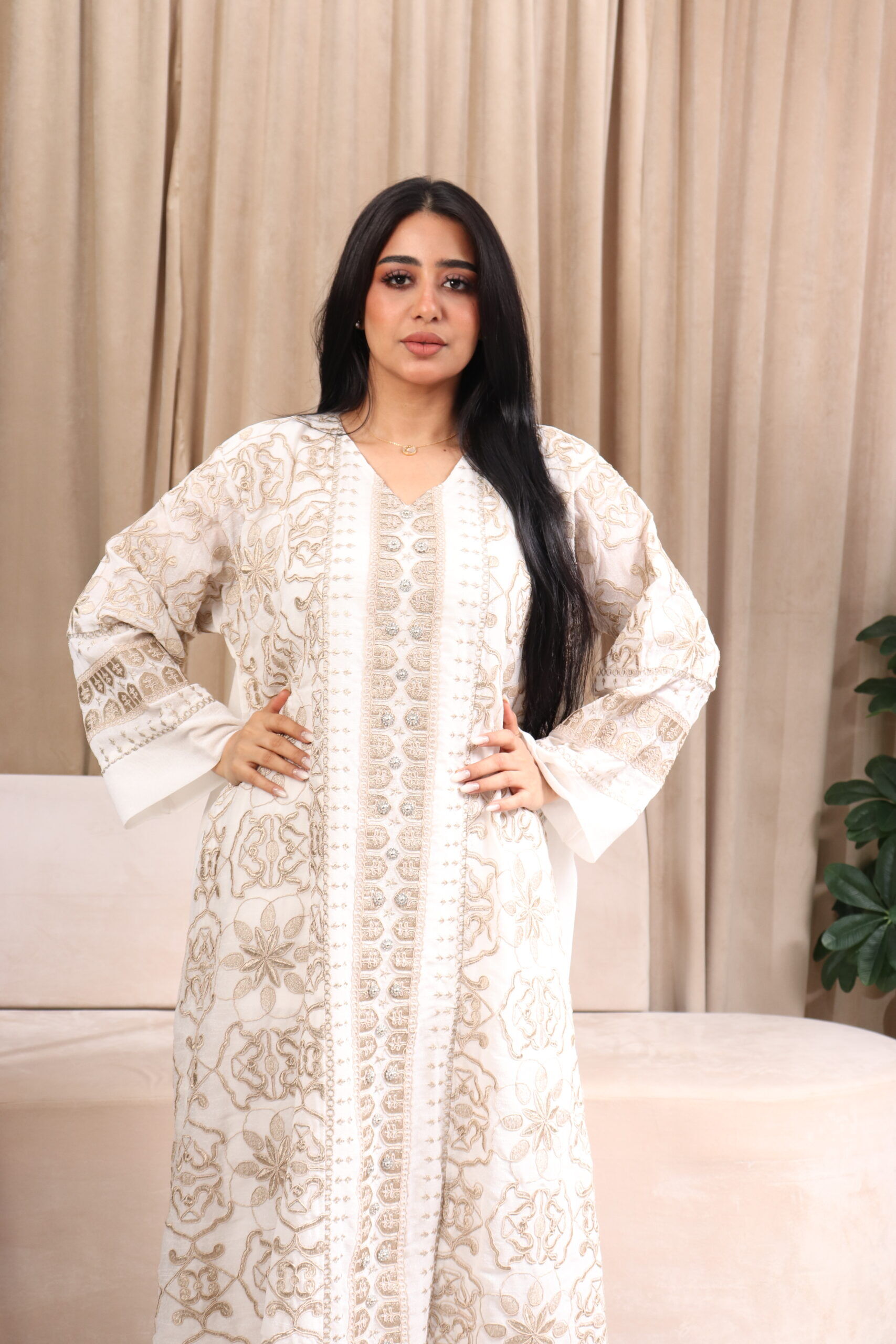 جلابيه بتطريز عربي وبكم وسيع بيج
