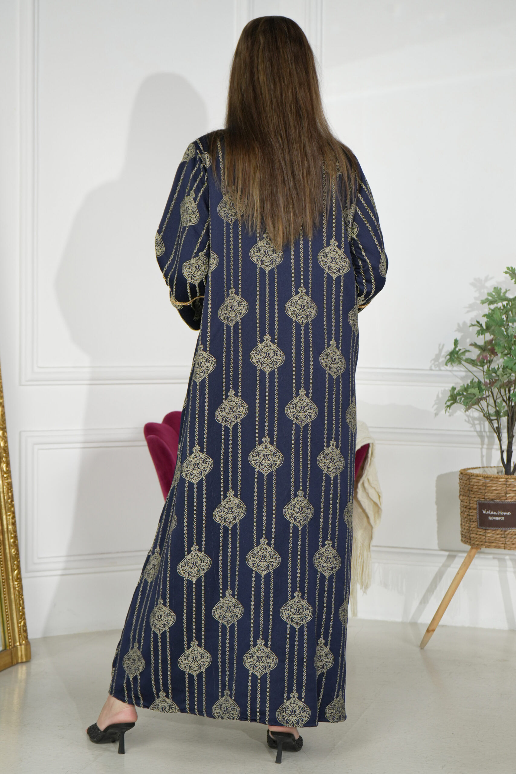 جلابية جاكار كحلي مشجره