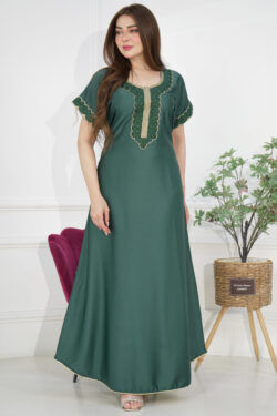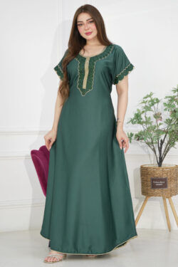 جلابيه زيتي مطرزه تطريز كبيوتر من امام مع فصوص