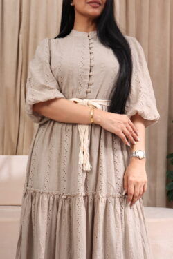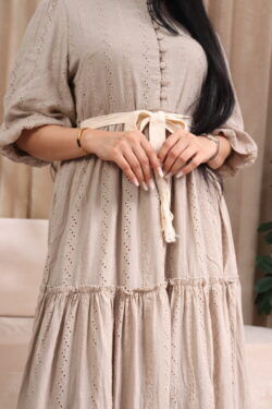 فستان القطن الفاخر بيج مكسره من وسط ومن اسفل