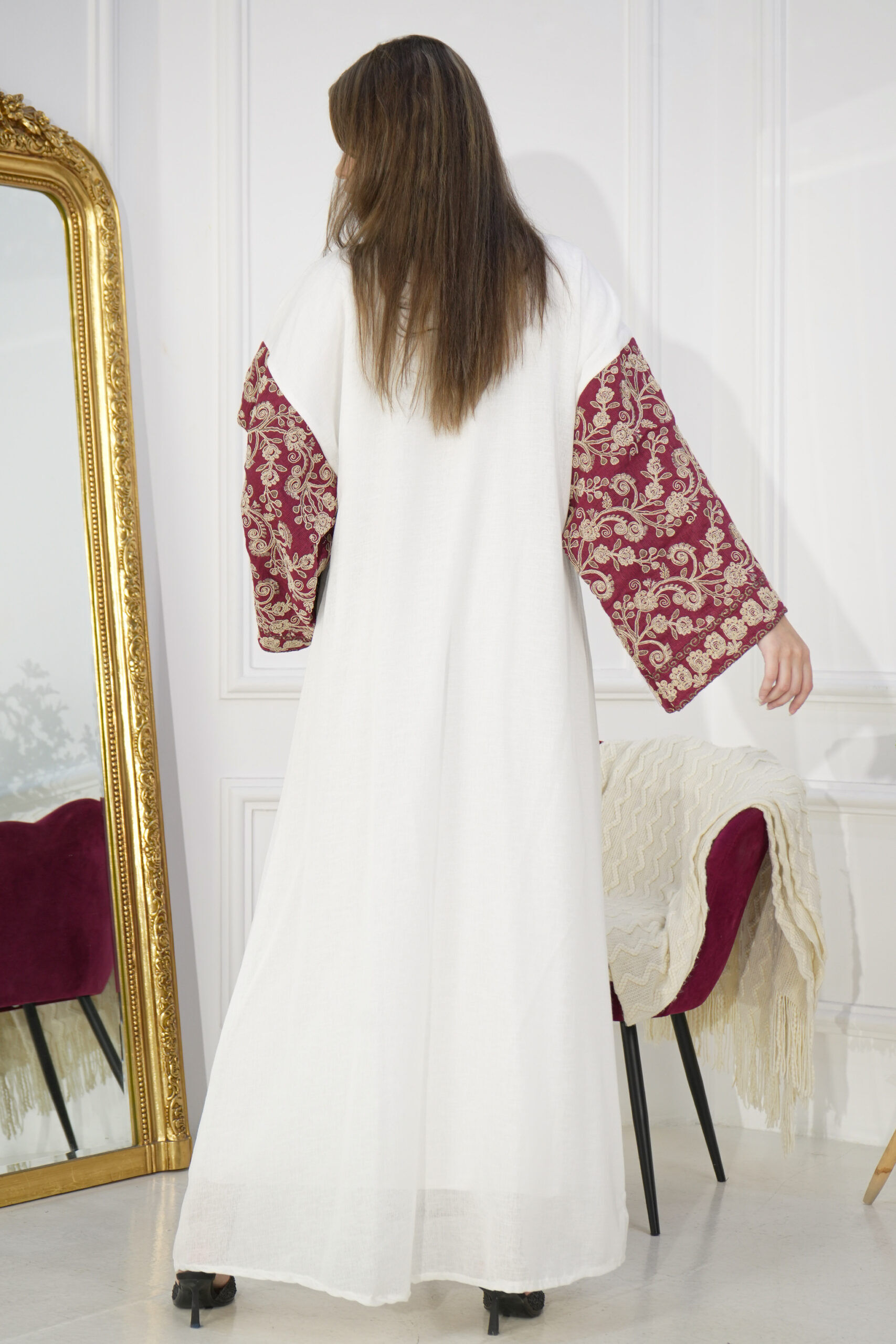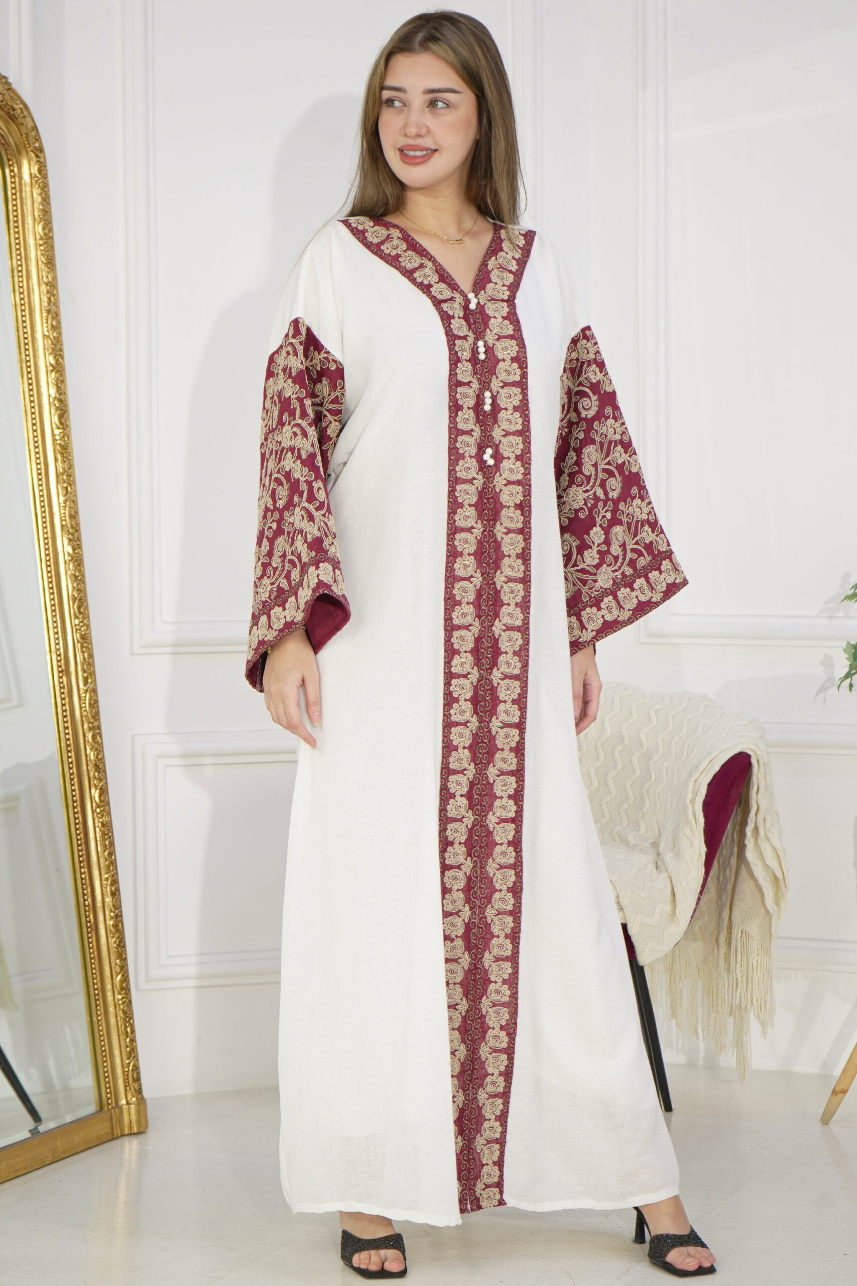 - شكل المنتج : تصميم وسيع بتطريز ملون من الاكمام و الامام