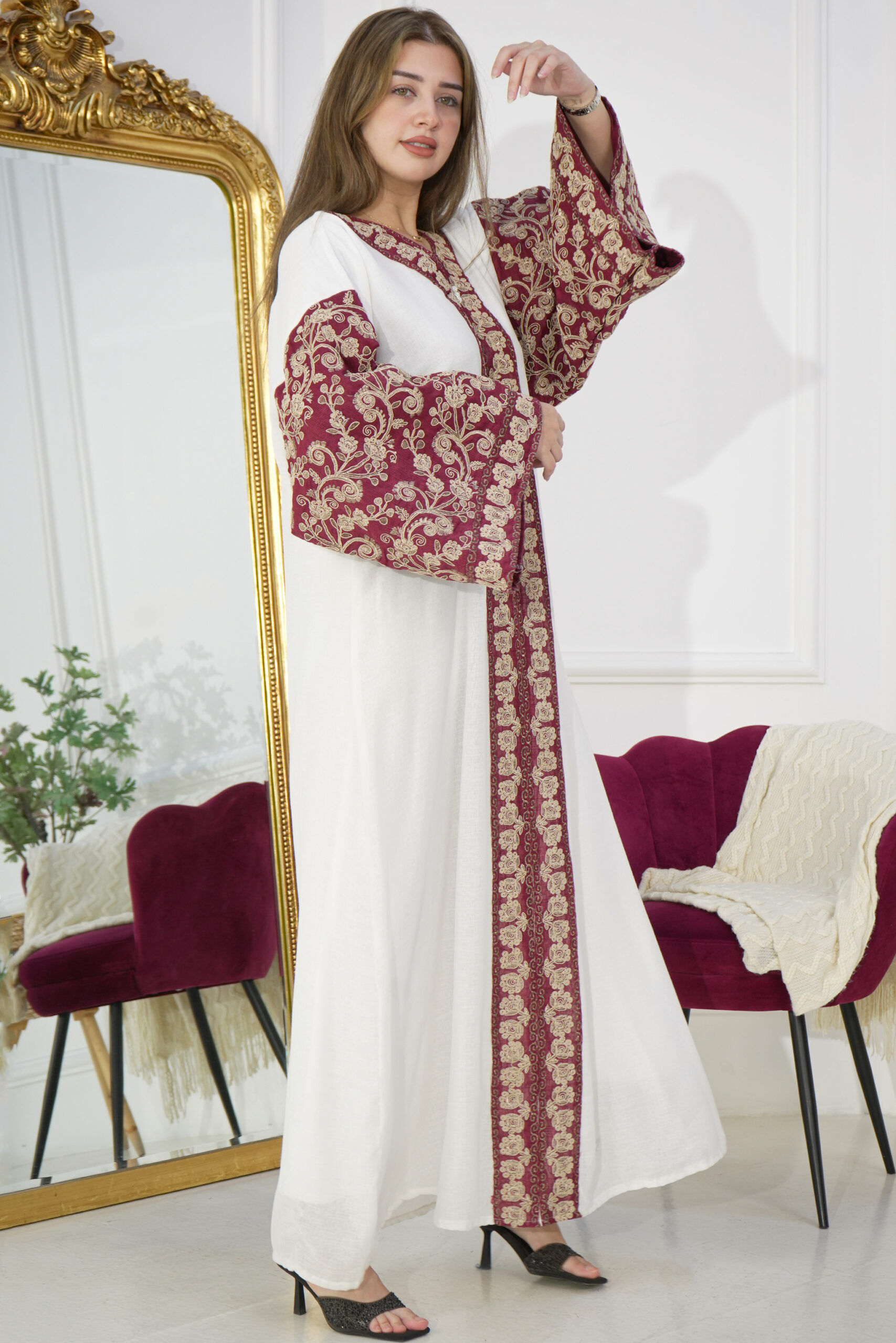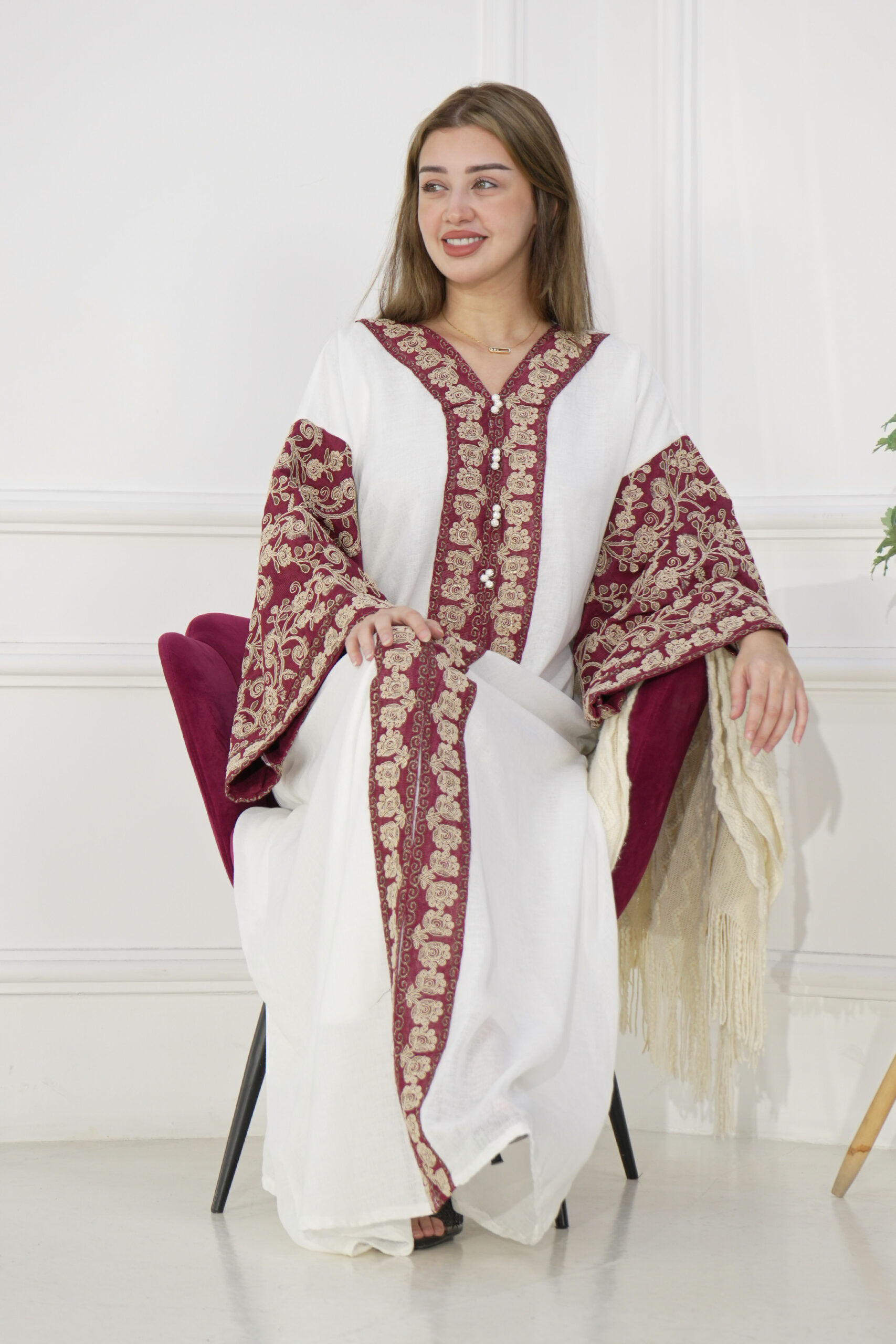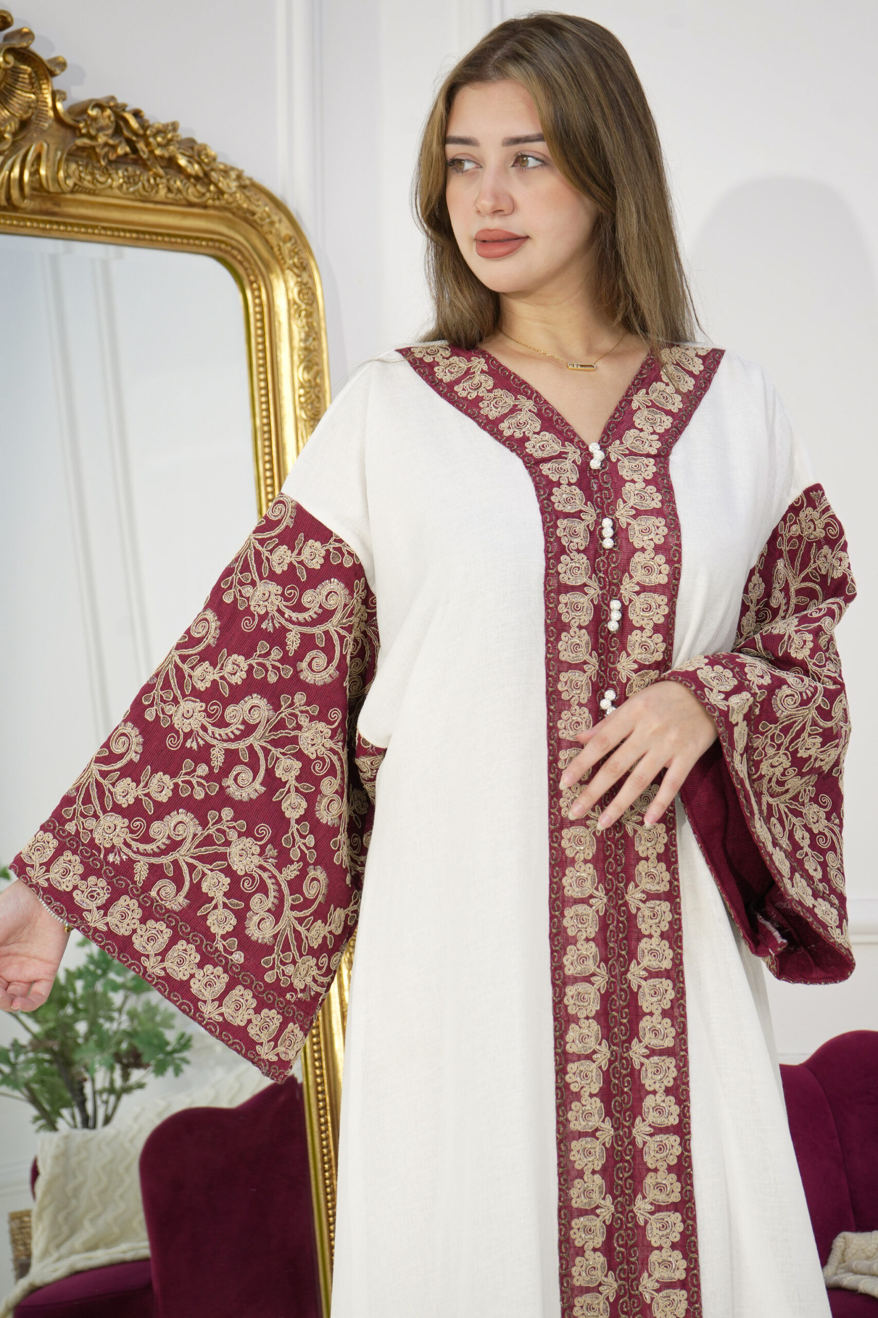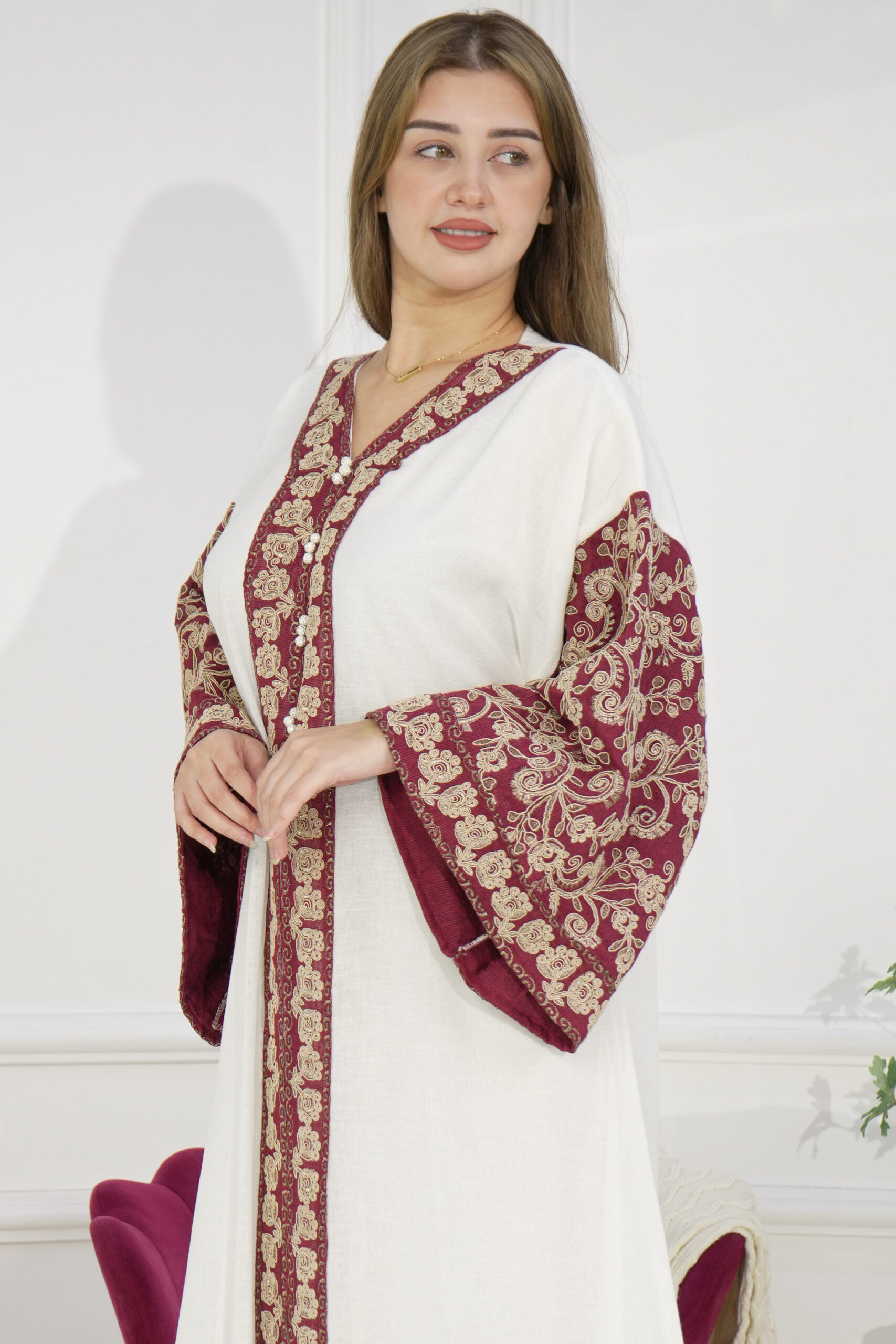 جلابيه عنابي خليجى باكمام وسيع