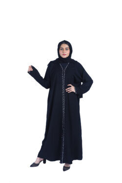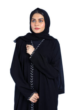 عبايه قطريه بتطريز شك اسود مخفى من امام
