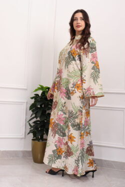 جلابيه ابيض قطن بلياقه مشجره بورود (1)