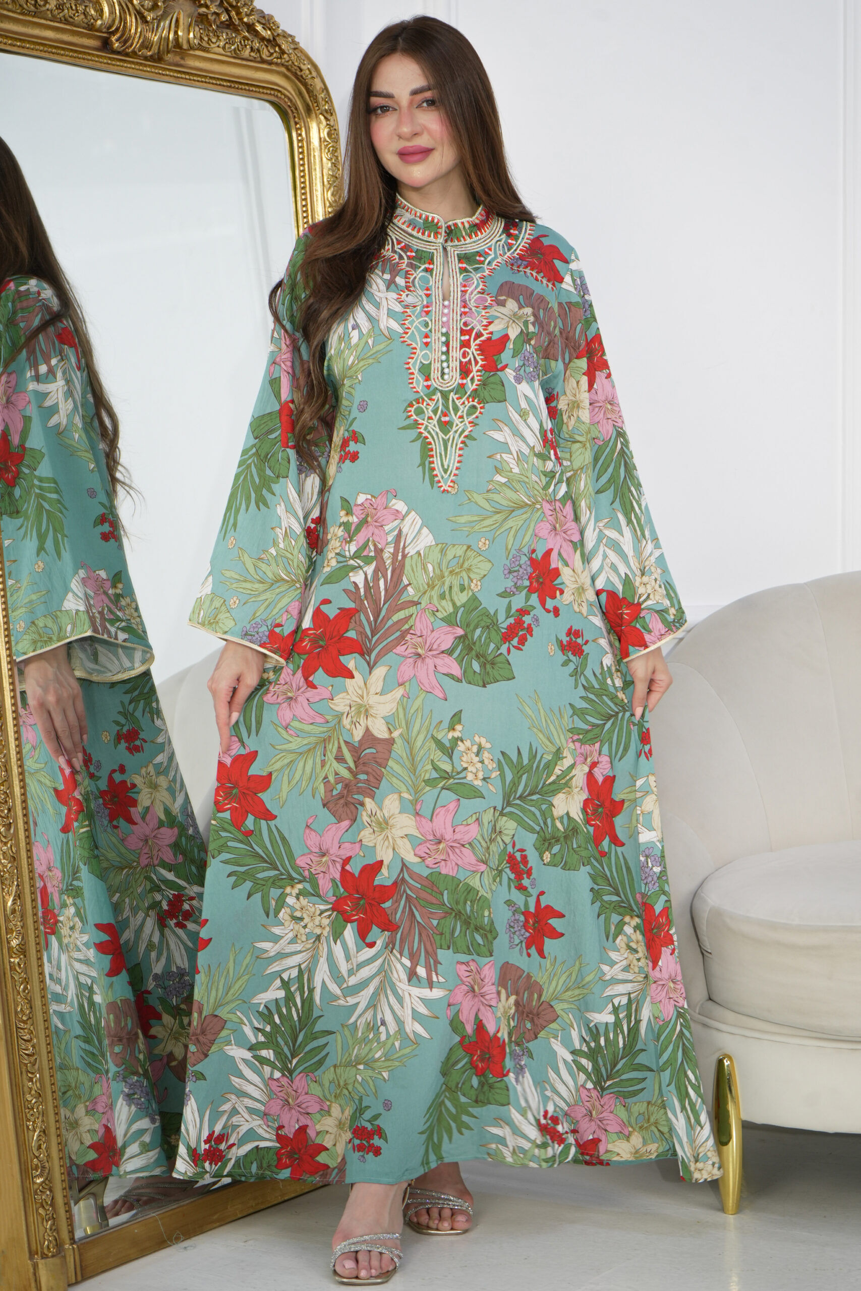 جلابيه تيفاني مشجره بلولو من امام