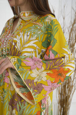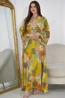 جلابيه اصفر بلياقه و اكمام و سيع