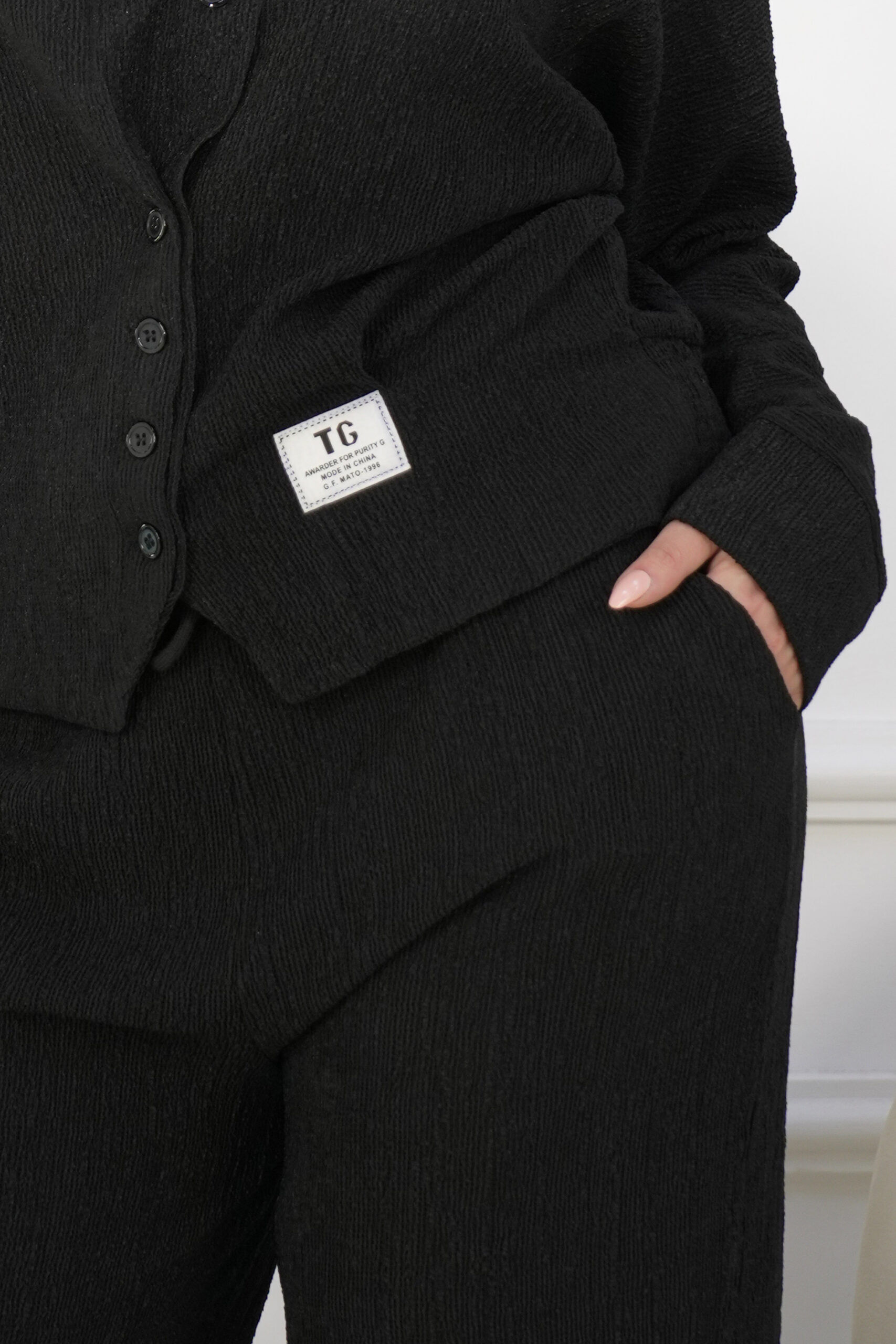 - الموديل: طقم قميص وبنطلون أسود ساتر وعملي