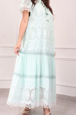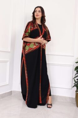 جلابيه اخضر بطبقه داخليه و تطريز من الصدر ممتده على اكتاف