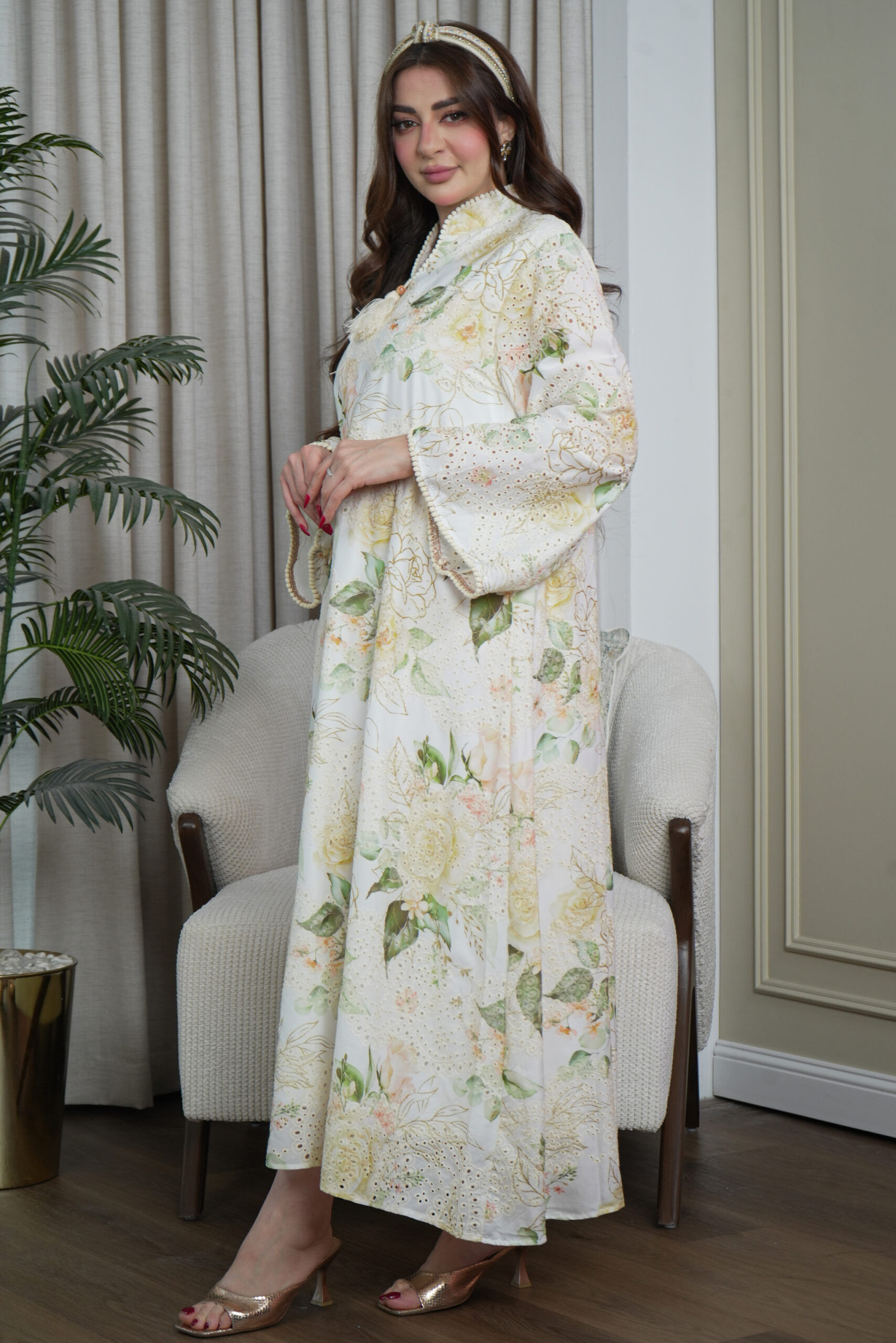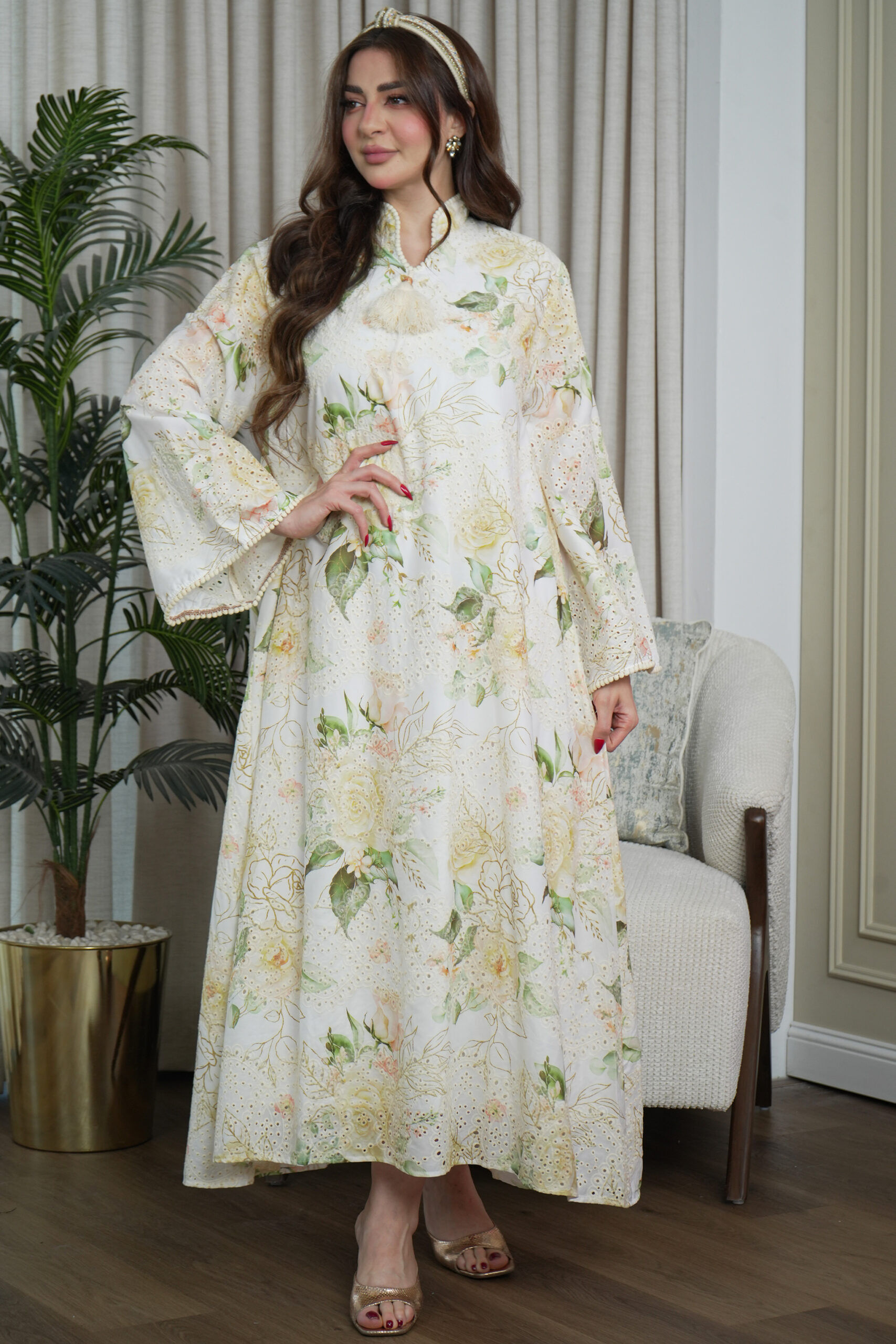 جلابية مشجره بورد اخضر فخمة وراقية للمناسبات العائلية من الجلابيات الأكثر طلباً لأنها: