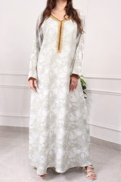 جلابيه بتطريز عربي وبكم وسيع بيج