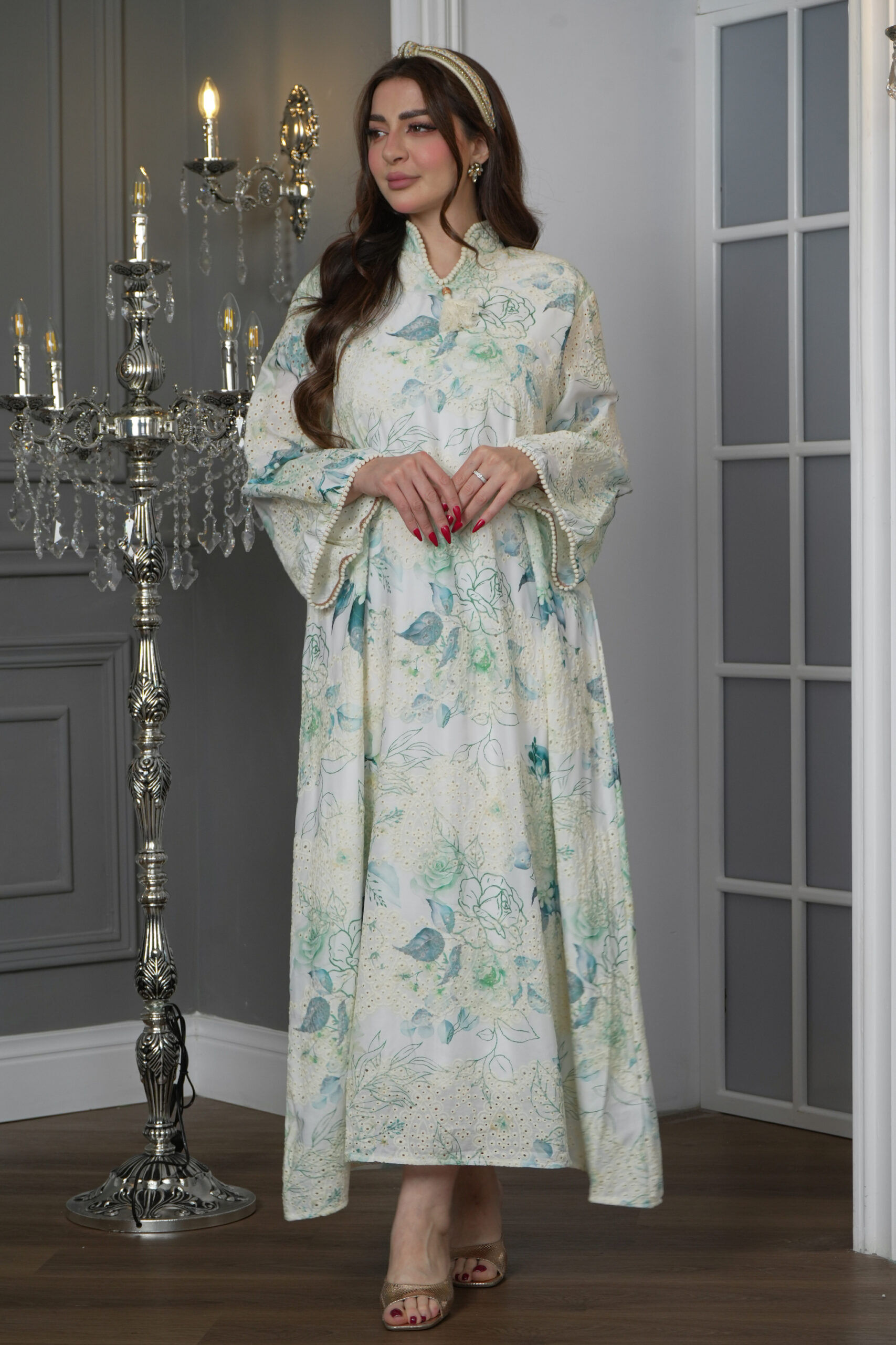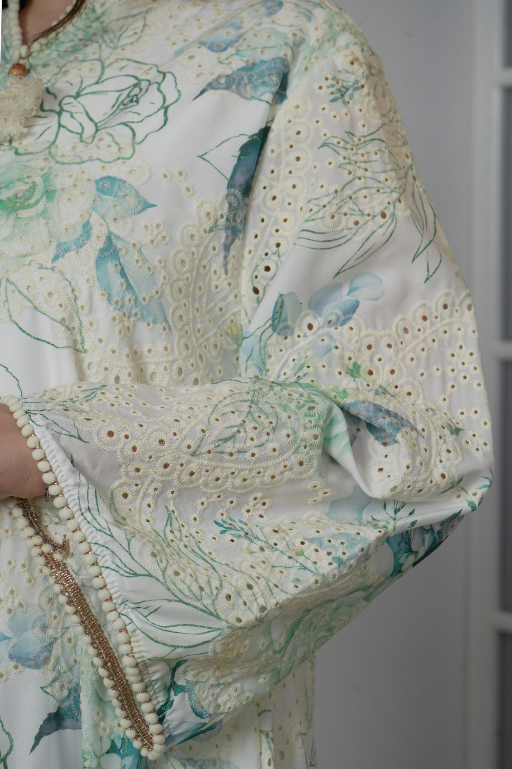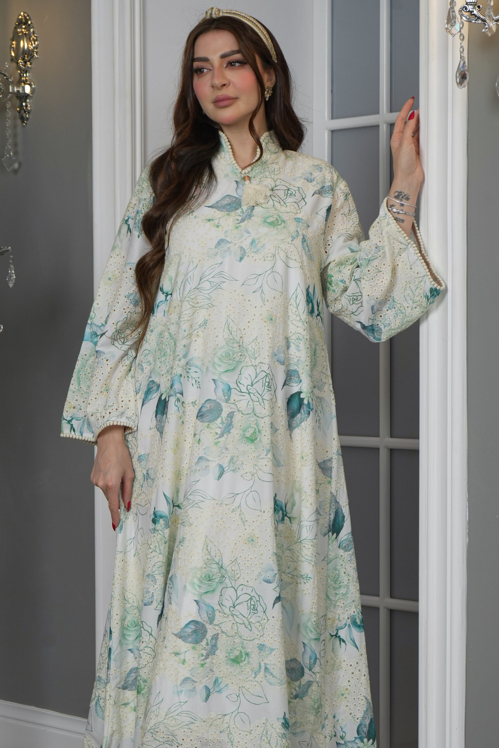 جلابية مشجره بورد تركواز