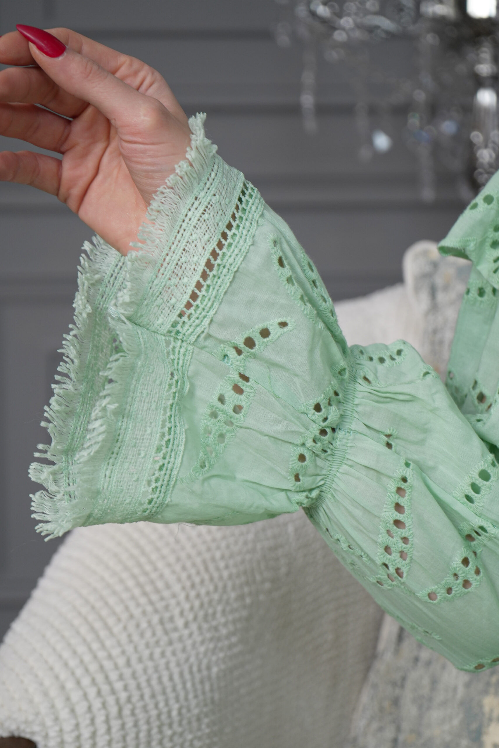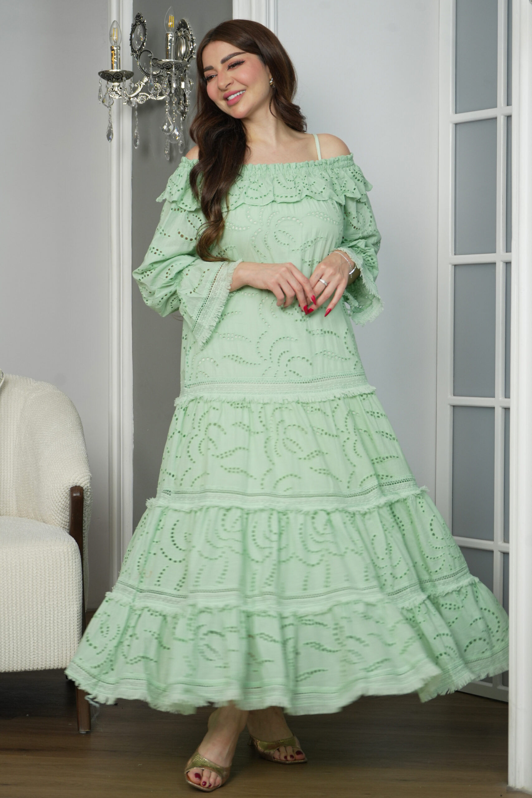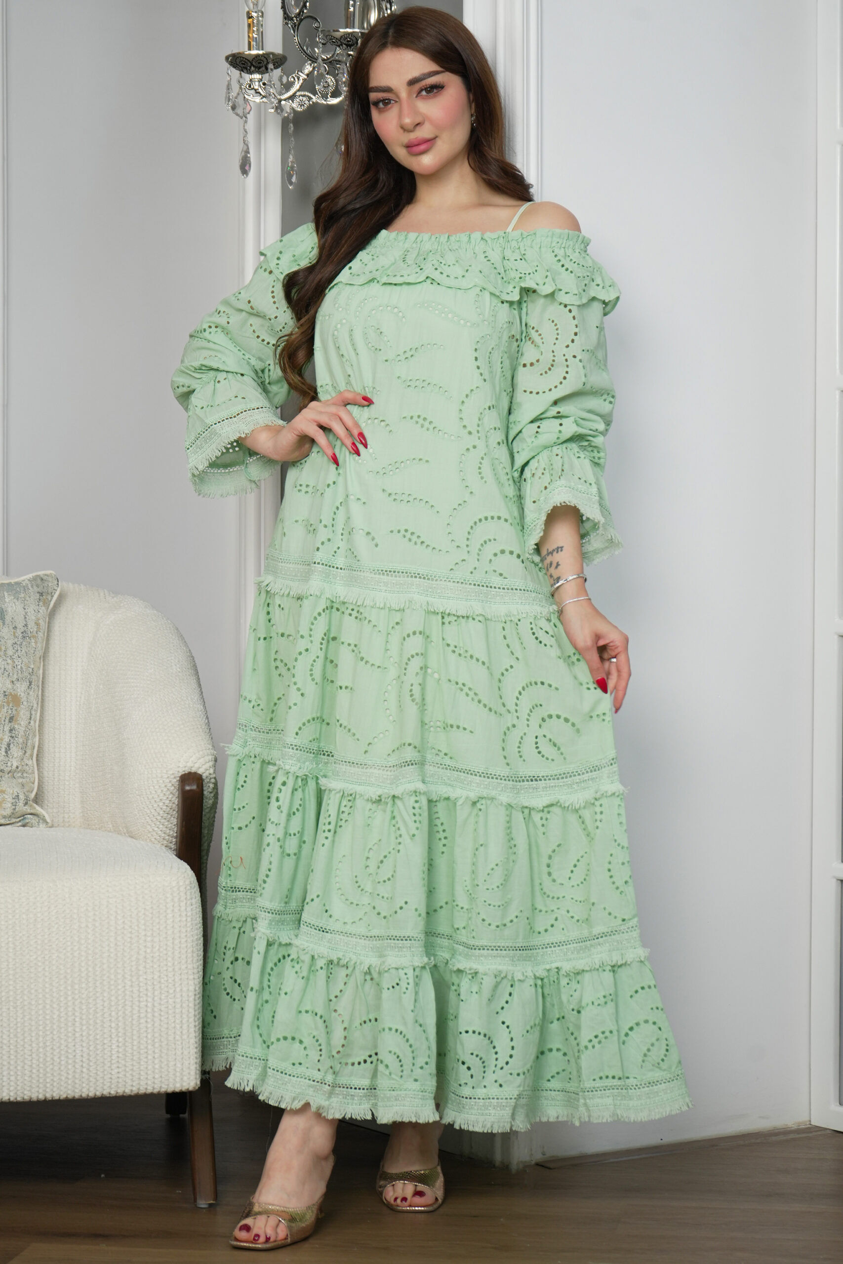 جلابيه اخضر بترتر كامل على شكل ورق شجر
