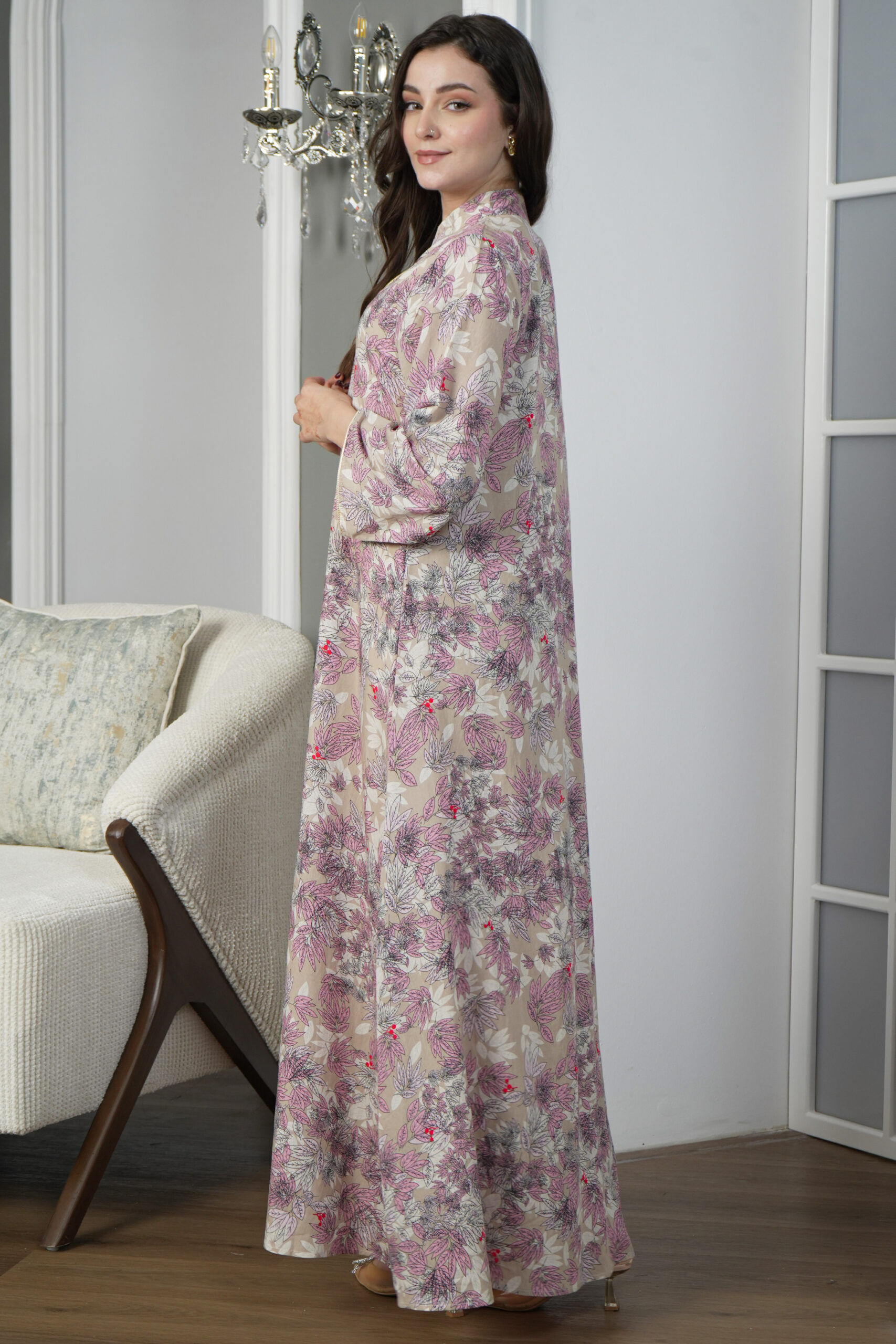 عبايه كتان بتدخل قماش مخطط من الاجناب