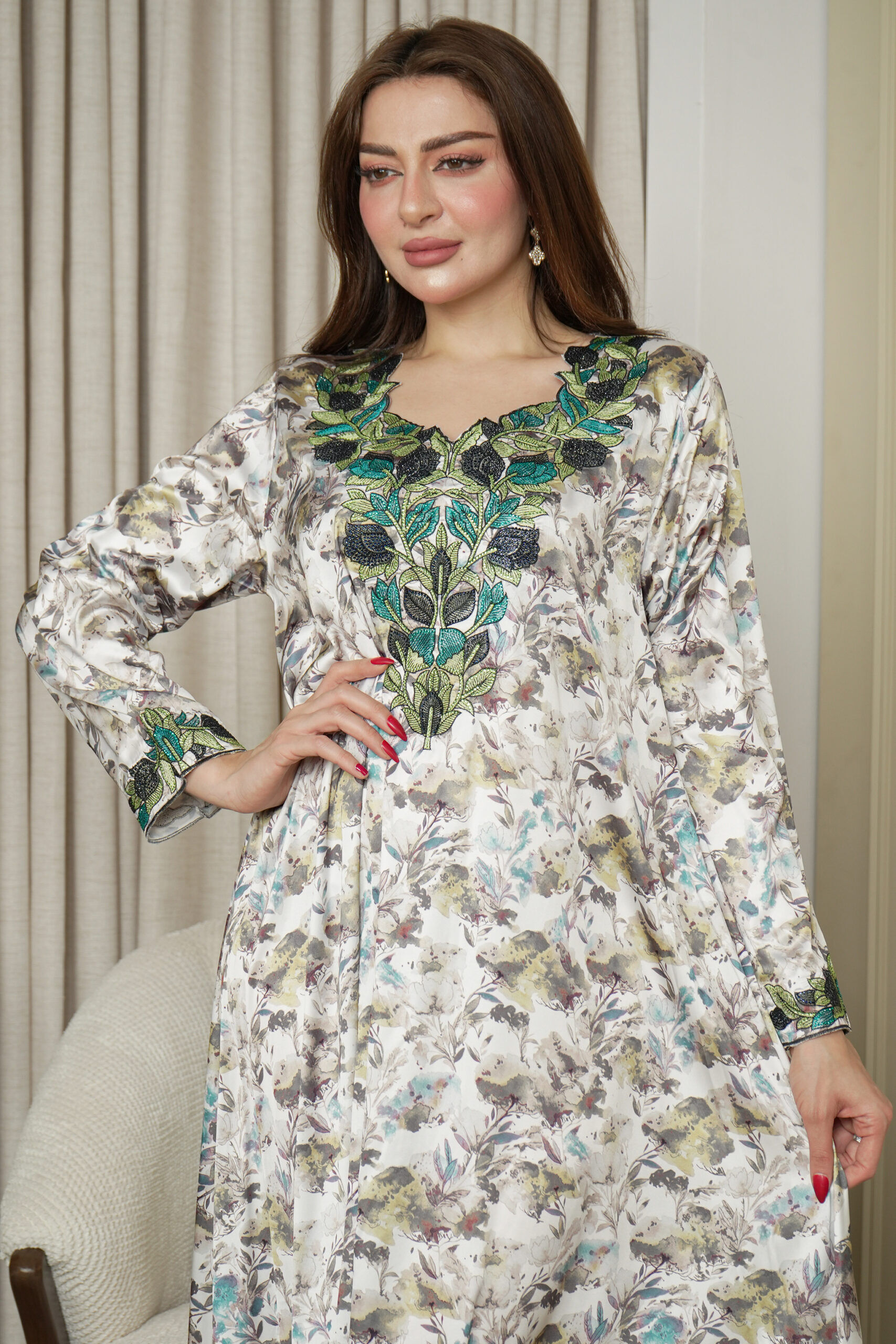 عبايه بقصة اماراتي بتطريز شك مخفي