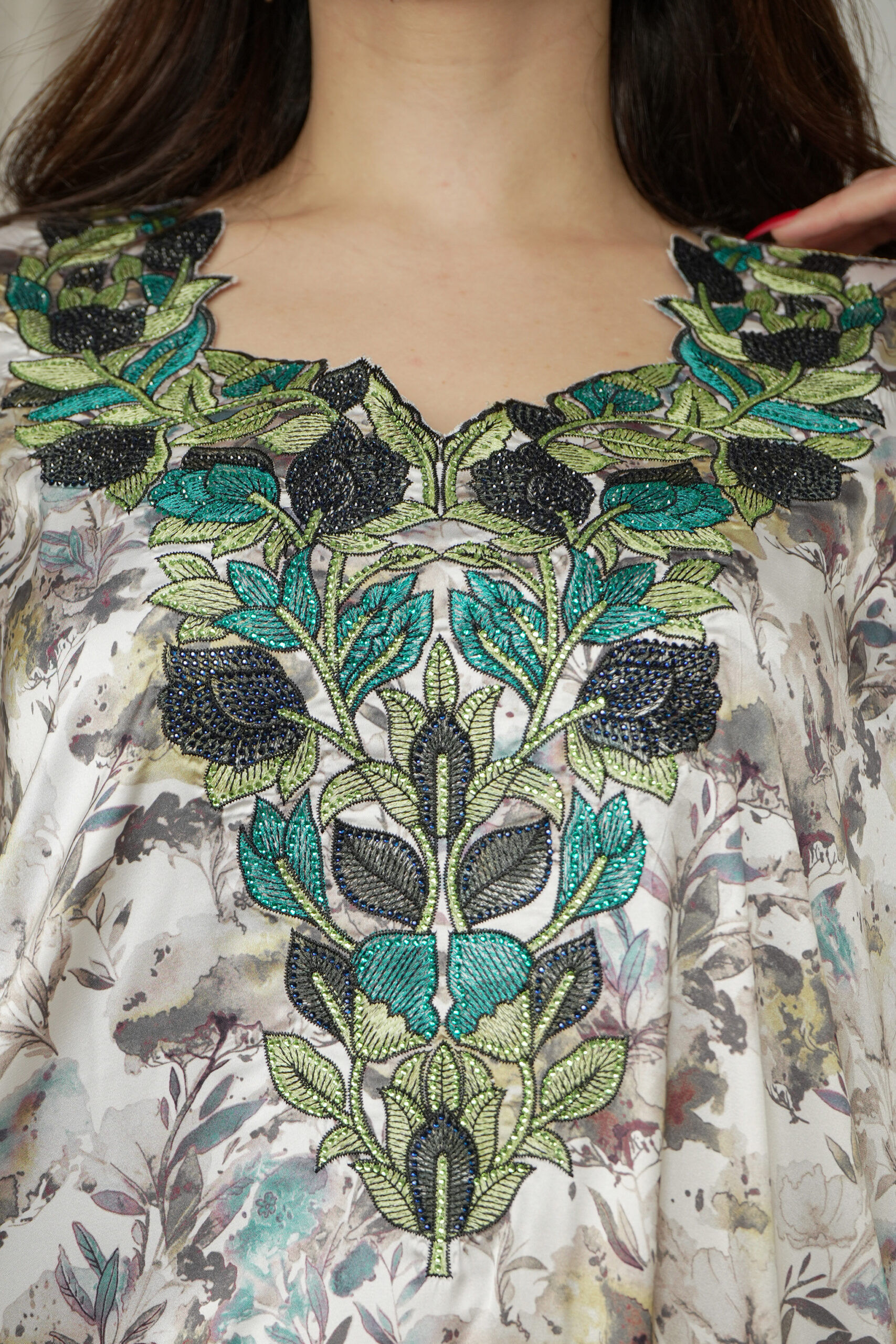 مخاوير اخضر تطريز اماراتيه محدد من الحلق بفصوص