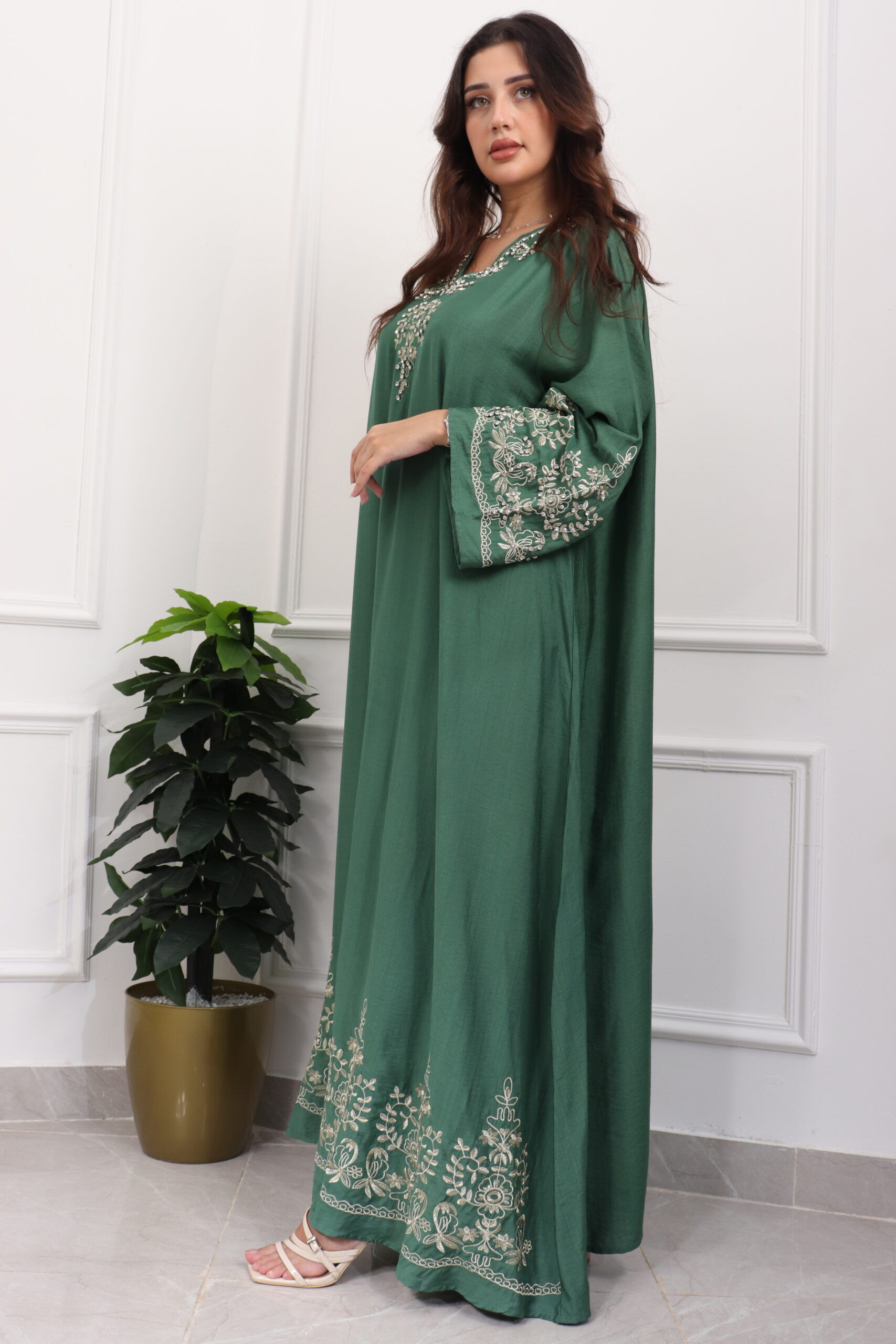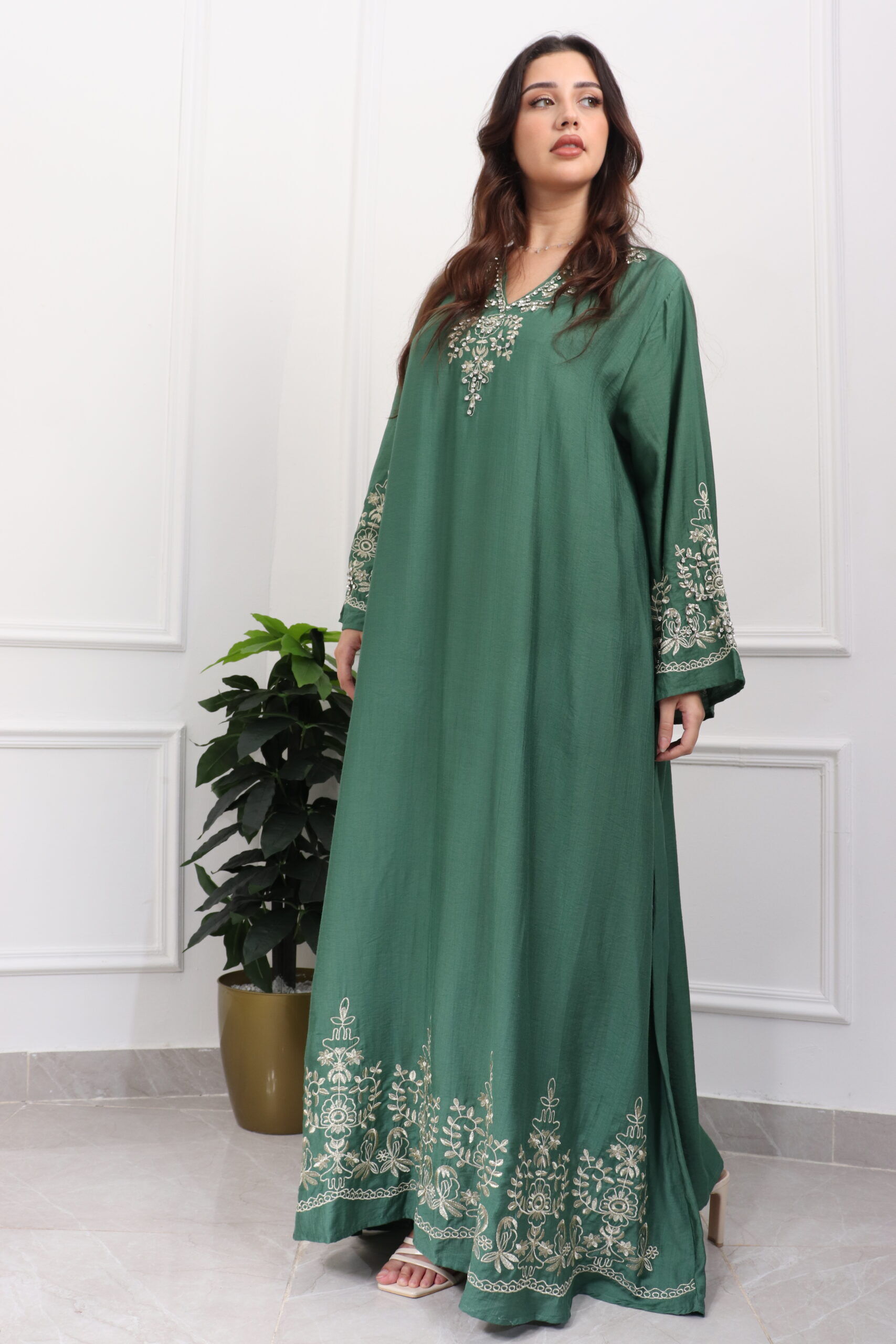 جلابيه عنابي مطرزه تطريز كبيوتر من امام مع فصوص
