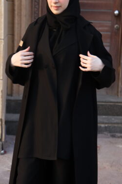 عباية أسود طقم ثلاث قطع (عباية + جاكيت + بنطلون) منسوجة من قماش كريب واقف