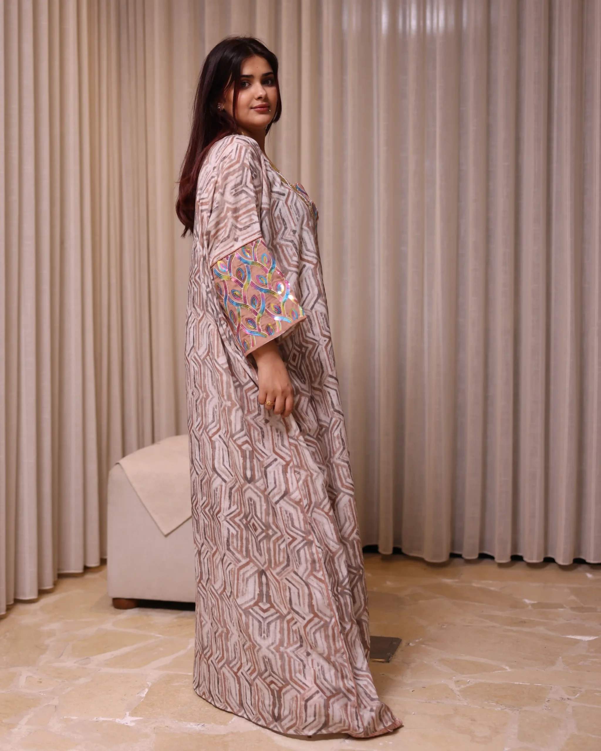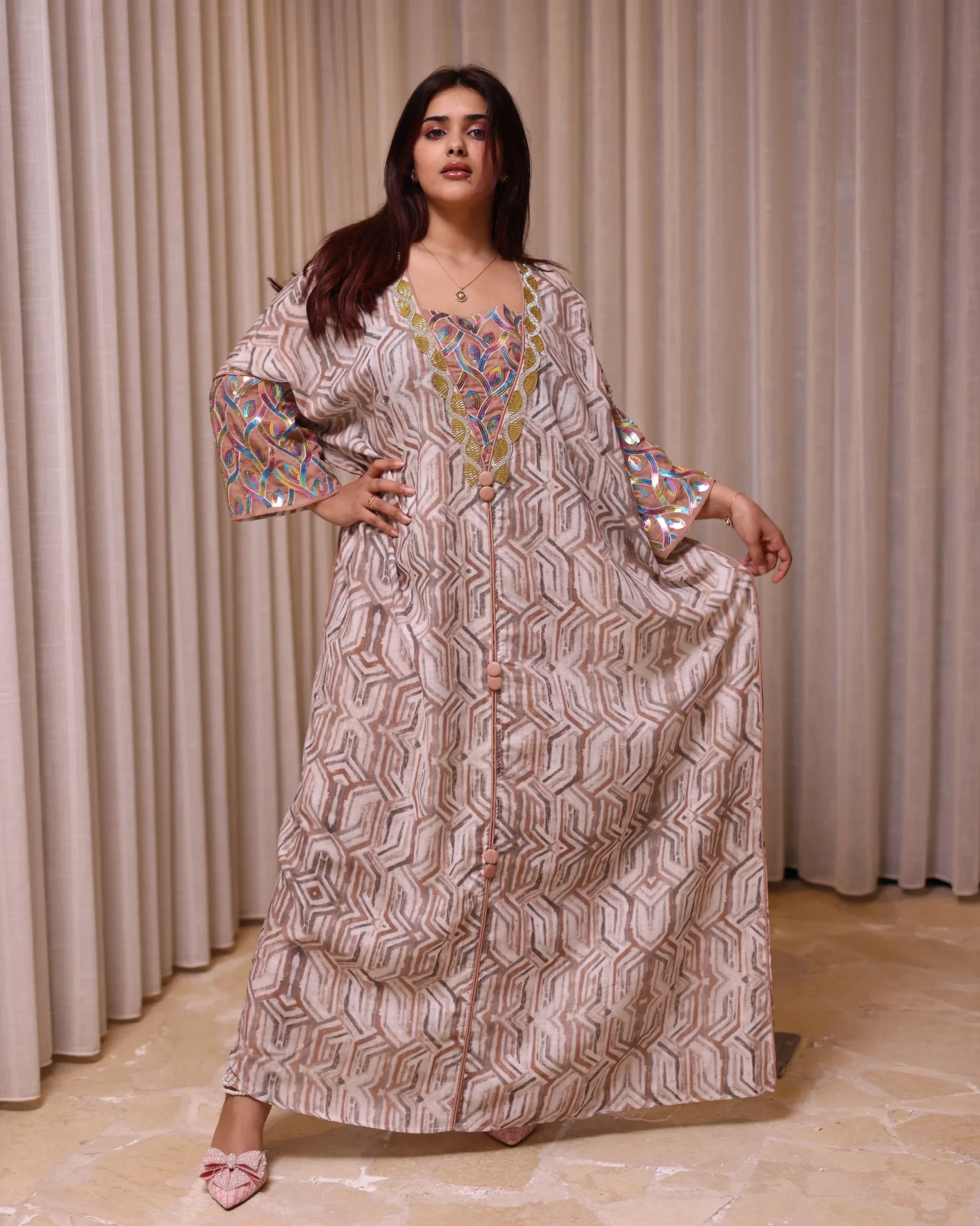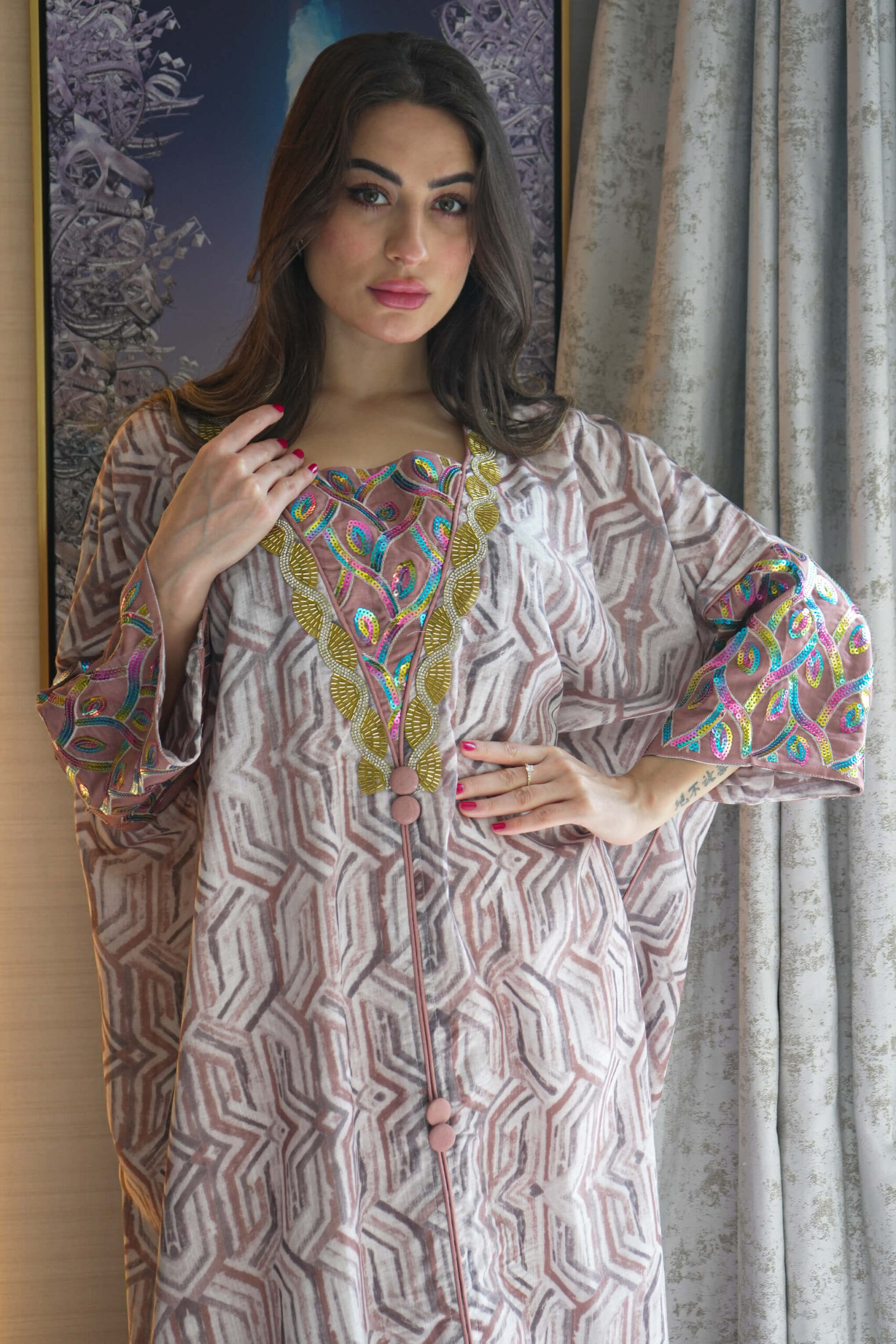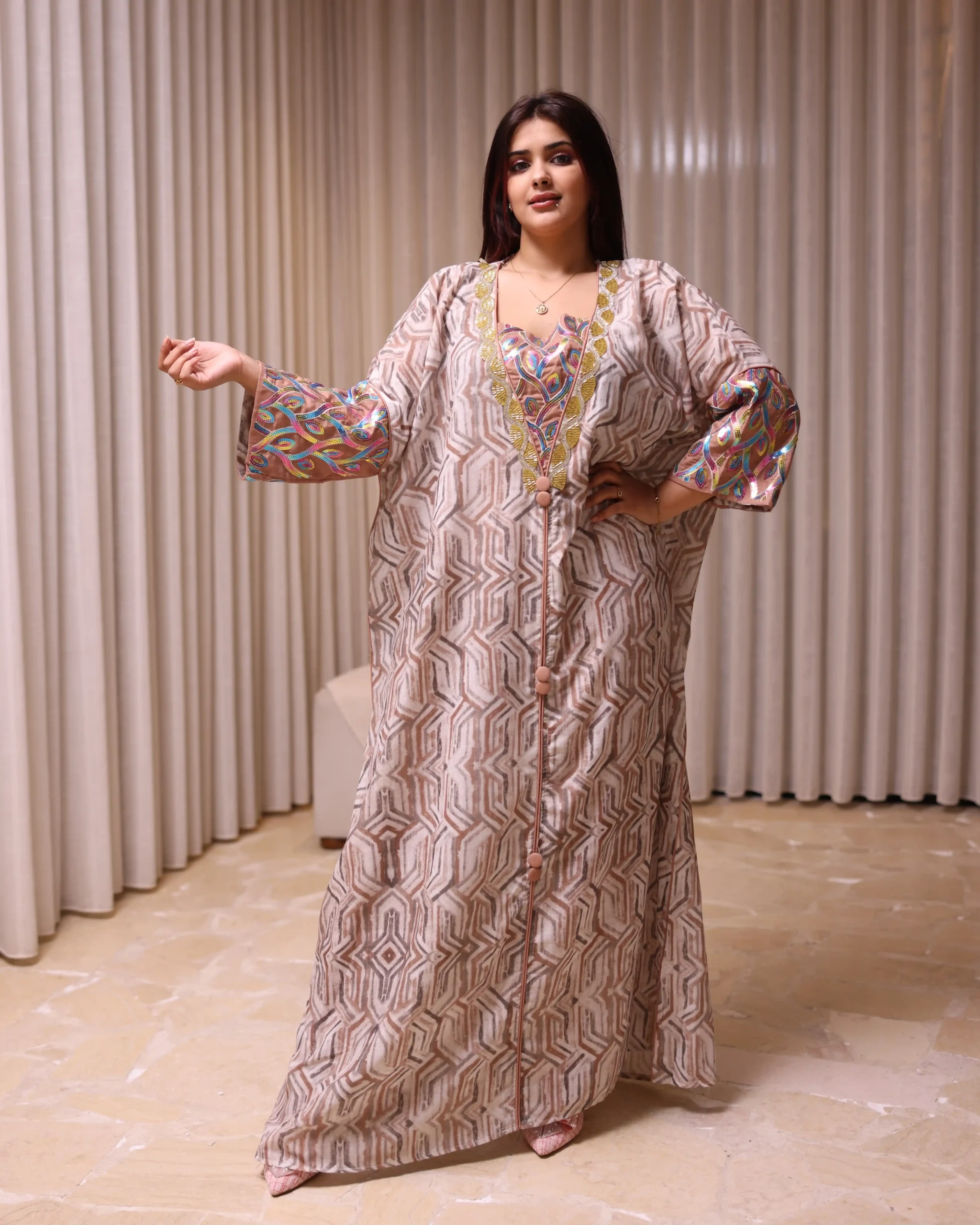 جلابية فخمة صممناها بقصة هاينك ساترة وبشك يدوي كرستال