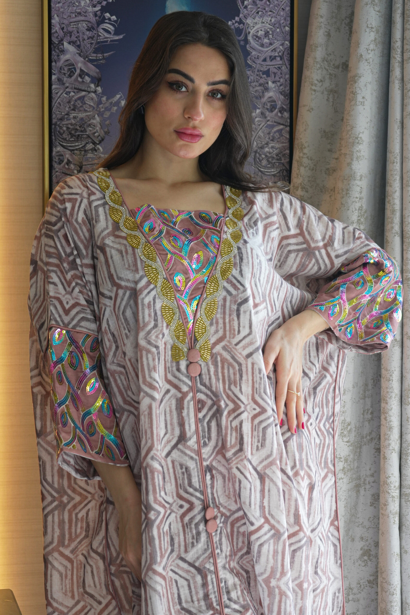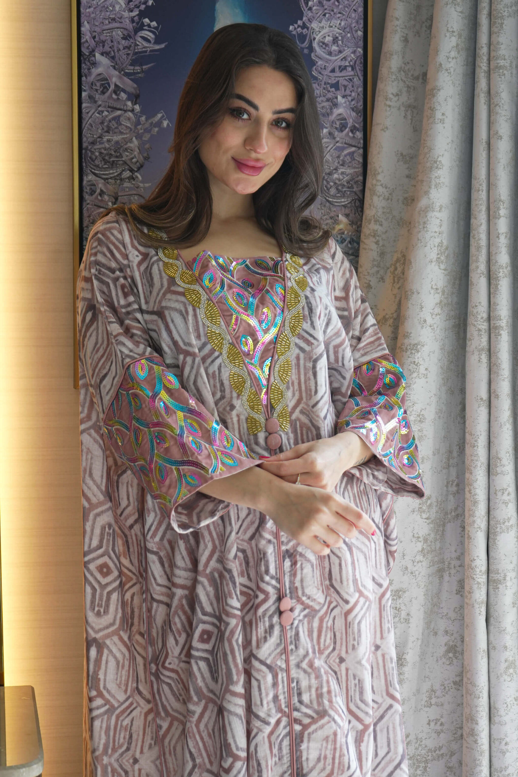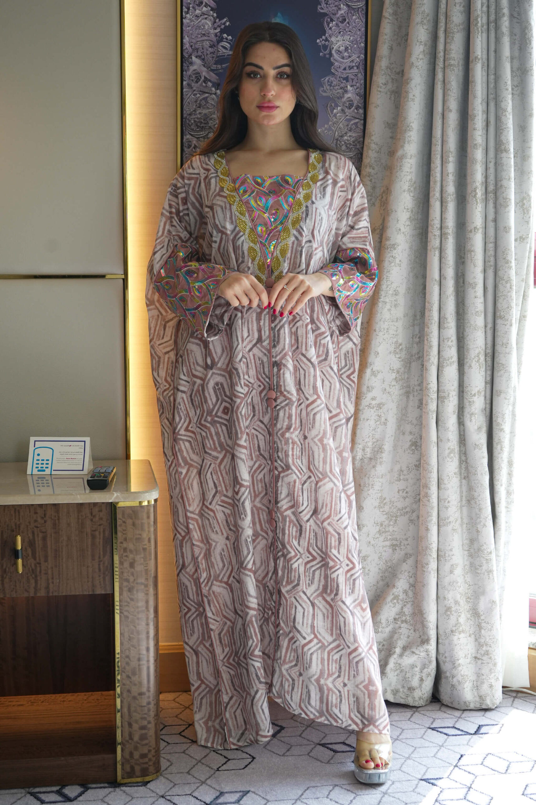 جلابية فخمة صممناها بقصة هاينك ساترة وبشك يدوي كرستال