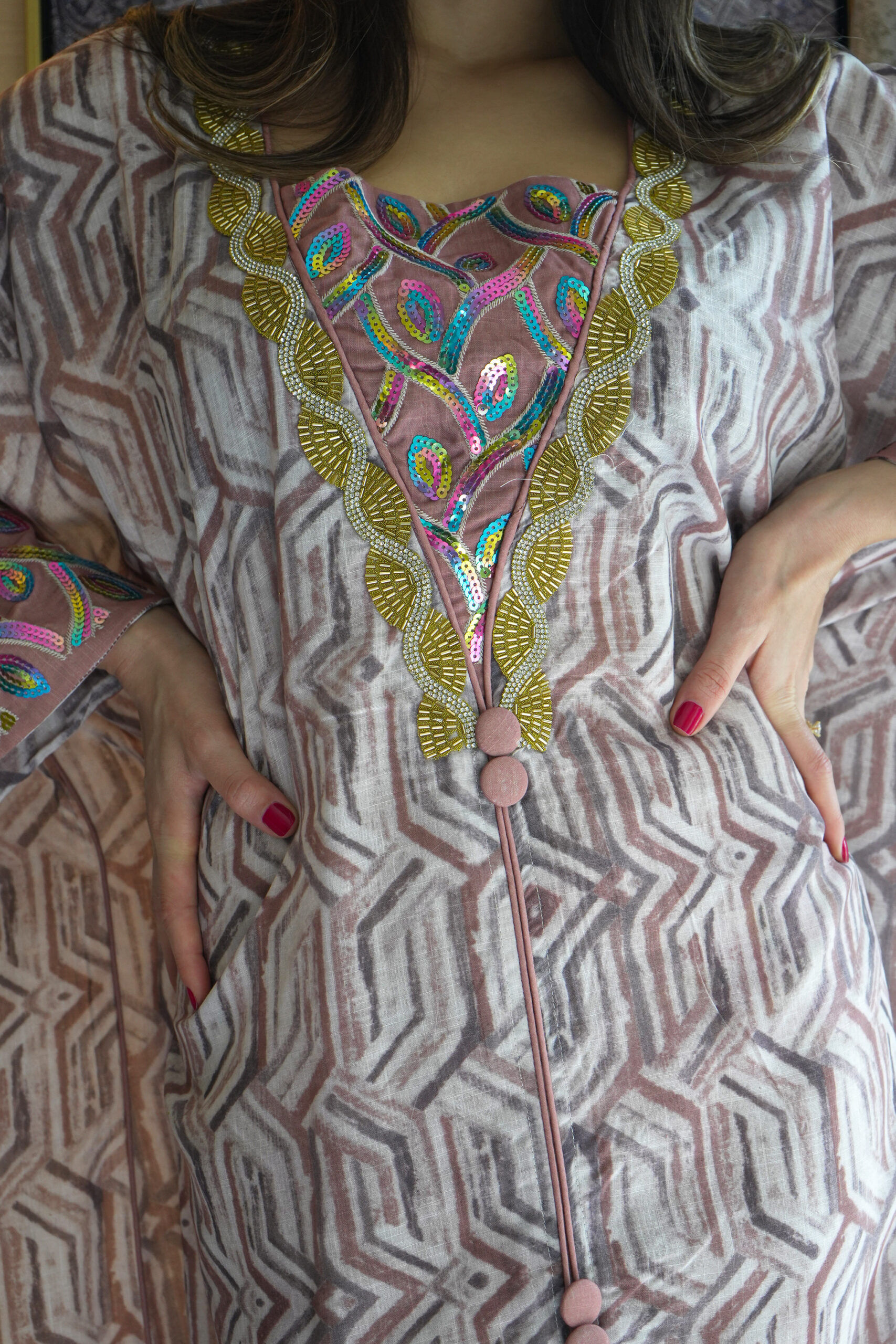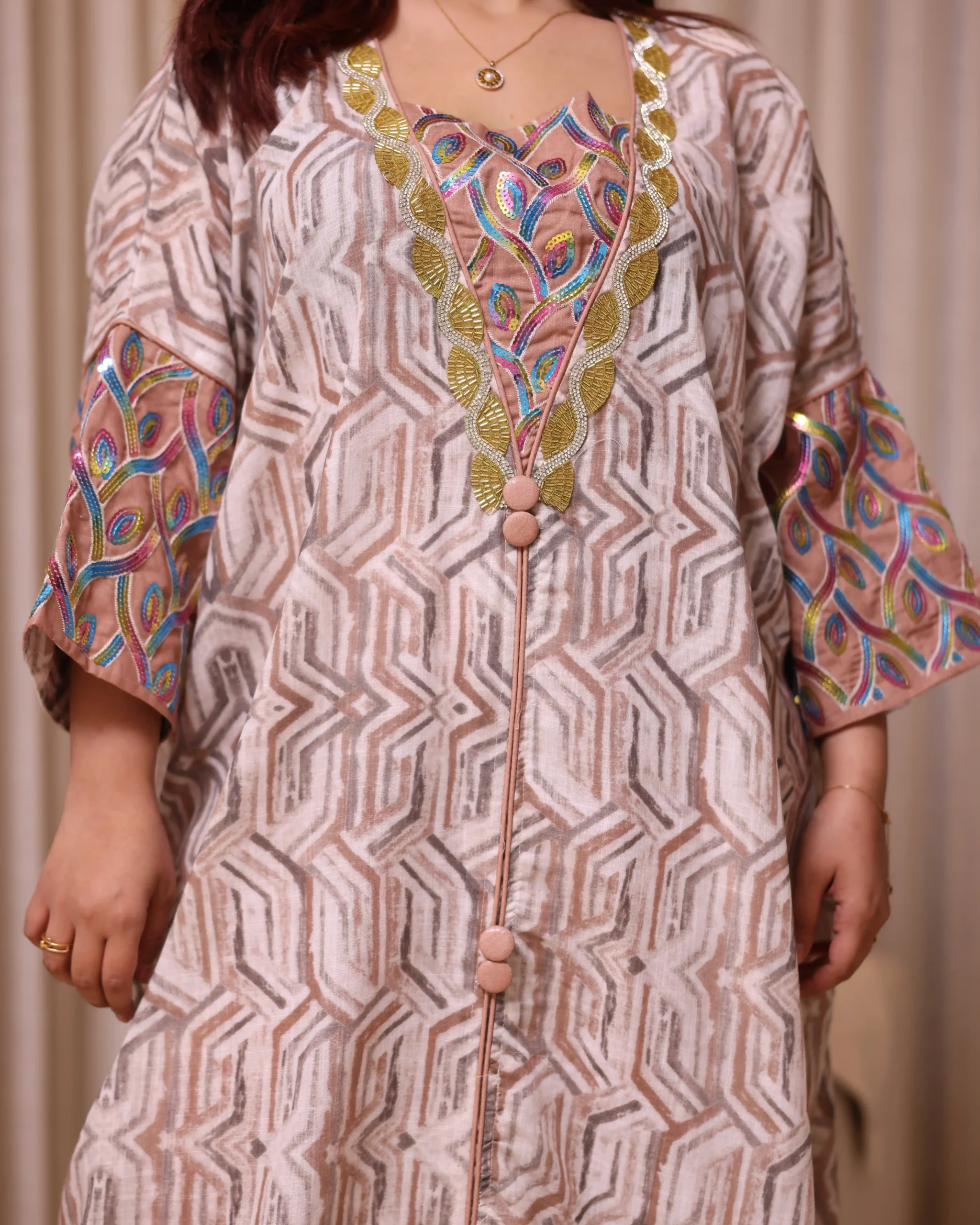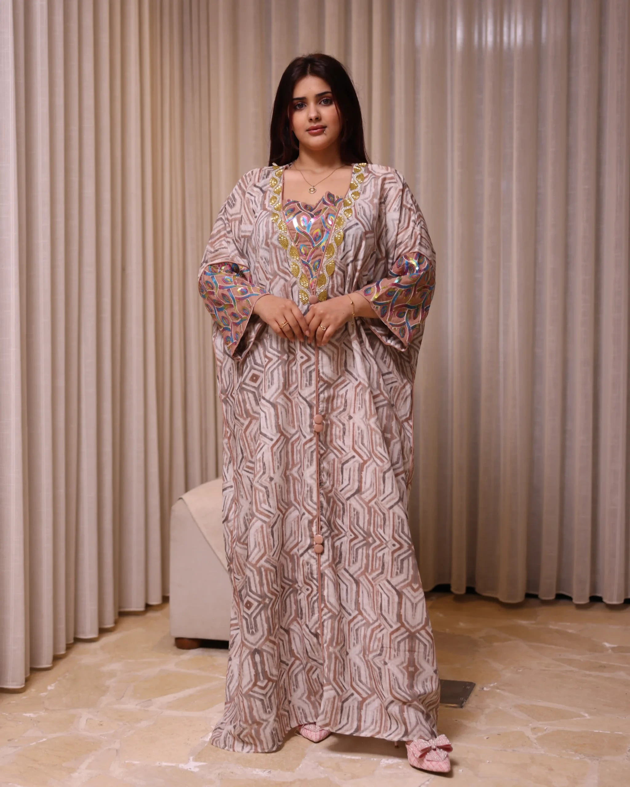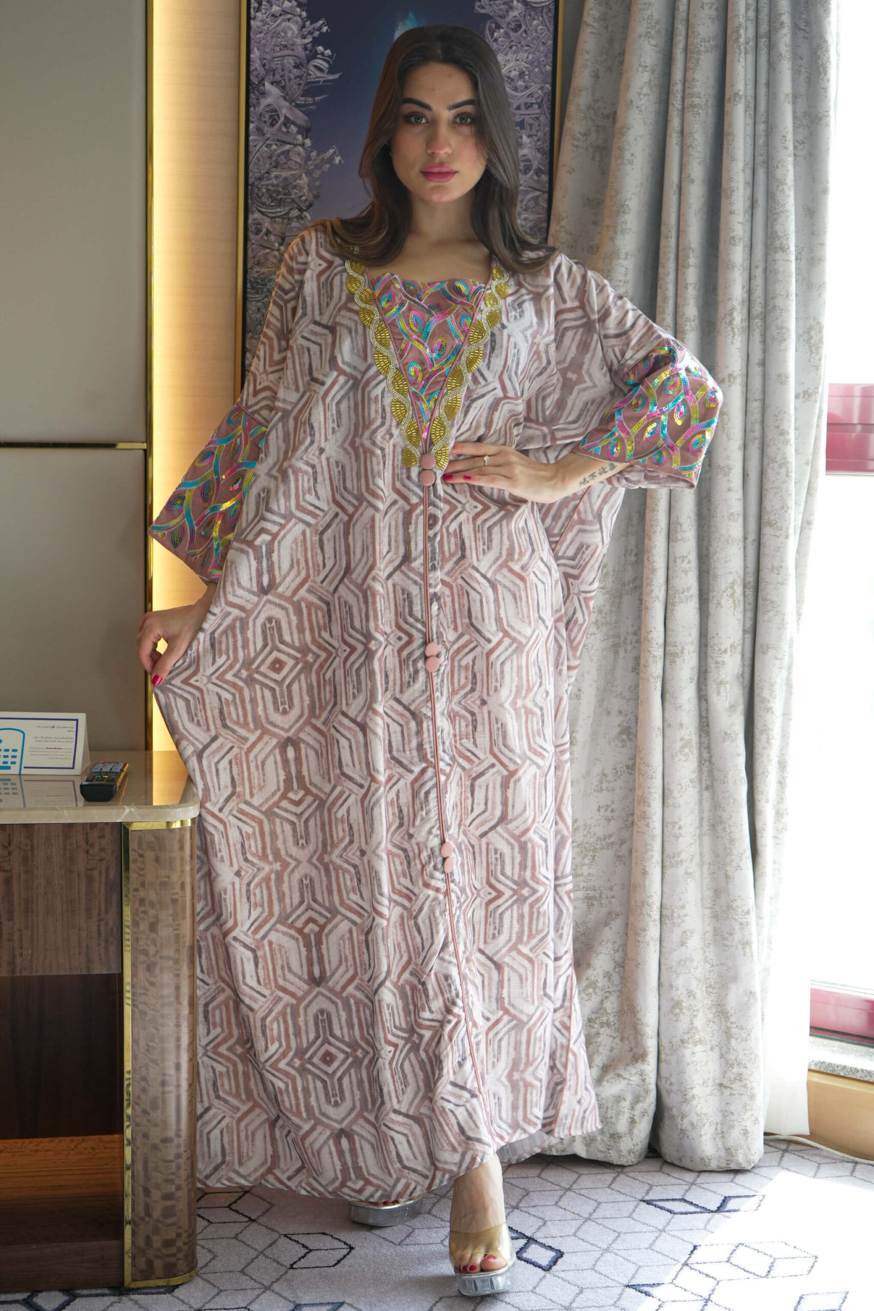جلابية فخمة صممناها بقصة هاينك ساترة وبشك يدوي كرستال
