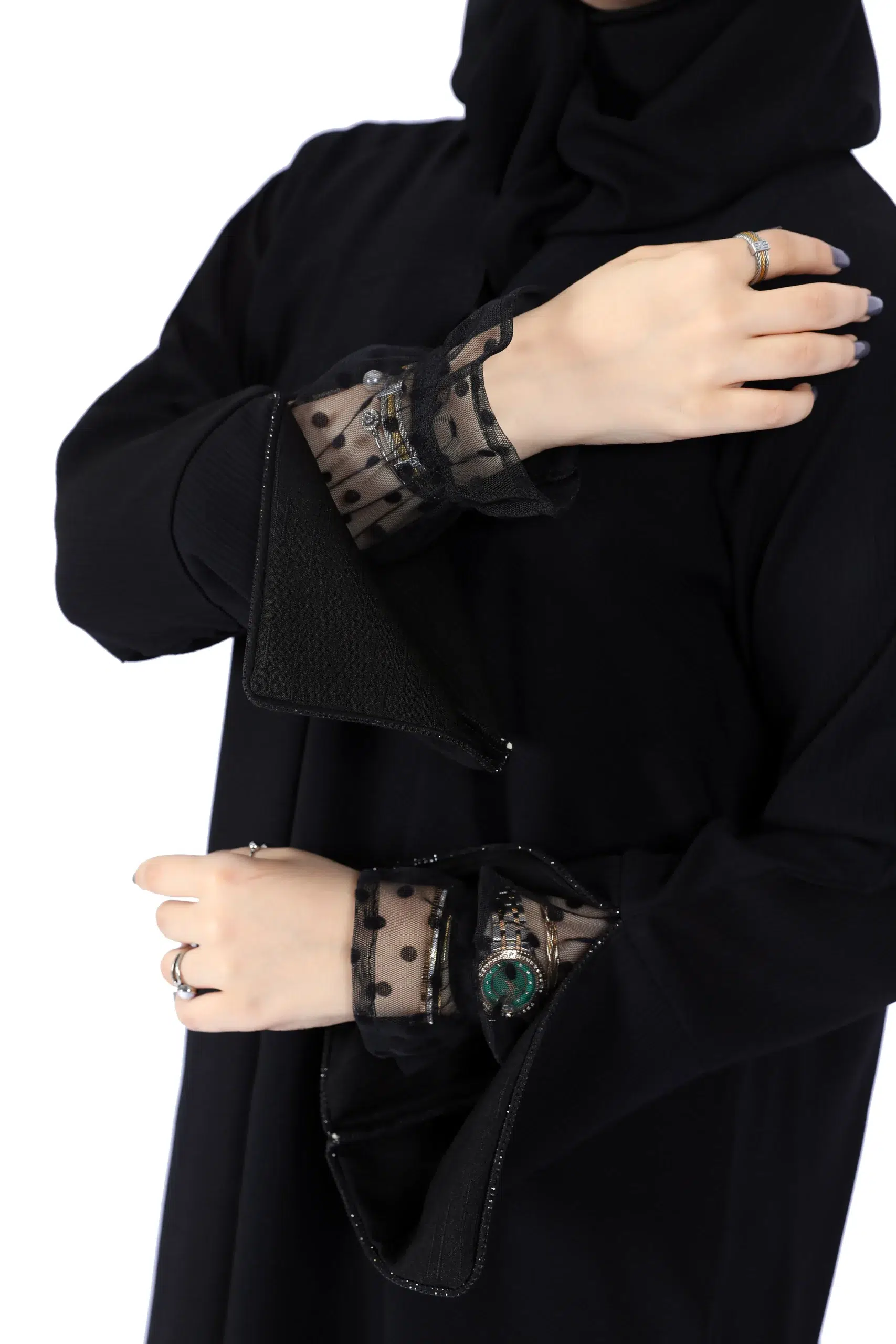 عبايه كتف مطرزه بخيوط اسود ناعم