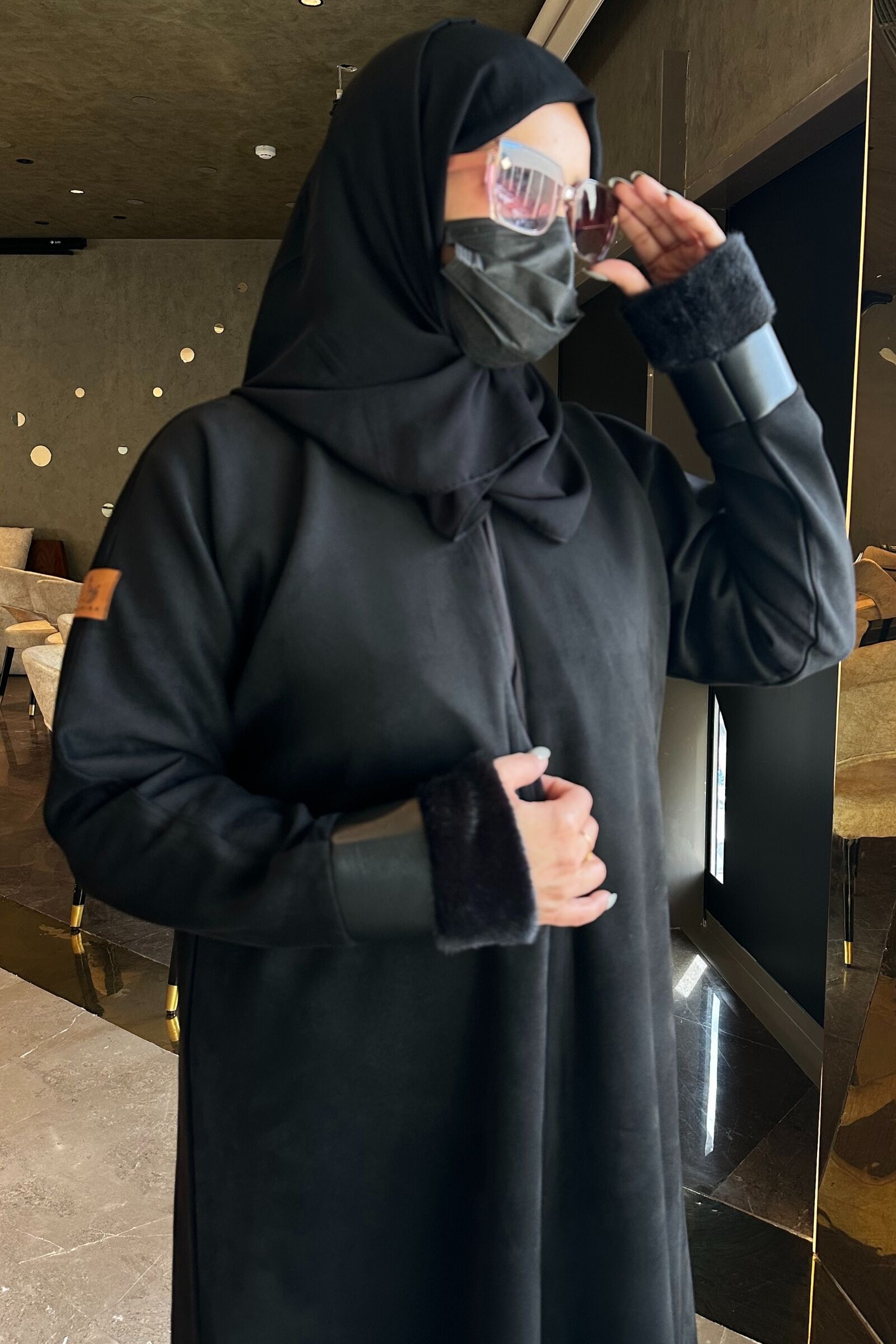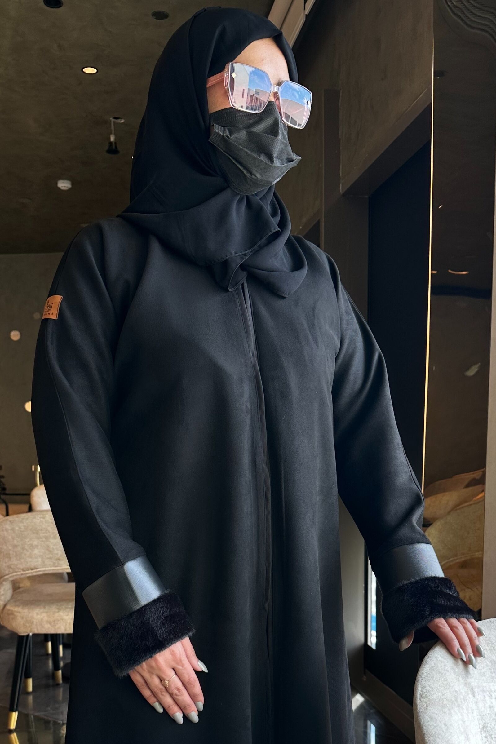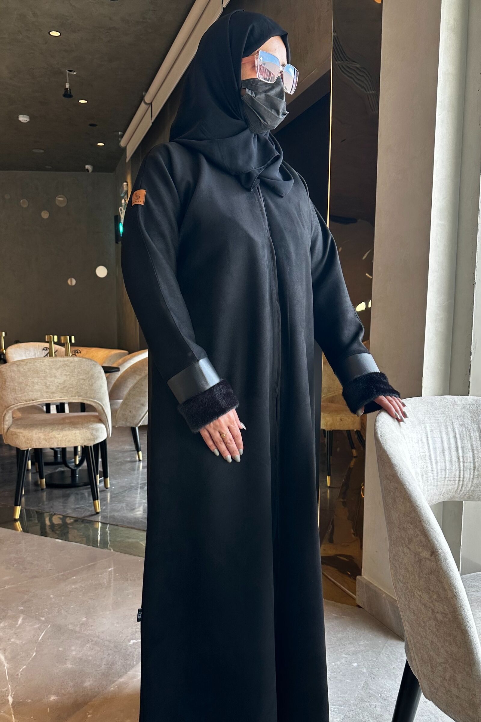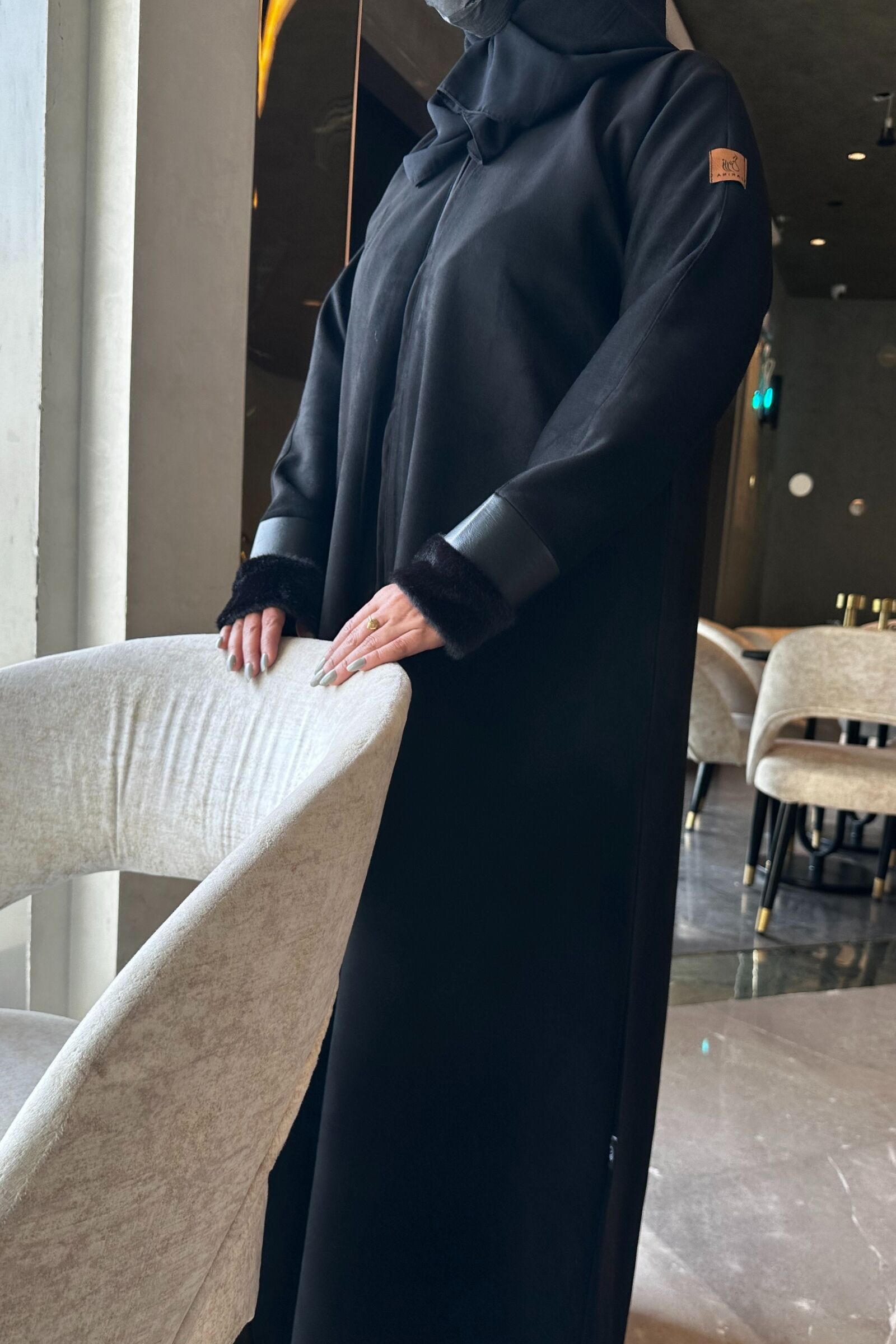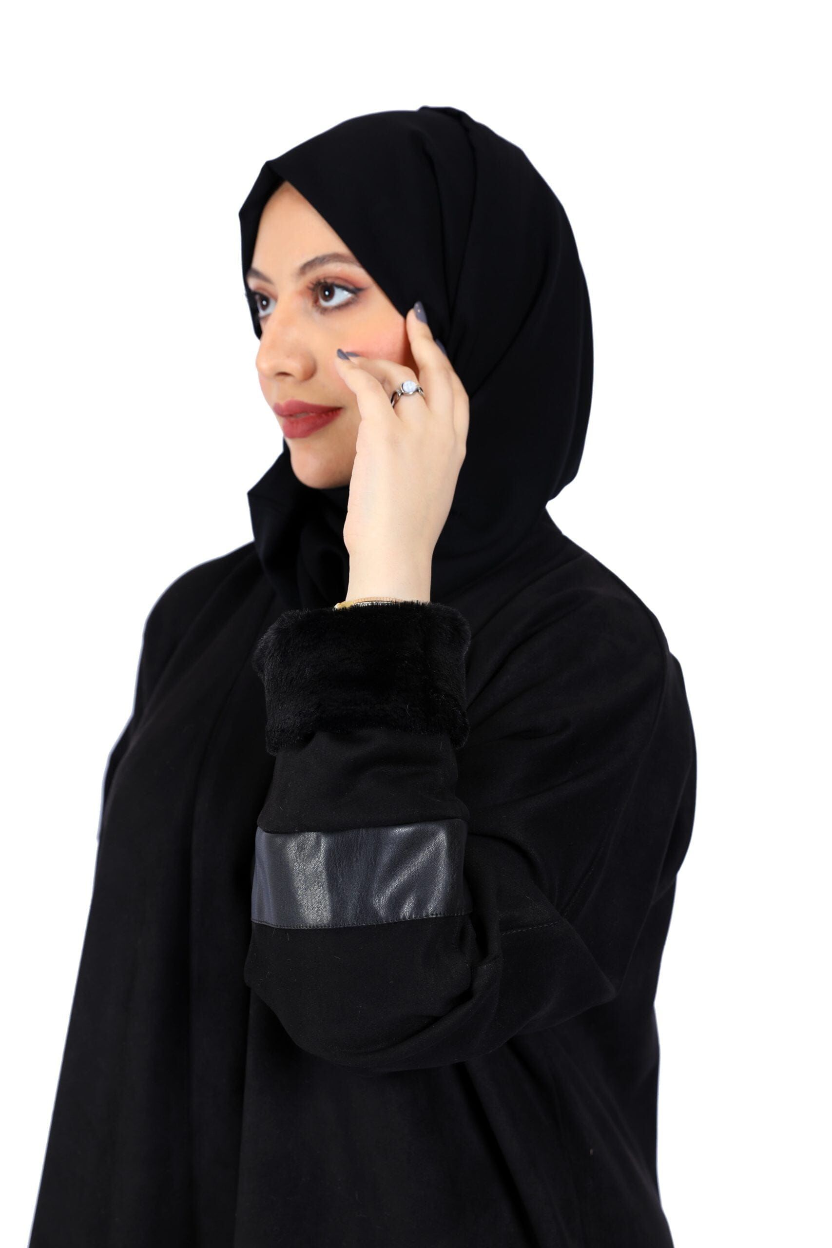 مواصفات عباية شتوي شامواه بأكمام جلد :