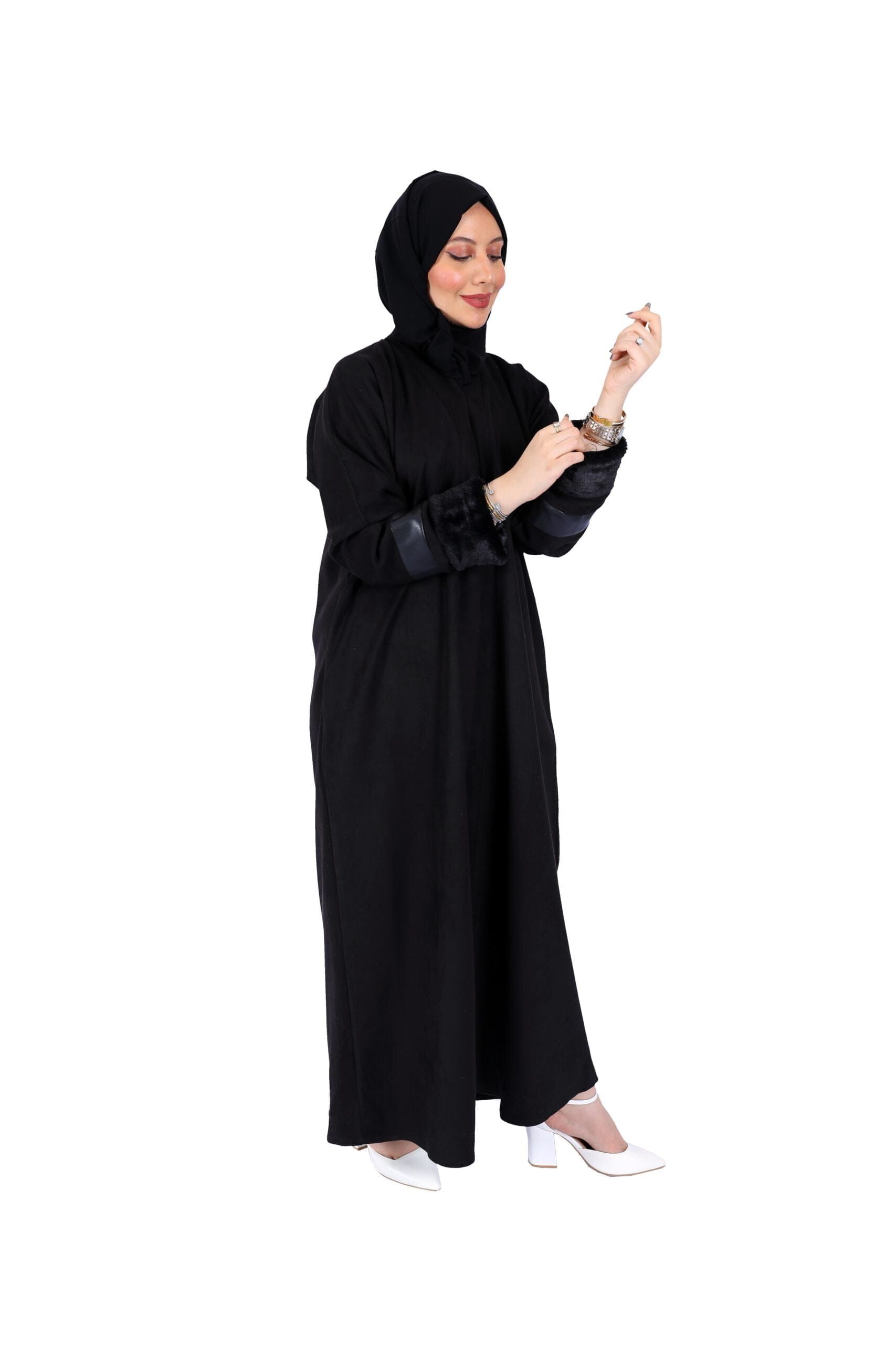 عباية شتوي شامواه بأكمام جلد