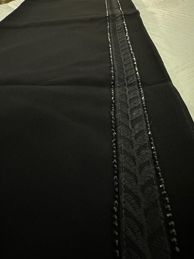- اللون : طرحه اسود فصوص طرفين مع شريط مميز