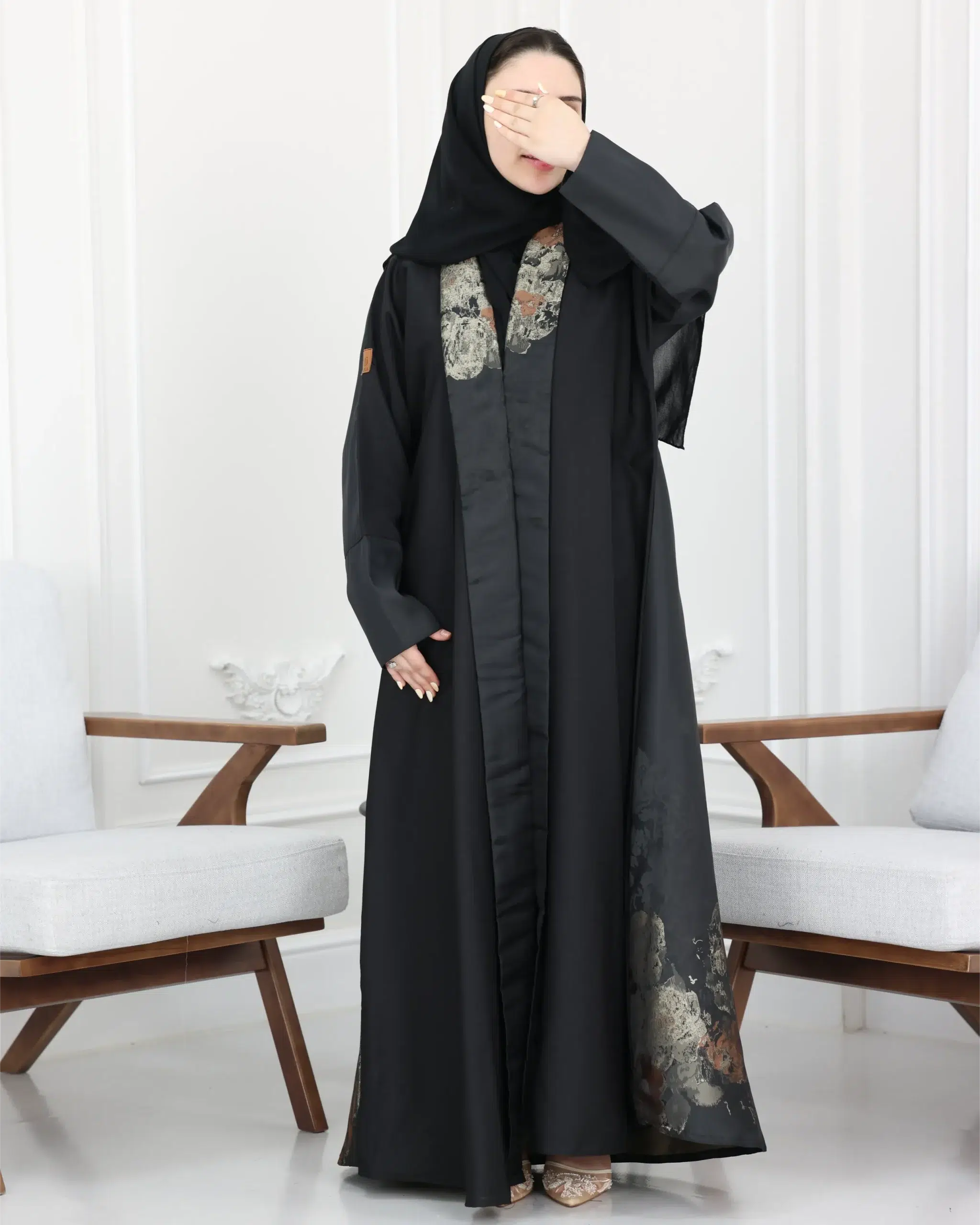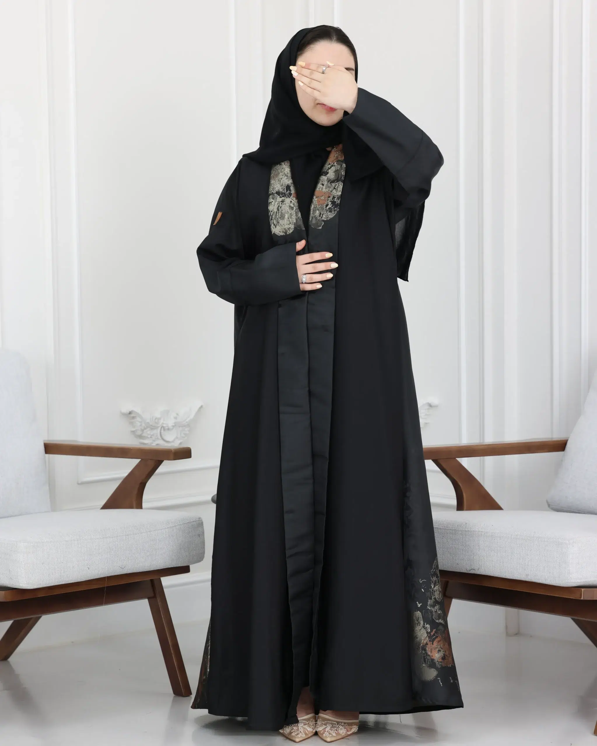 عباية ملكي مفتوحة بطبقة داخلية مع ربطة جانبية