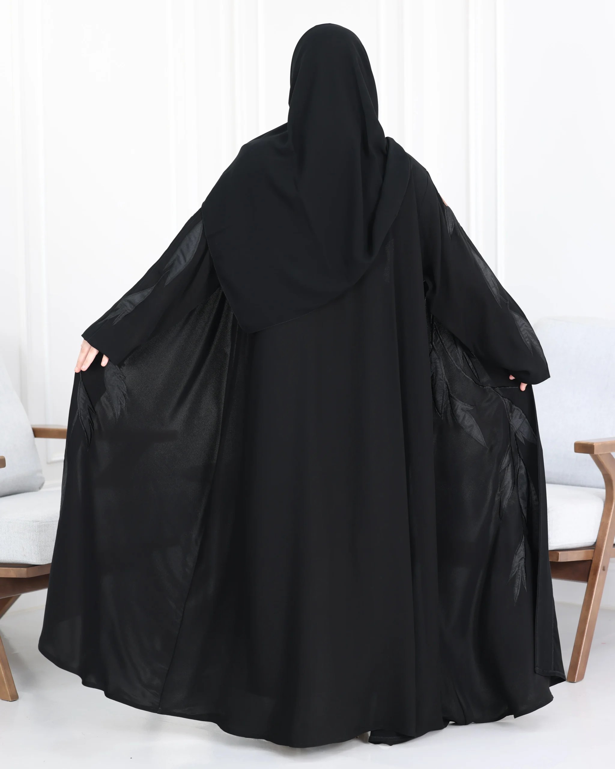 تألقي بإطلالة راقية وأنيقة مع عباية المميزة بتطريز اسود ناعم من امام. بلمسة من الأنوثة والجمال على التصميم العام للعباية. يوفر القماش المستخدم في هذه العباية الراحة والنعومة للمرتدية، مما يجعلها خيارًا مثاليًا لارتدائها في المناسبات الخاصة والاجتماعية وعمليه .