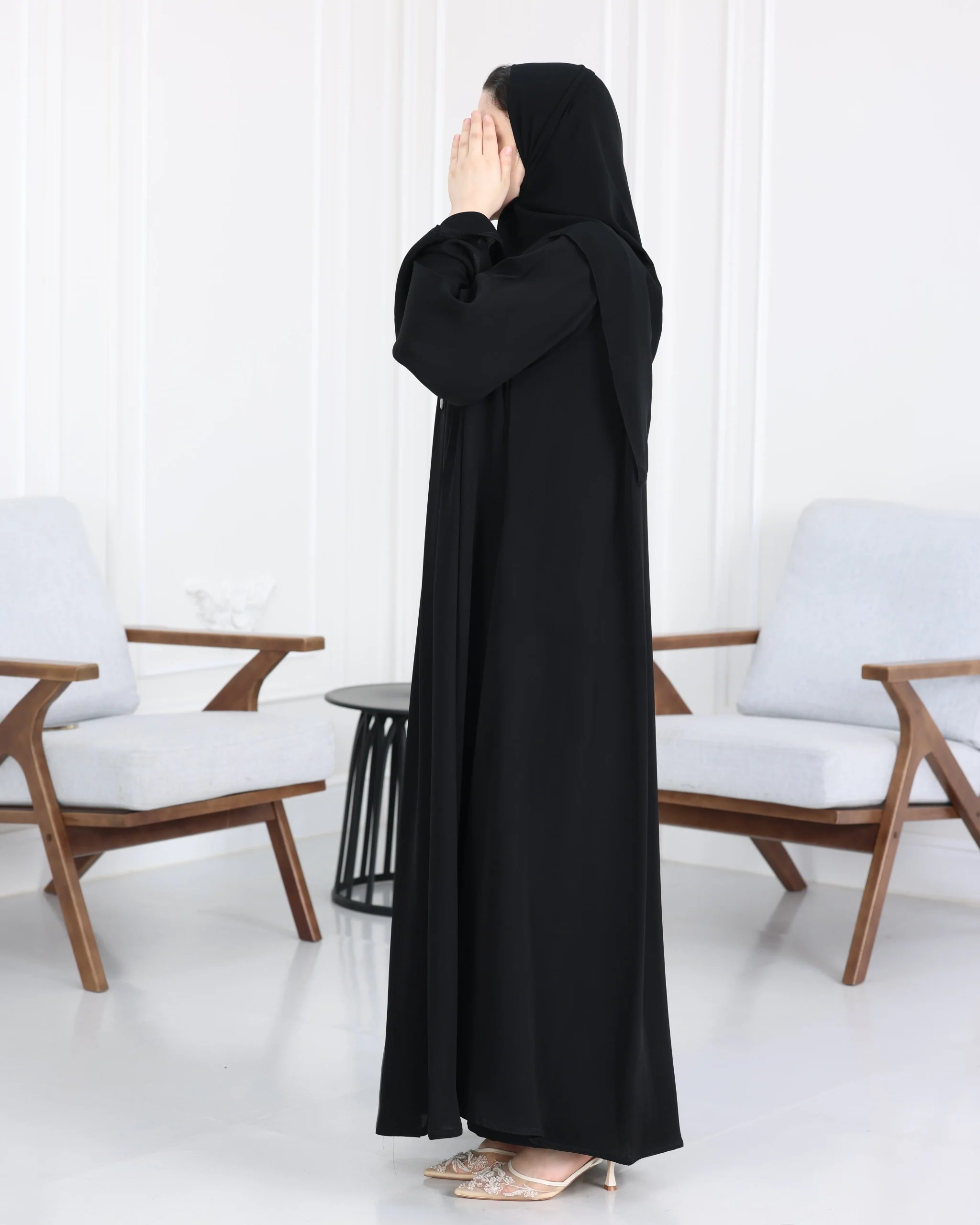 مميزات عباية ساده مغلقه بزراير مزينه نص كلوش محدد من الأكمام واجناب