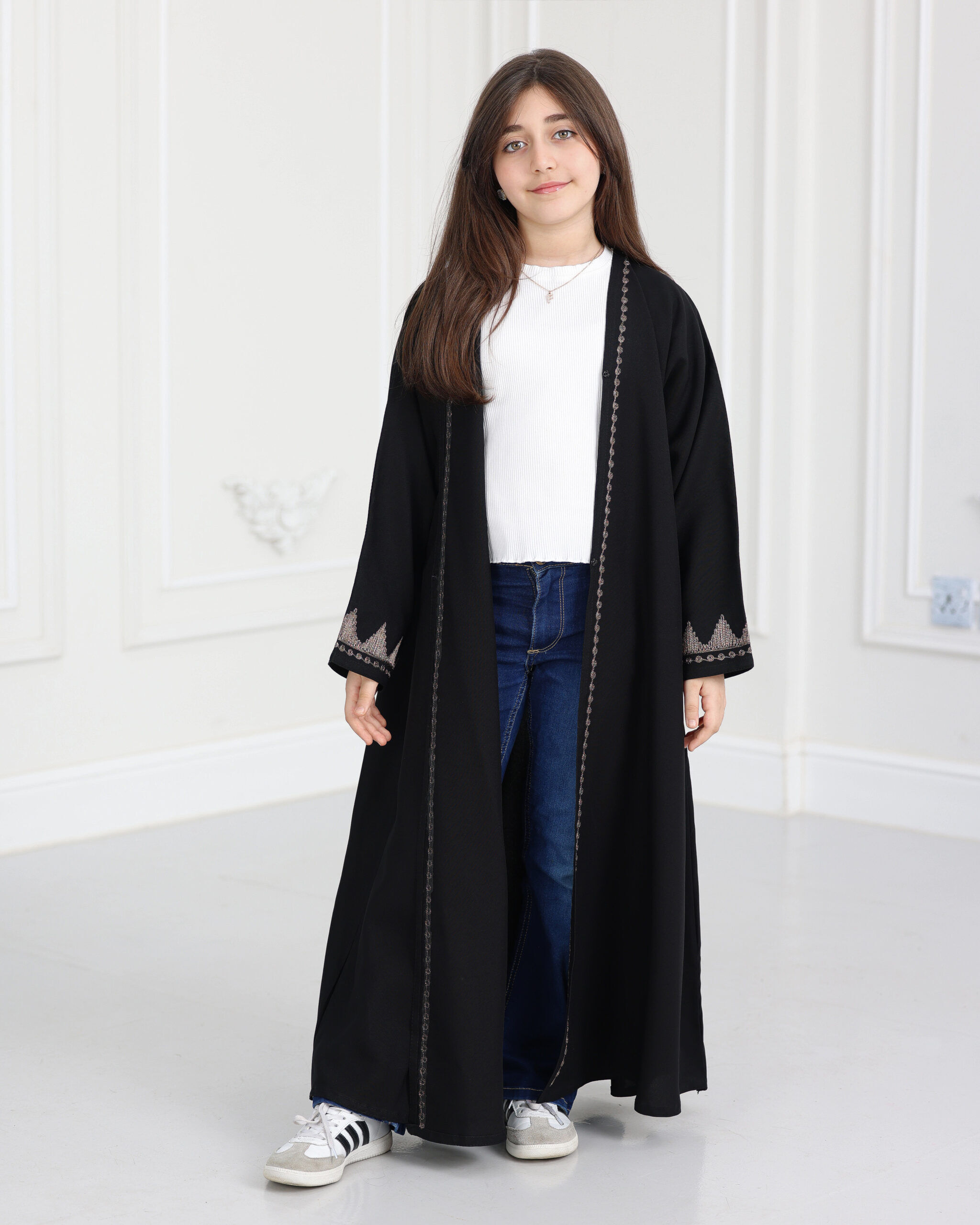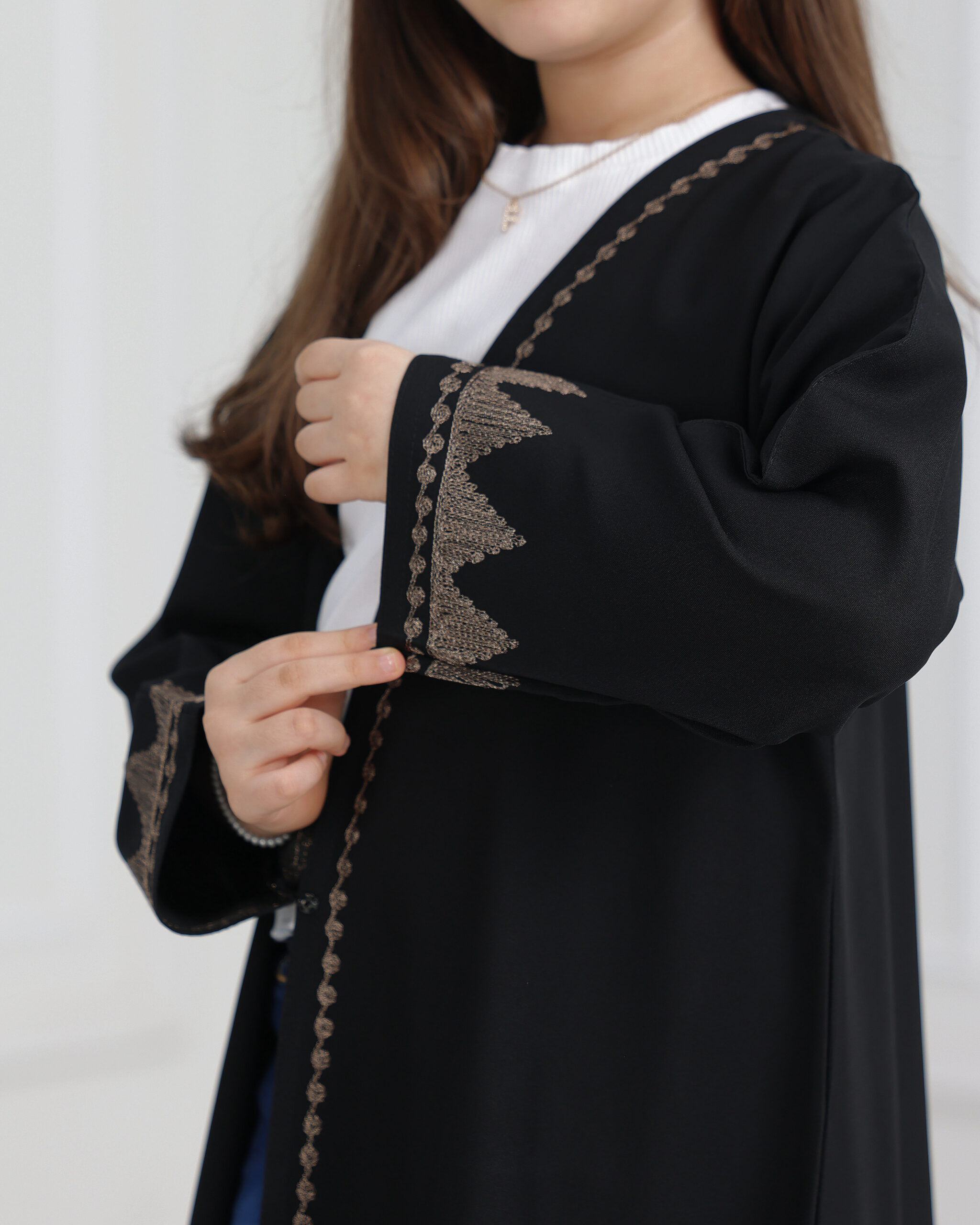 عباية بناتي بتطريز اري بلون نحاسي