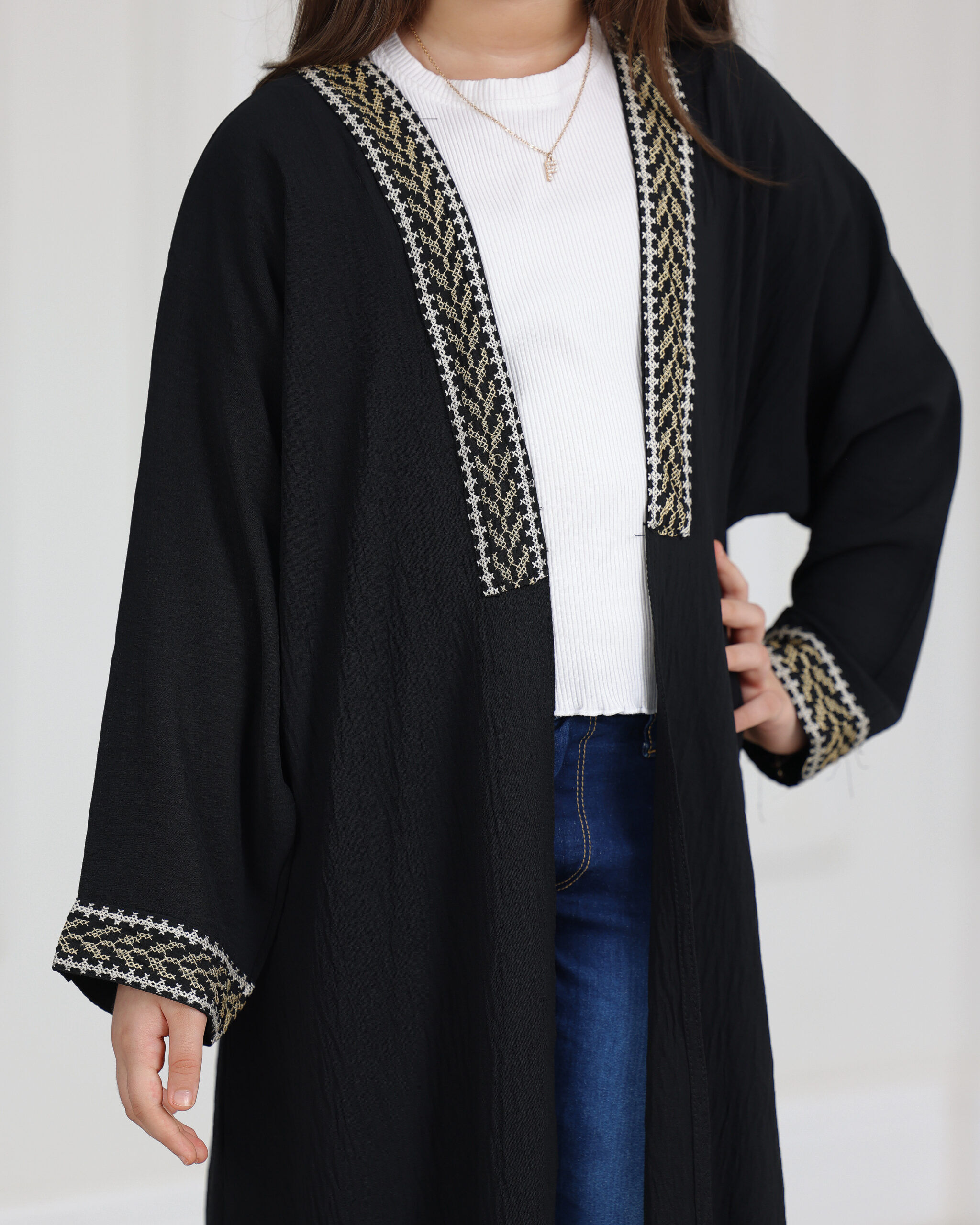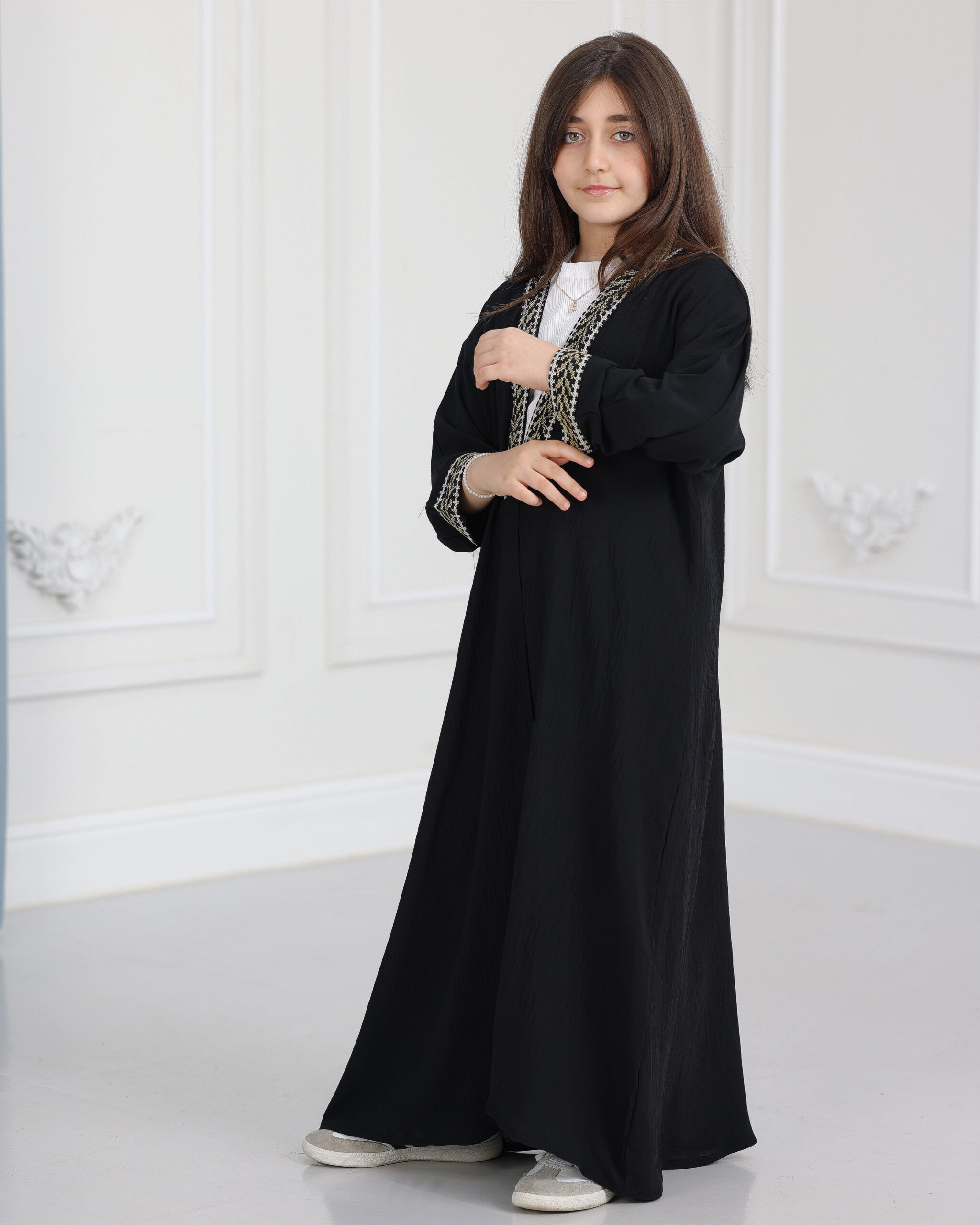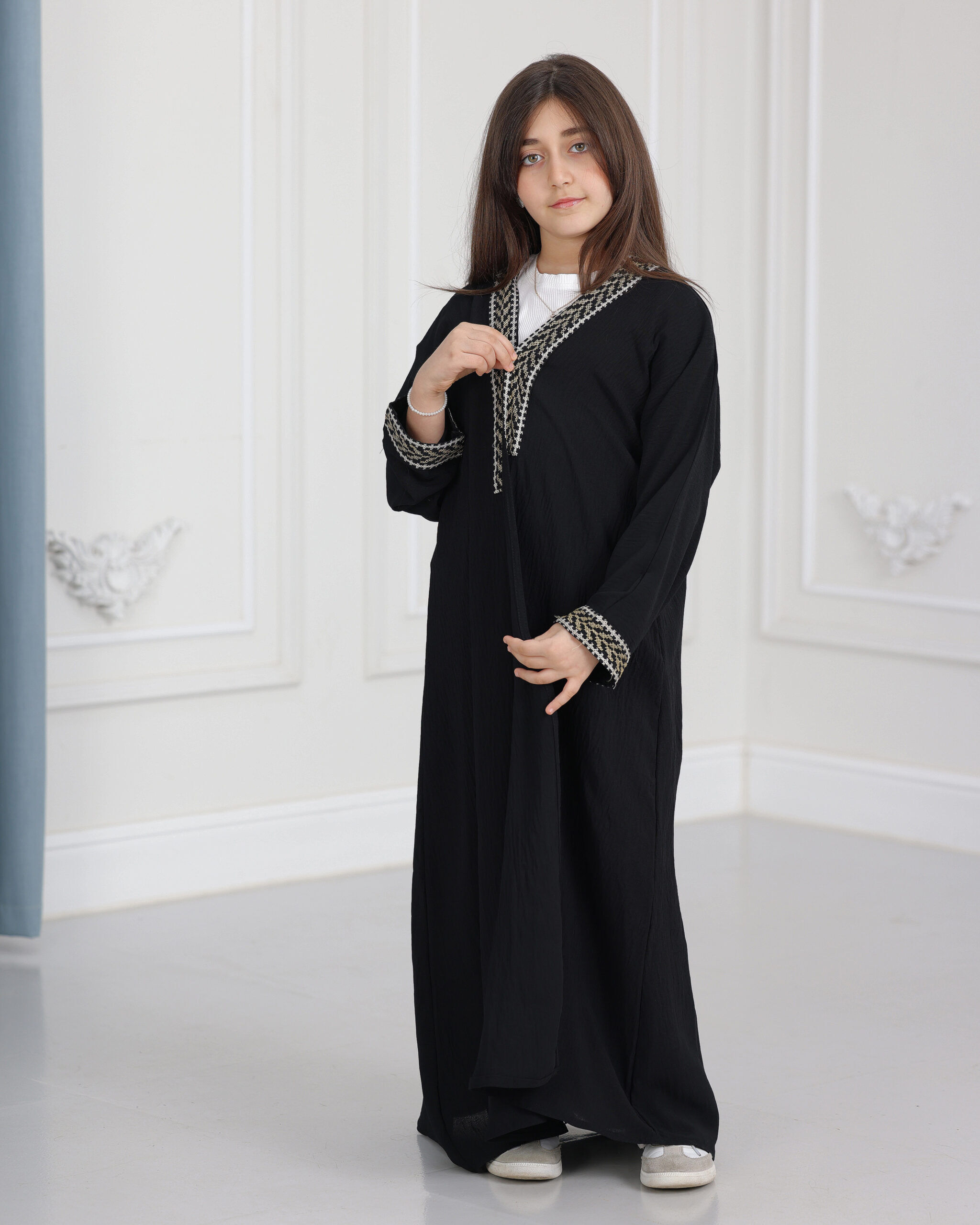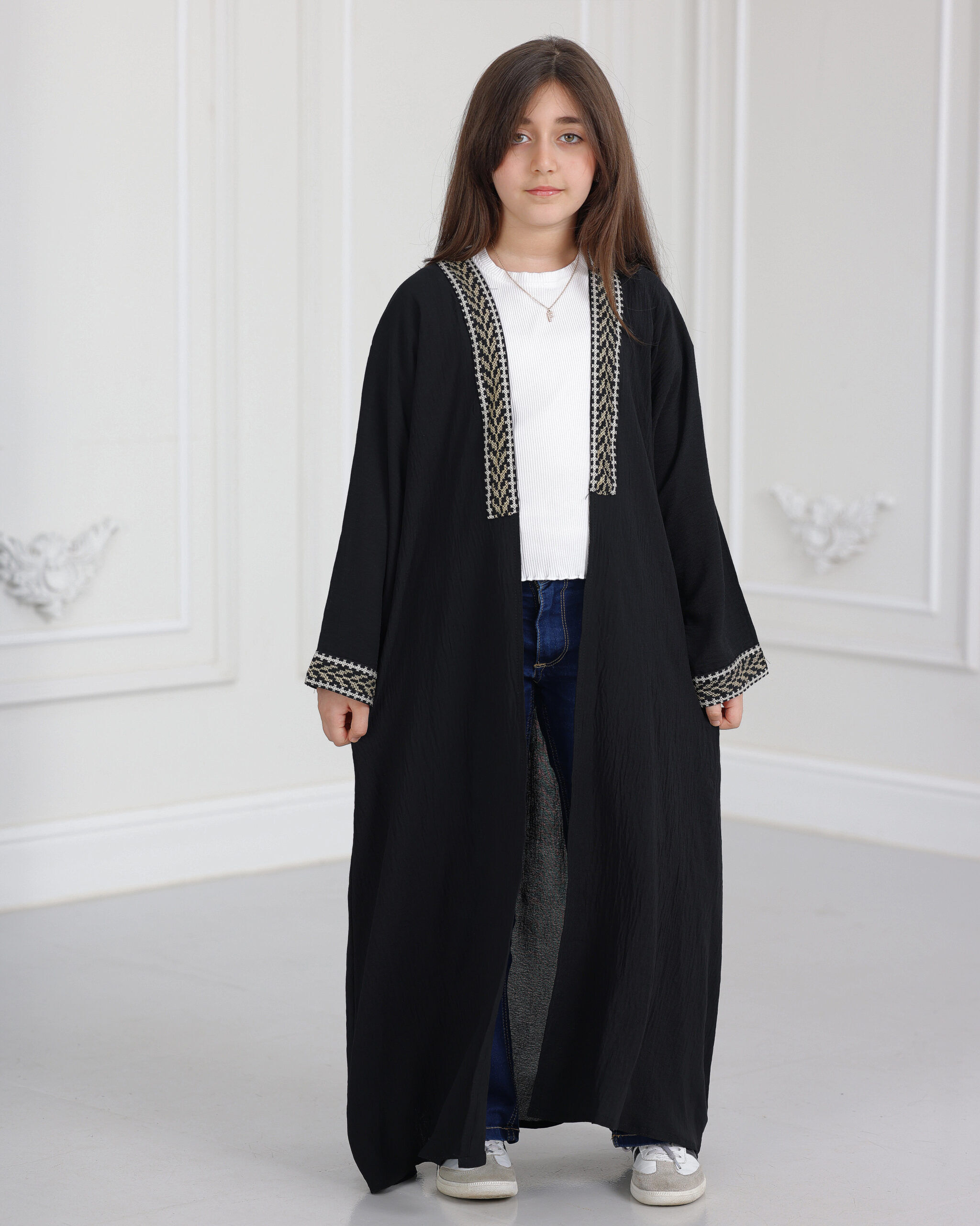 عباية بناتي سي واي مطرزة ببيج :