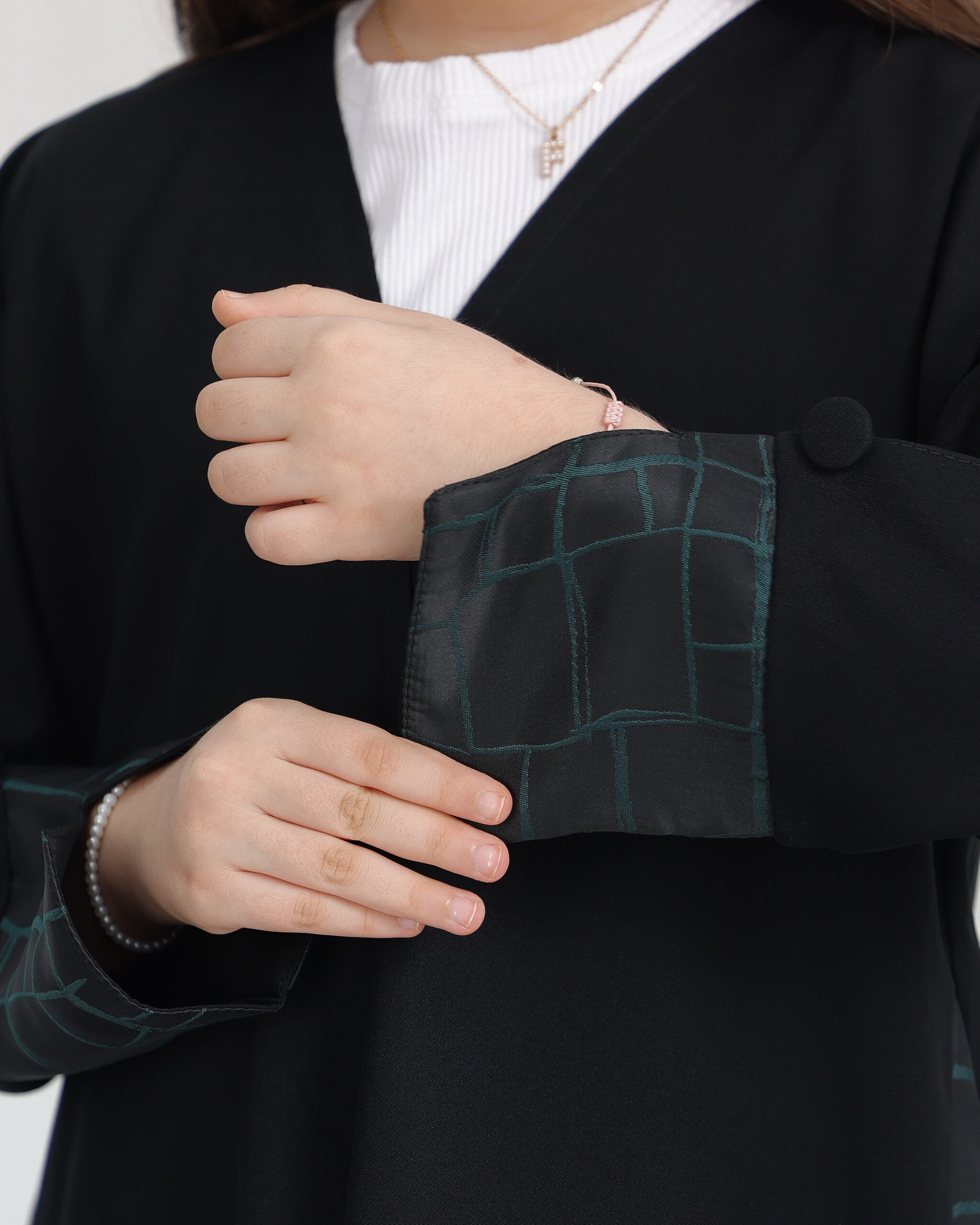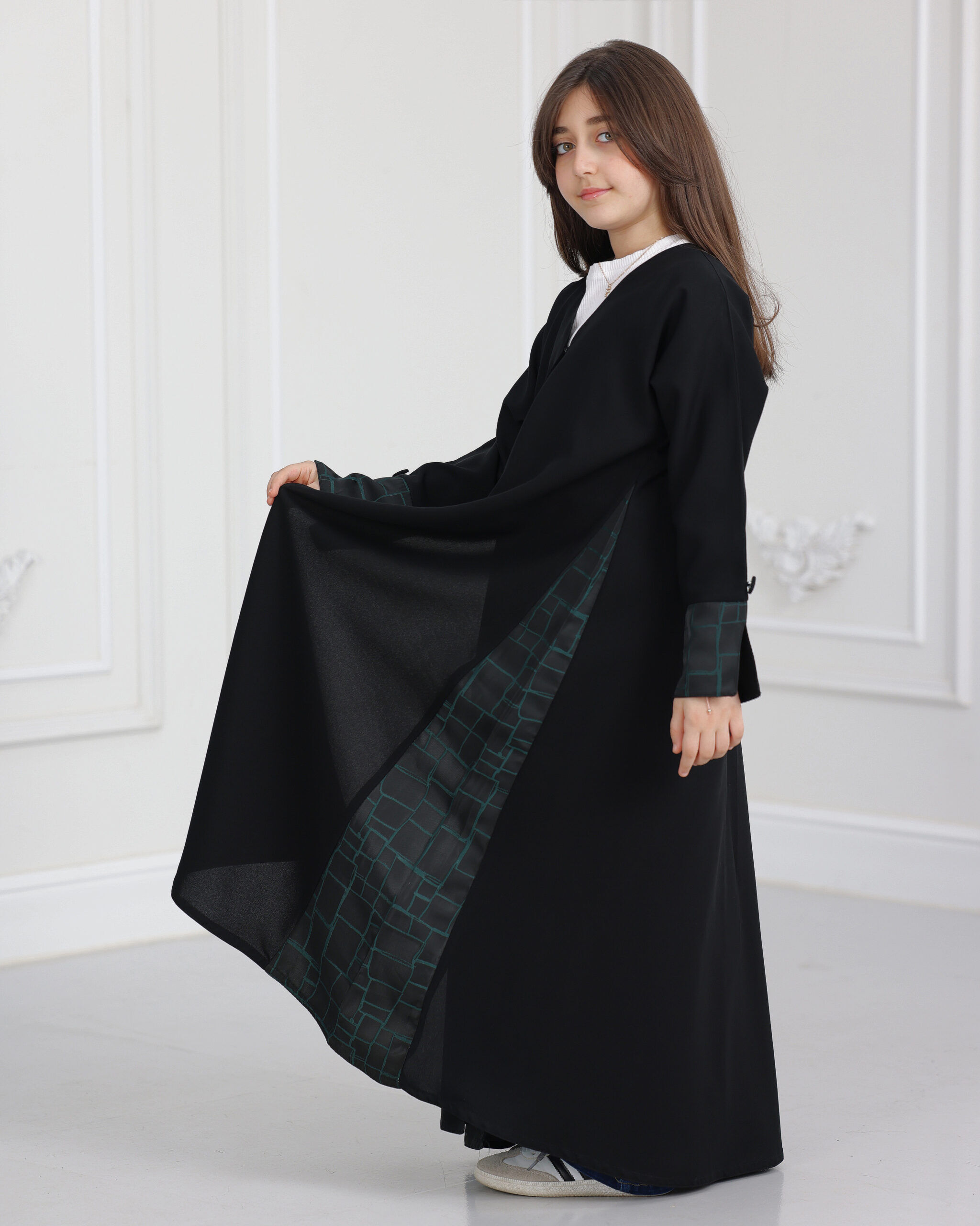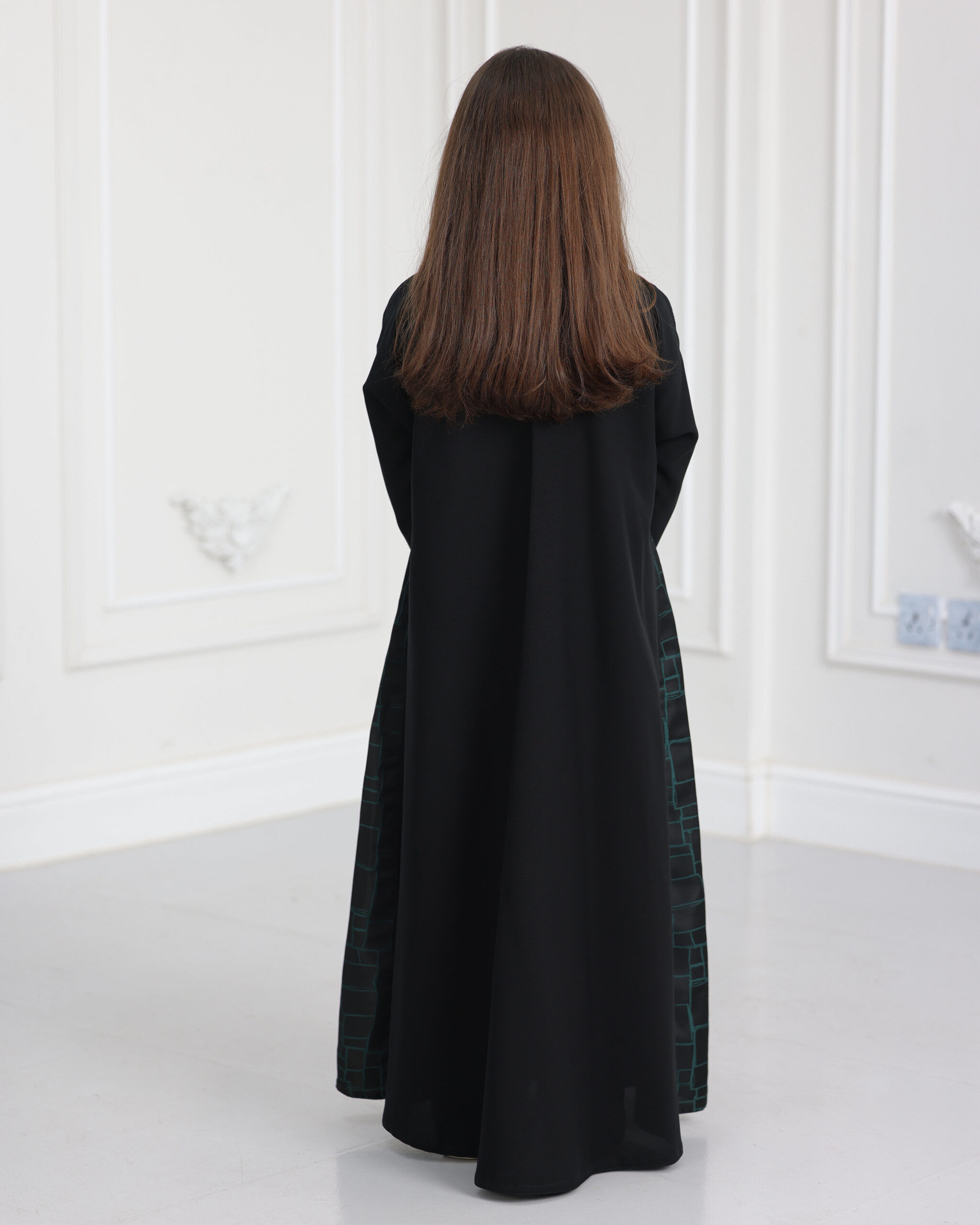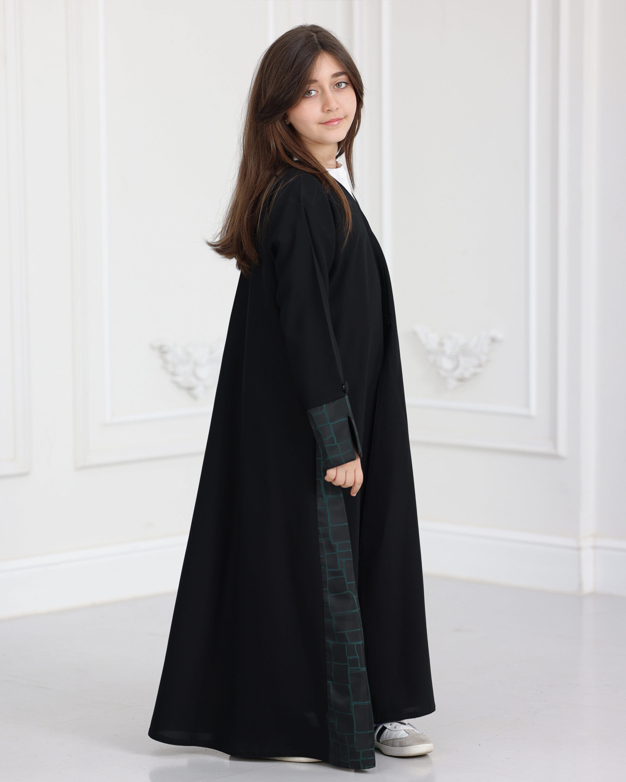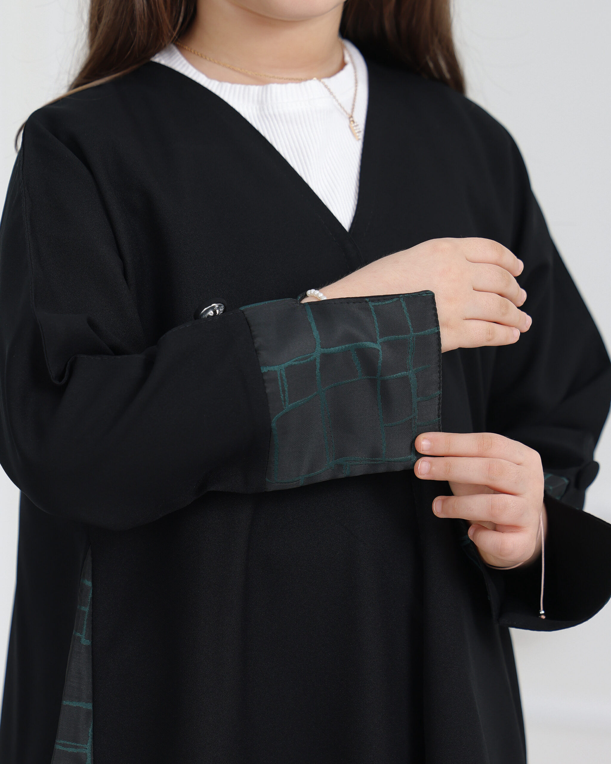 عباية بناتي مندمجة بجاكار خطوط اخضر