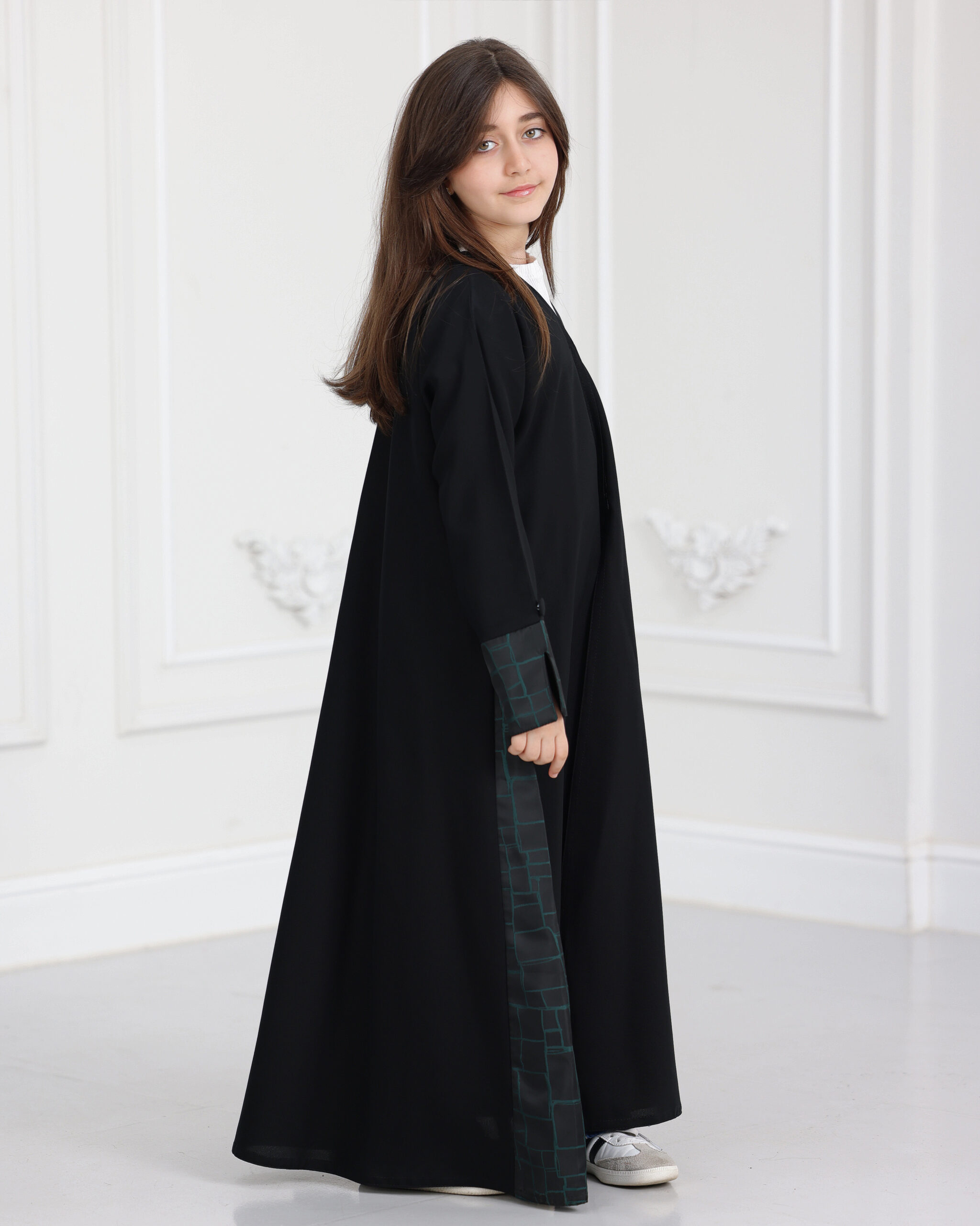 عباية بناتي بتطريز أسود على الأكمام كامل