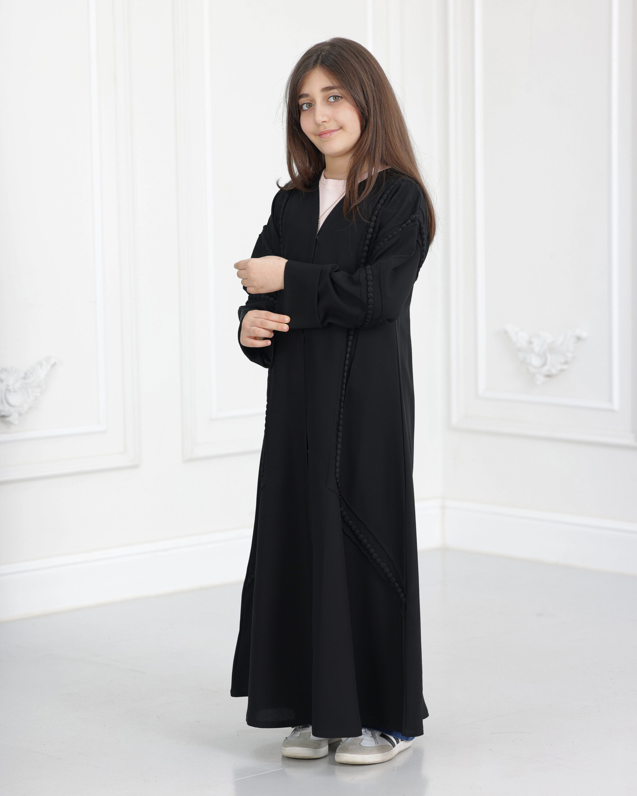 عباية بناتية بشك ملون على الأكمام بشكل و زهور ملونة
