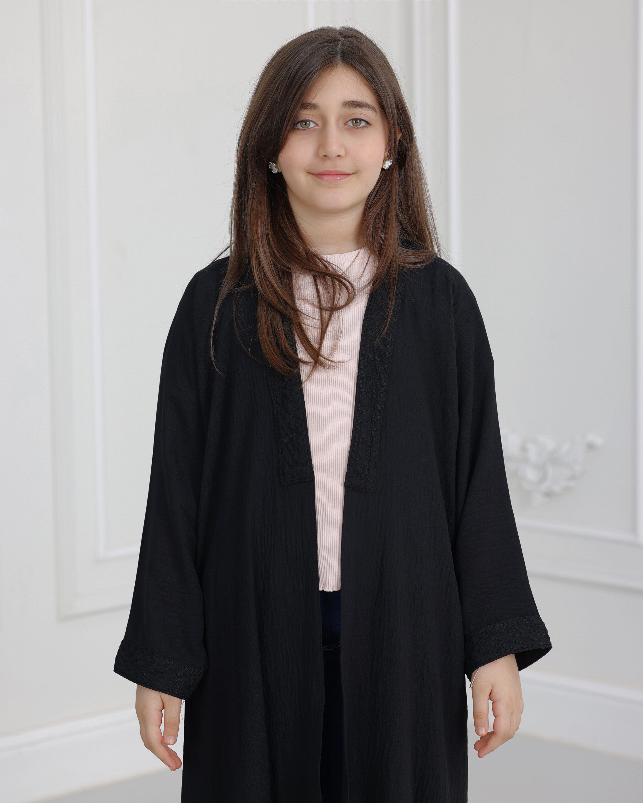 | الإضافات المميزة: | مطرزة بشريط بلون الاسود |